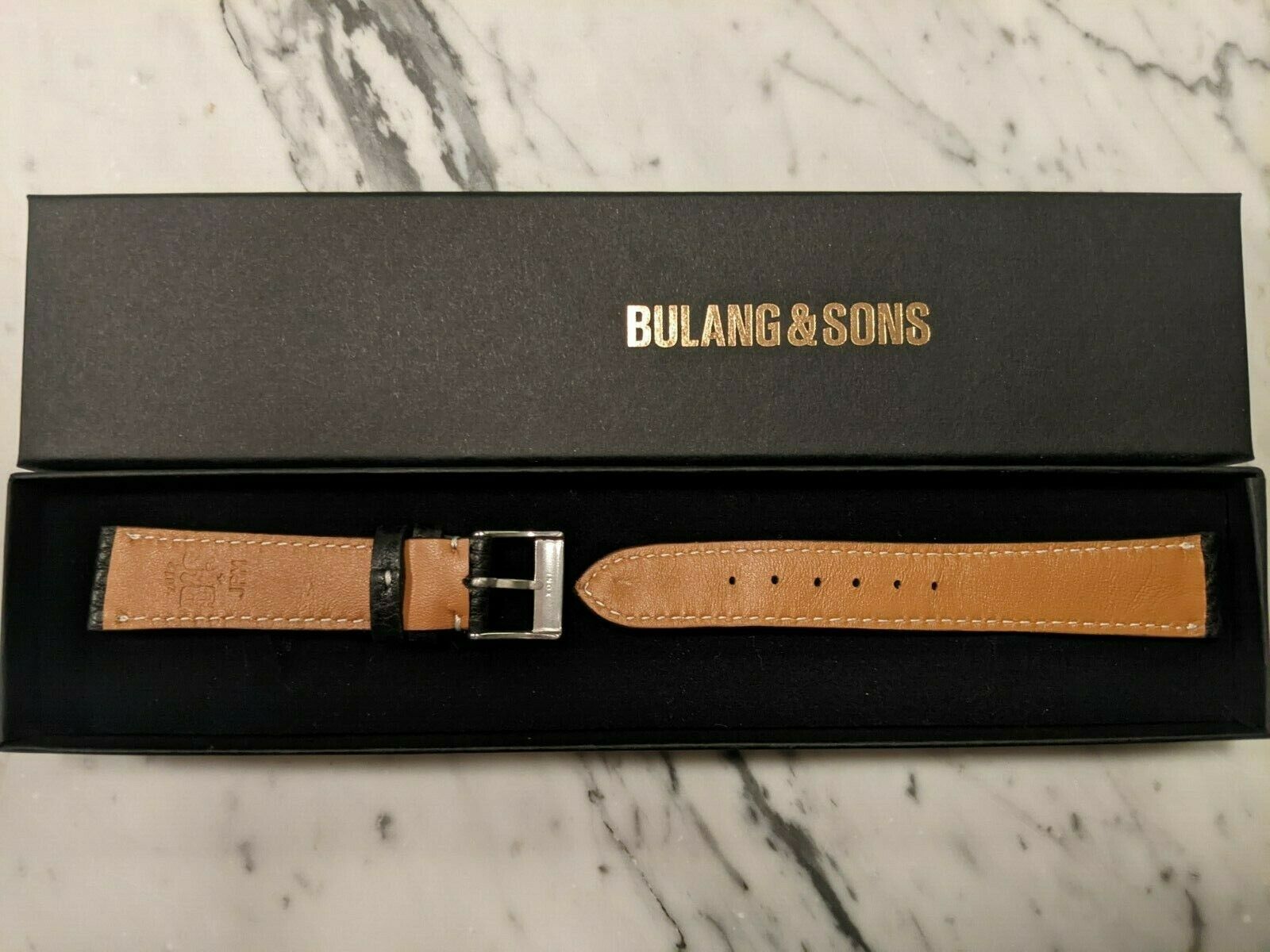 ·Up for sale is a new Bulang & Sons + JPM 18mm Rich Black Creme Stitch Leather Watch Strap. Strap comes in original box. I did fit the strap to a watch to try on, but decided on another strap style so this one is for sale.