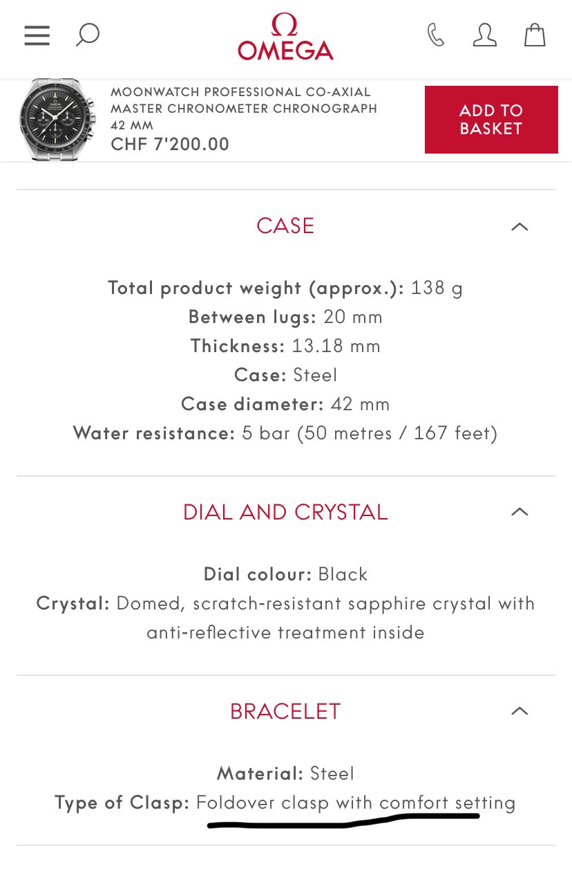 taking a look at the Omega website, I have noticed a small change, and that is that they are more precise in the characteristics of the watches, specifying the thickness, weight and even the type of closure, which they did not do before and they were more concise in terms of specifying.