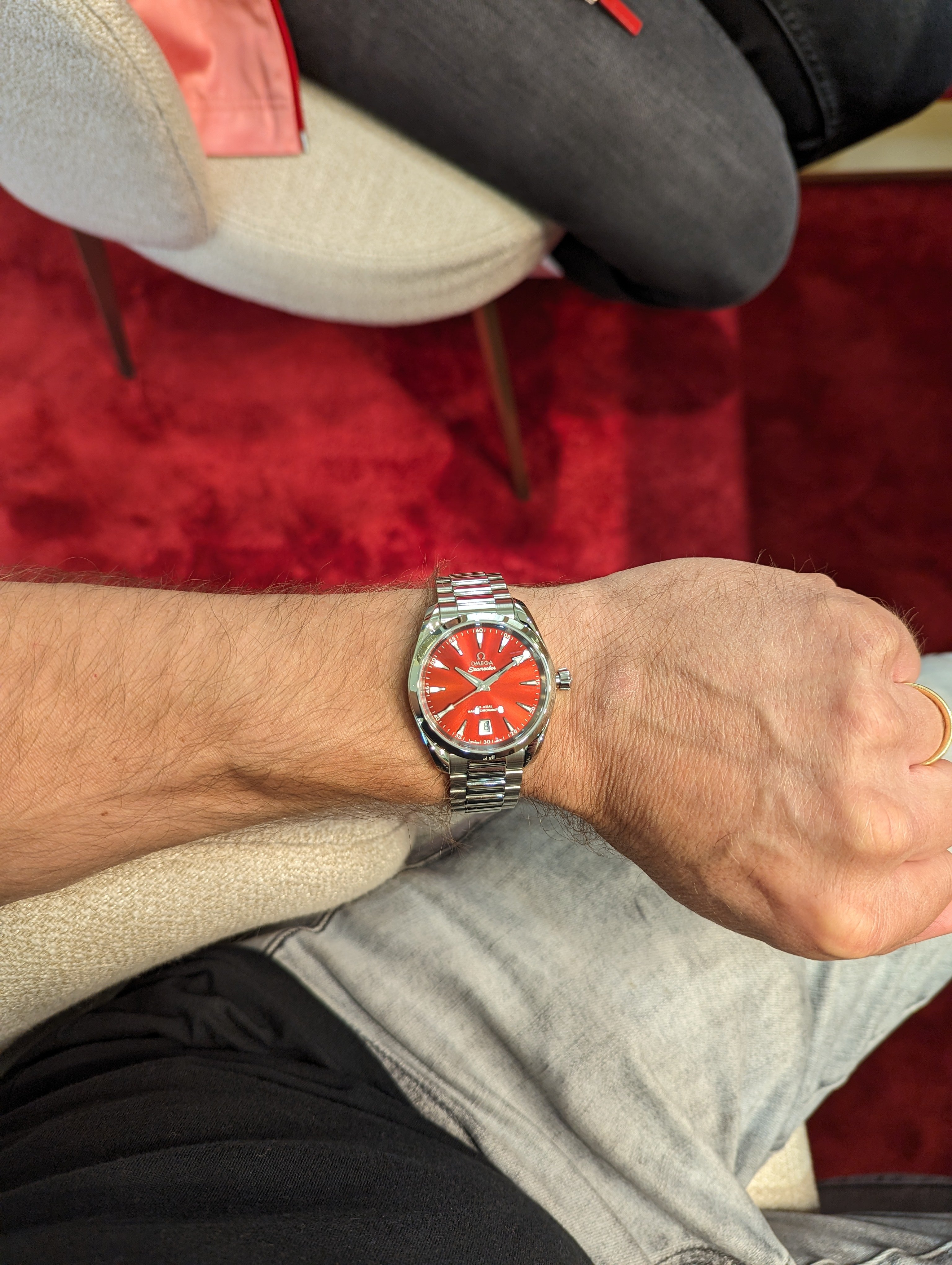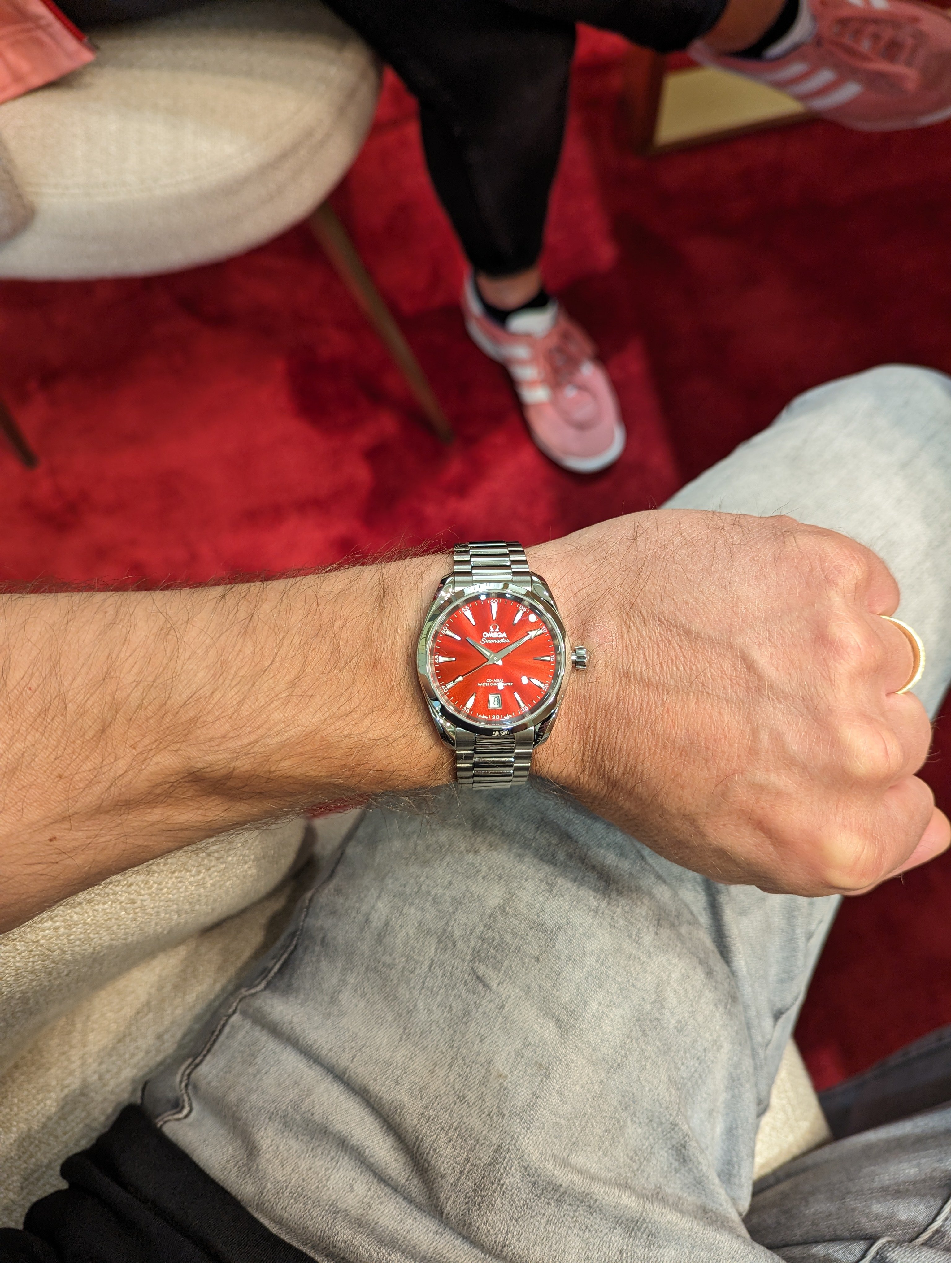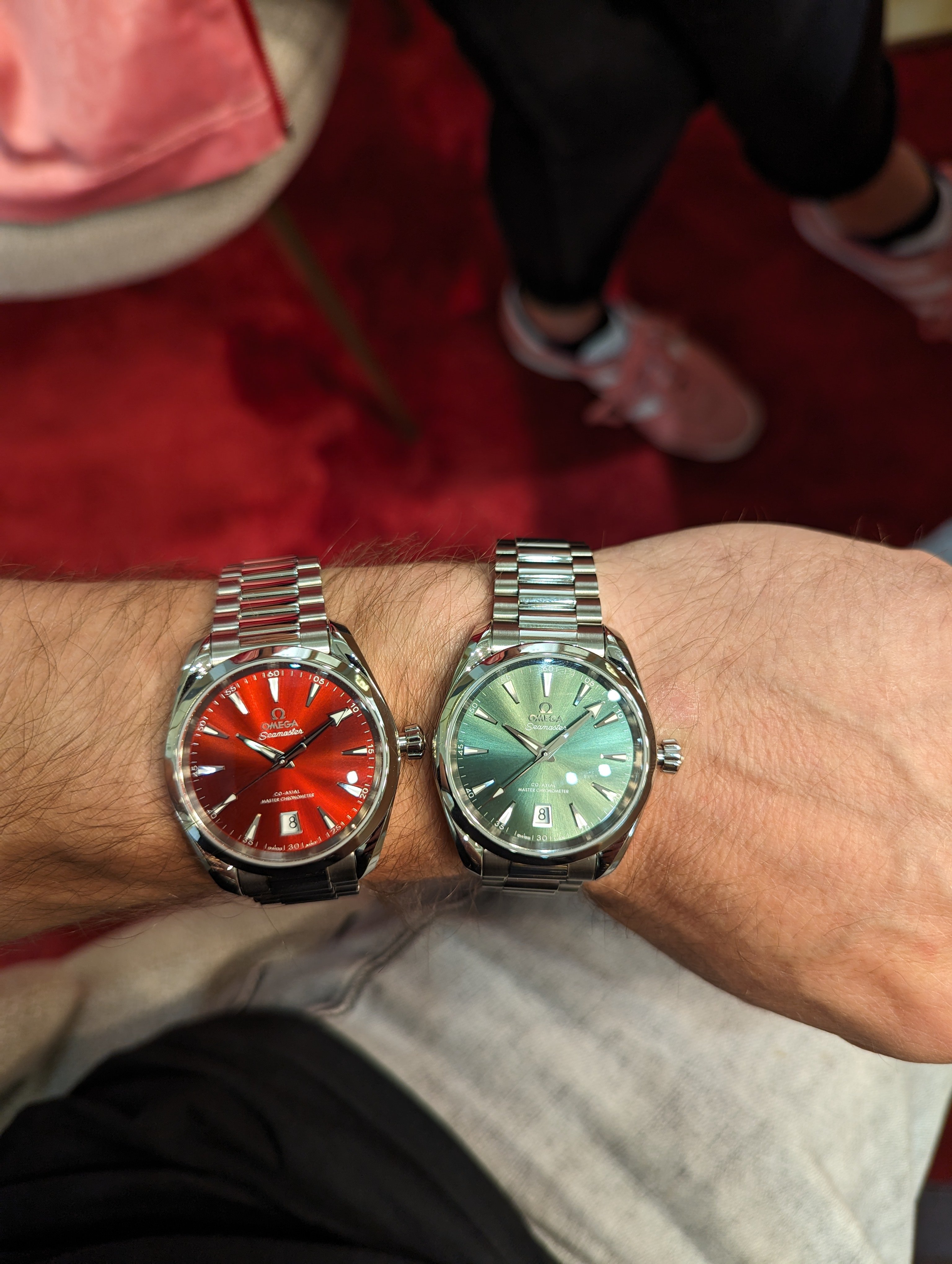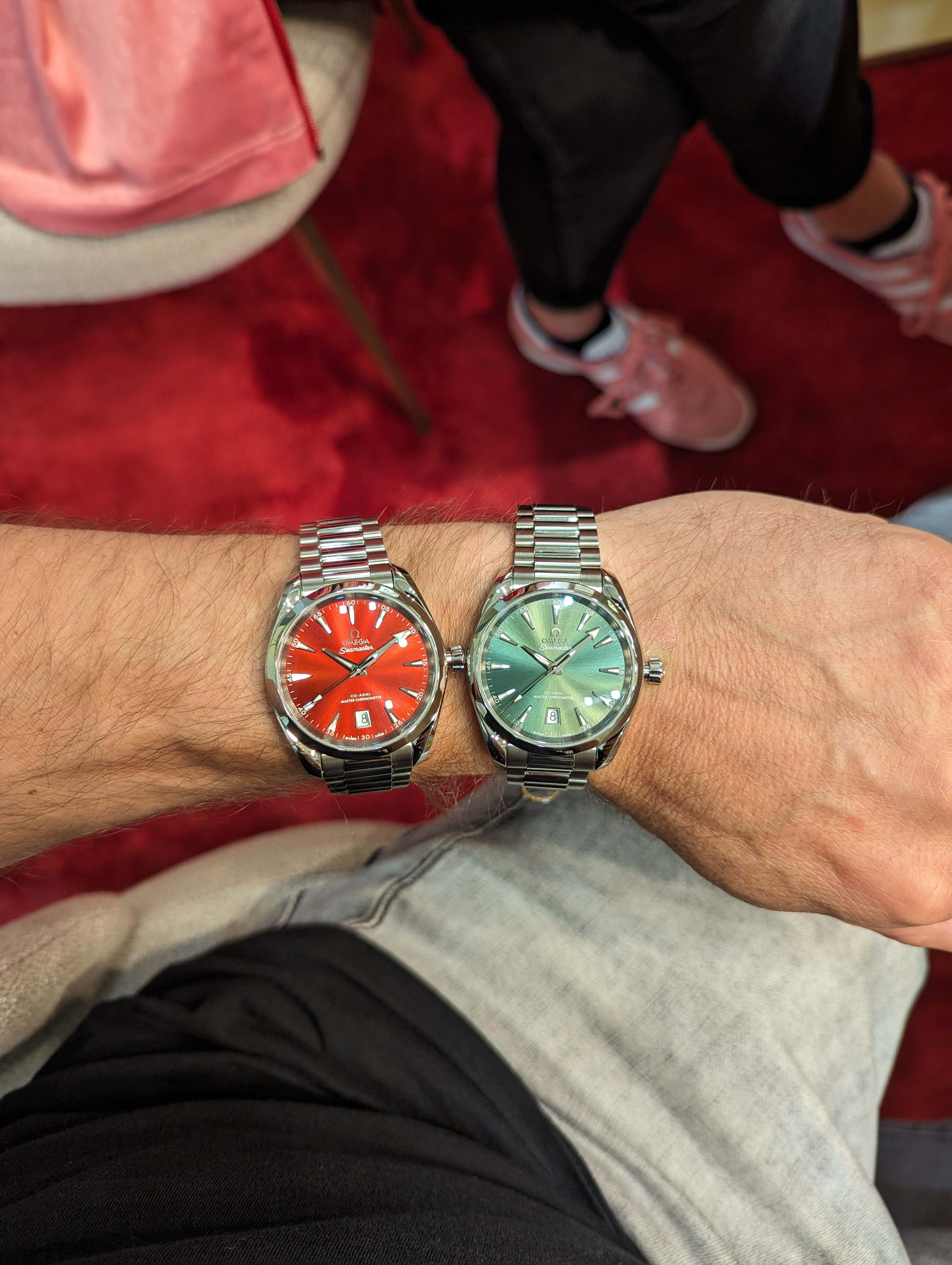 I just picked up the one with the Coral dial. Don't have a clue what Omega calls it as the Website only describes all five 38 mm as 'shades.' But I like it. I have long ago gone off Rolex. Too damned common and I am not a huge tool watch fan. The bracelet has the Presidential feel and yes I have offed my YG DD w the black dial w baguettes. Just was shouting too loud when I was out and about. I am so glad there are different mfgs making different models. What a boring World it would be if we all wore ND Subs.