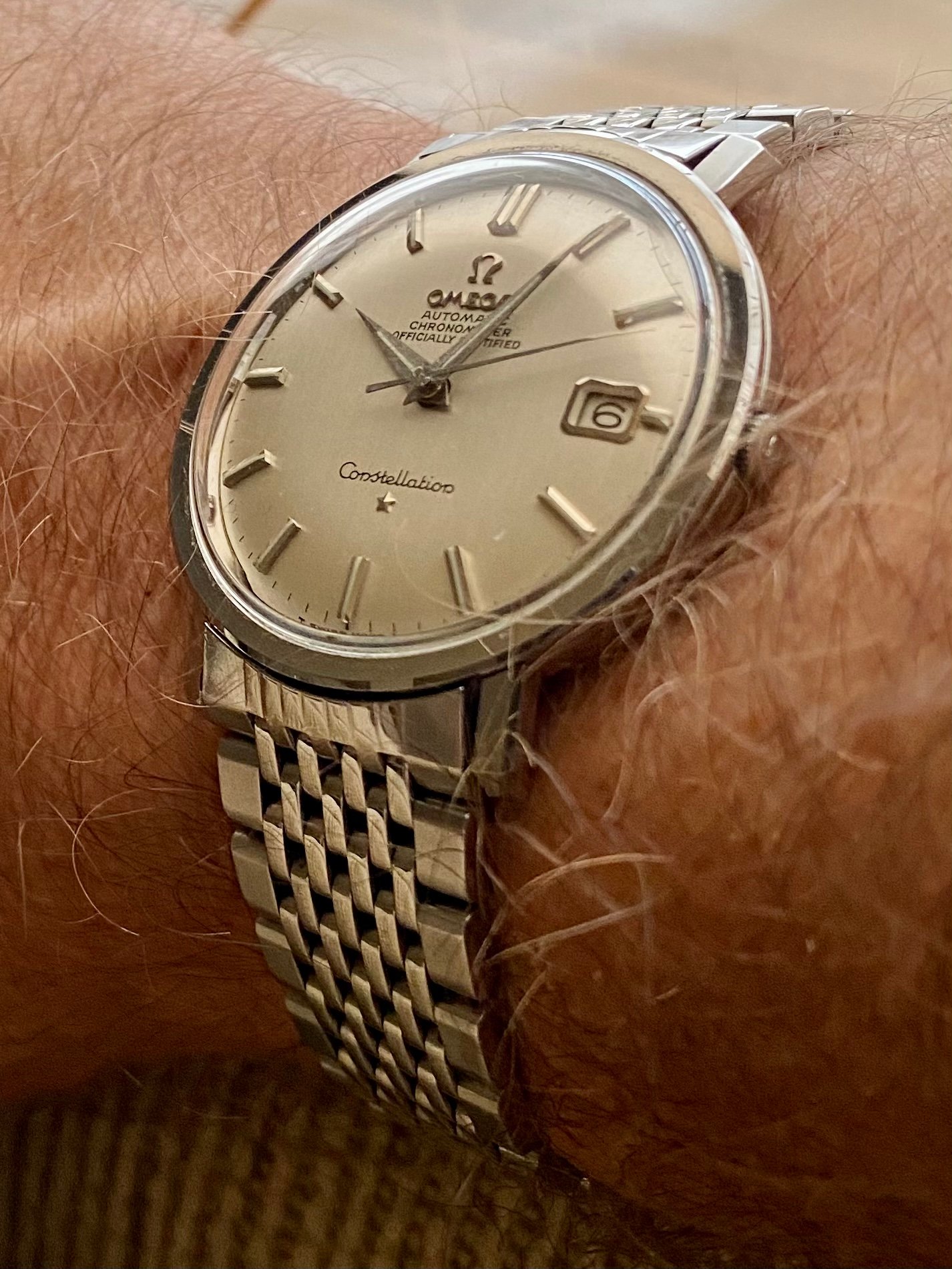 The watch came on a less than attractive steel and gold bracelet which will be replaced with some nice leather when it returns from service.