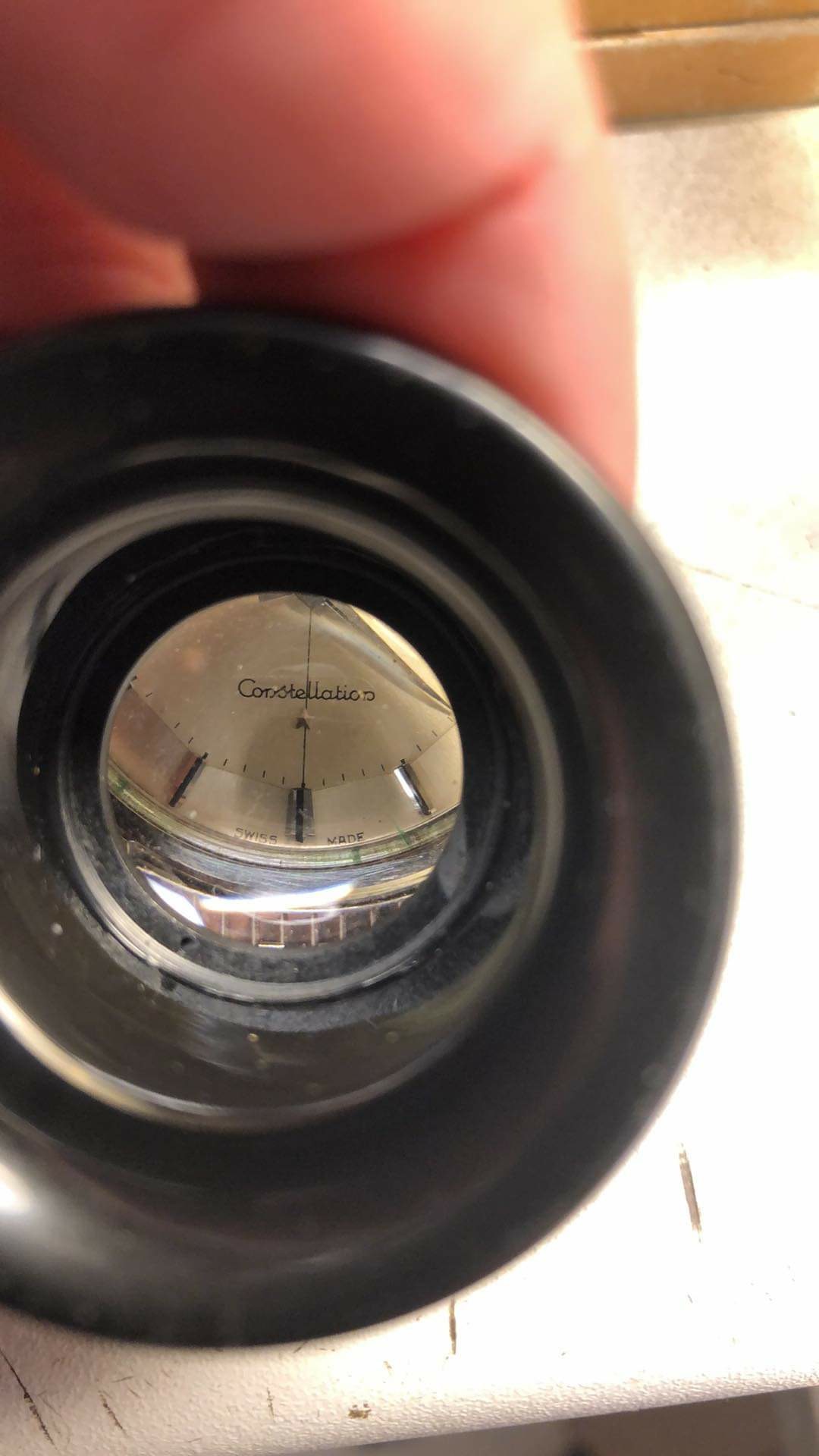 But the vertical cross hair meet the minute marker where it should, and the omega logo in the center.