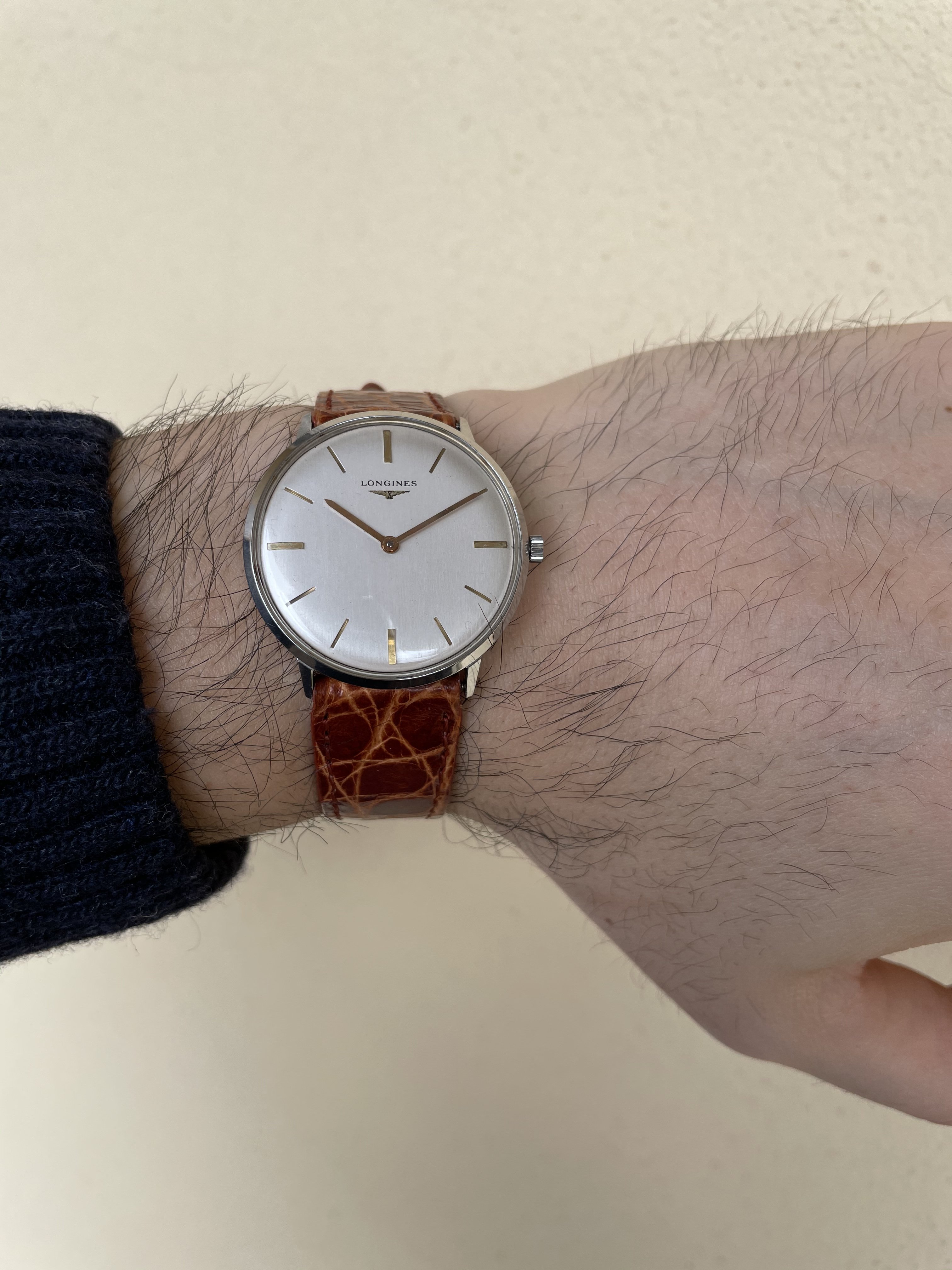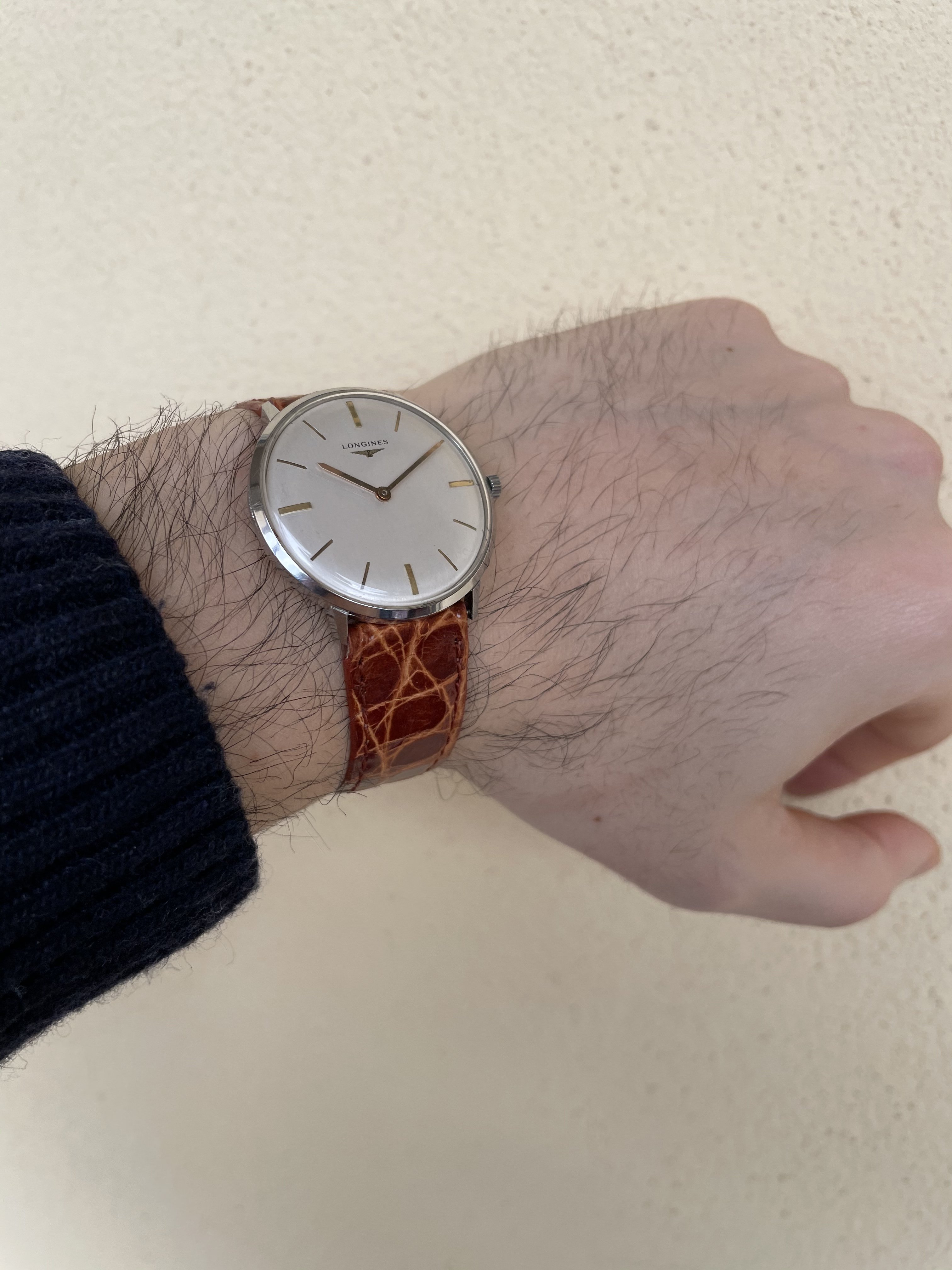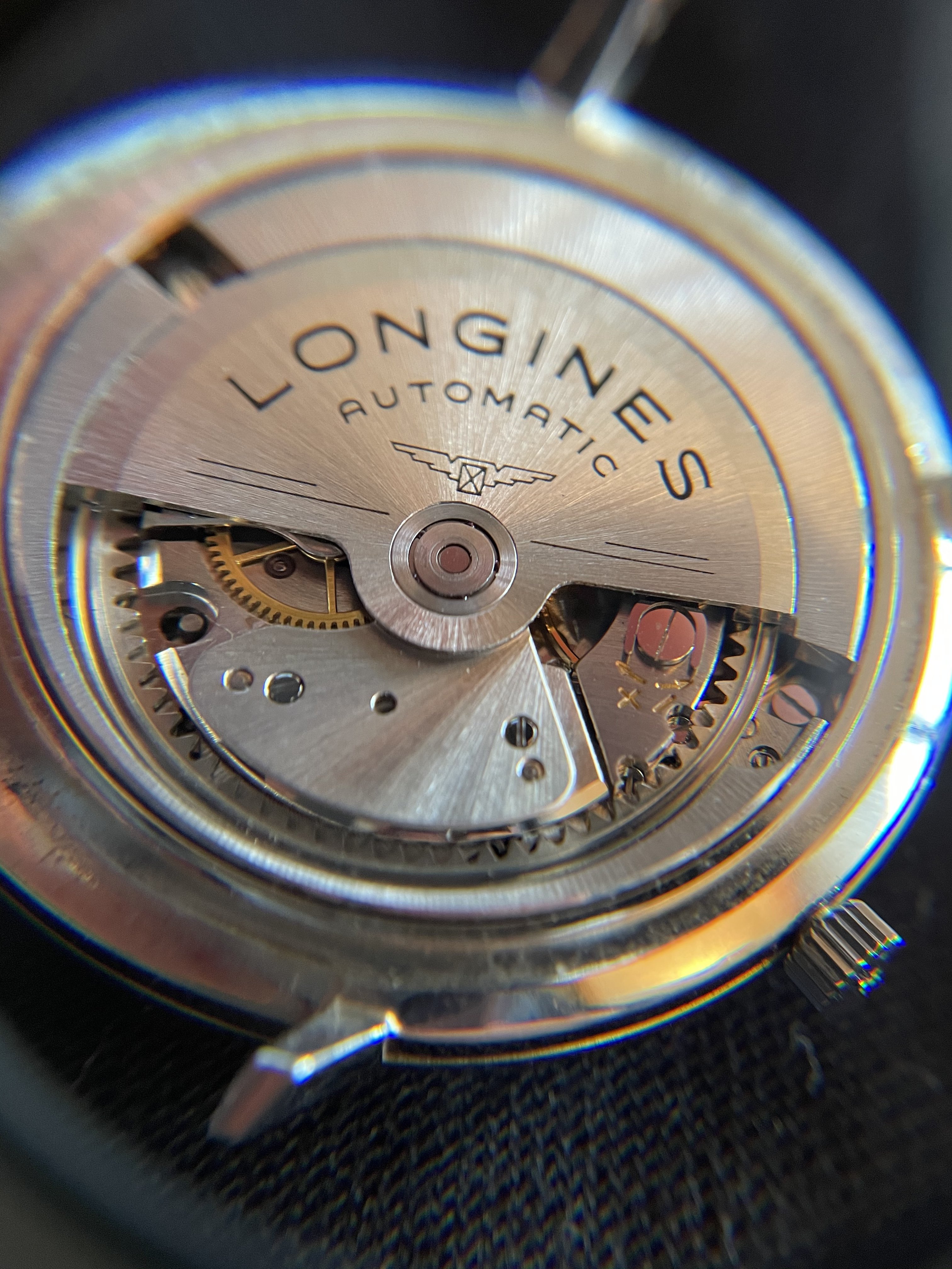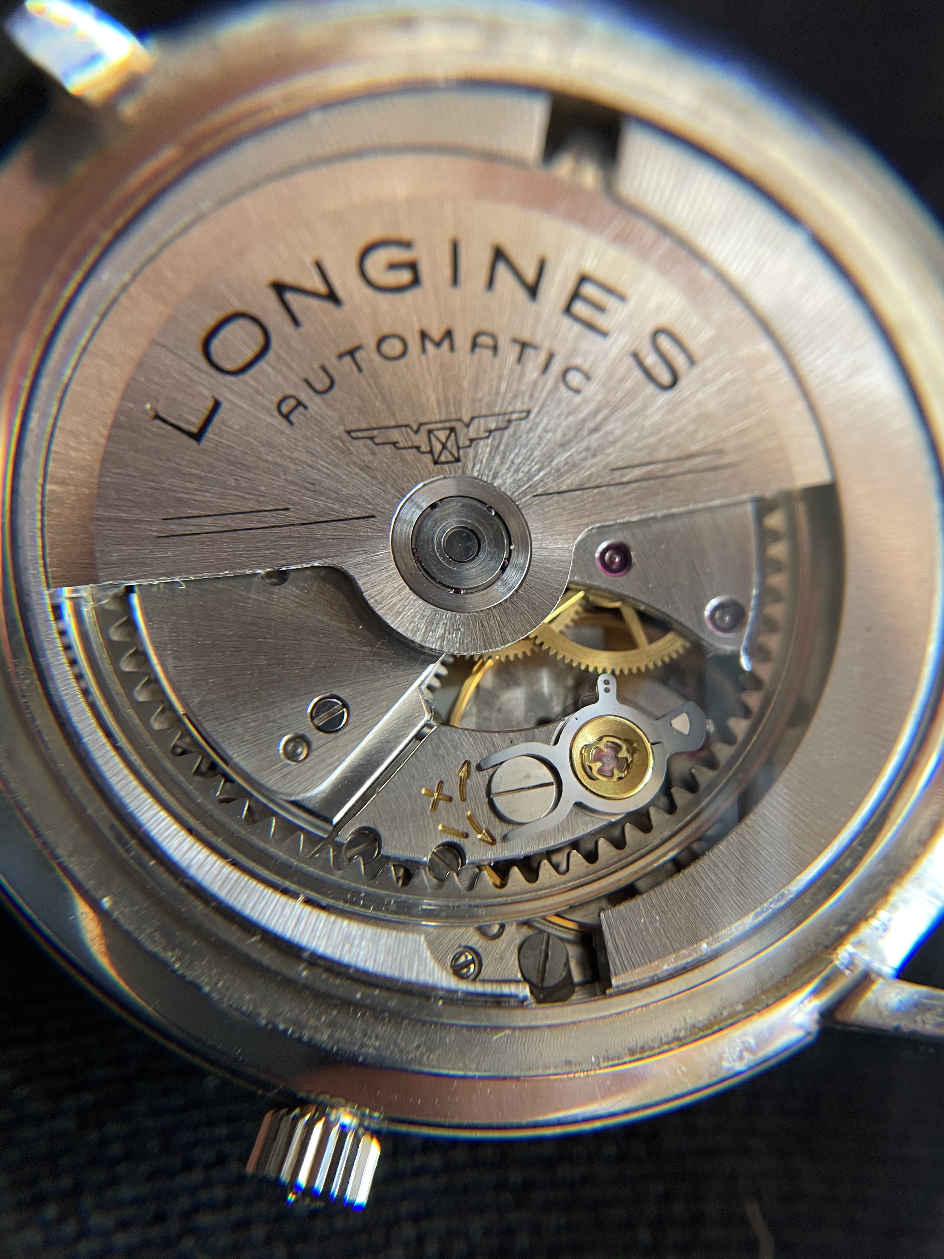 This de-centering solution had been used by Longines before (without the cremagliera). It was in a chronometric manual caliber (30B), to allow a balance wheel diameter larger than half the width of the caliber.