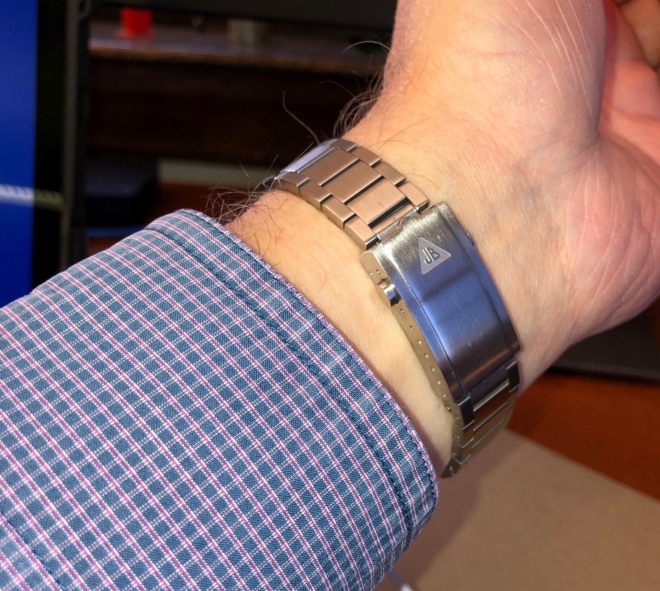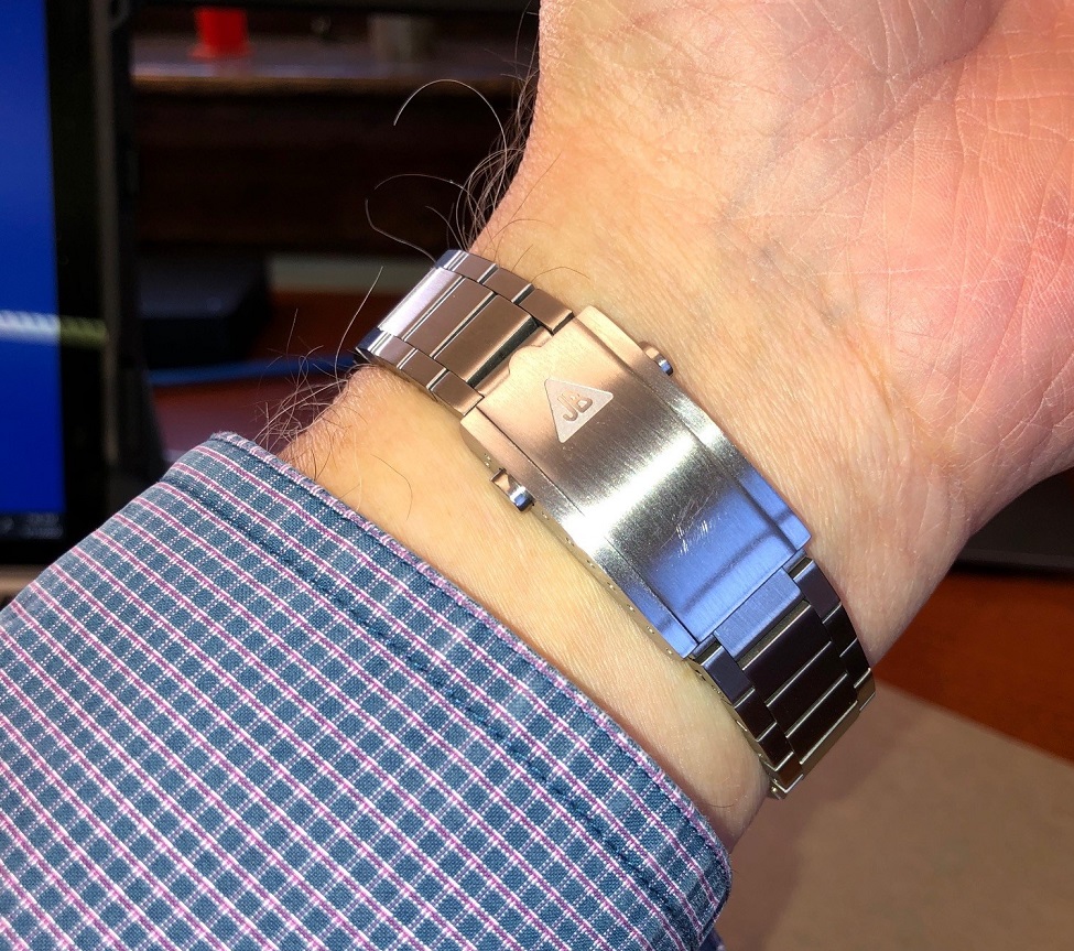 Fully brushed version. Compared to the one posted a couple of pages back (polished/brushed style), the finishing on this doesn't look as refined. I'm on the fence about whether I'll wear this more than the OEM bracelet. It's a change, so it will get some wear: