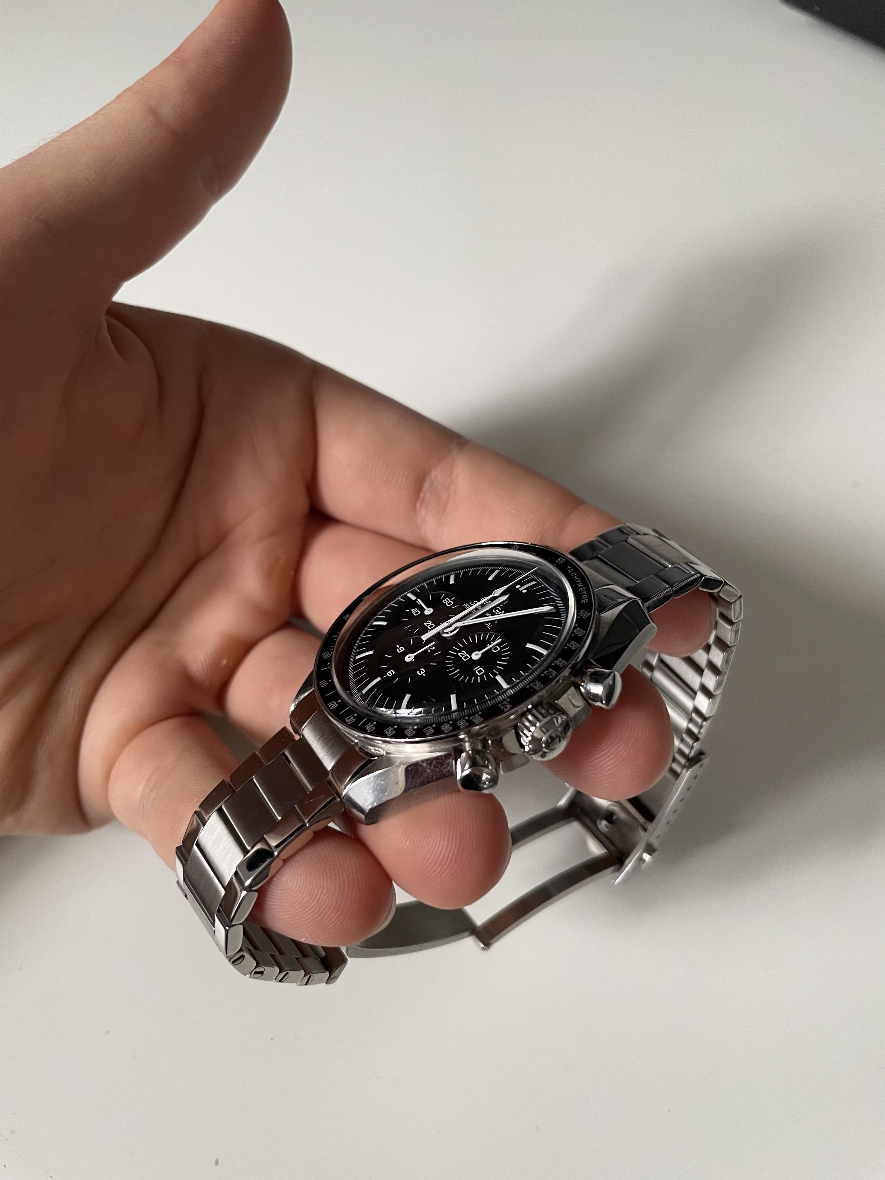 Did you make sure that you ordered the 20mm wide flat link bracelet? Looking at their website, the original flat link is made in 20mm width for the Speedy Pro and 19mm wide for the FOIS.