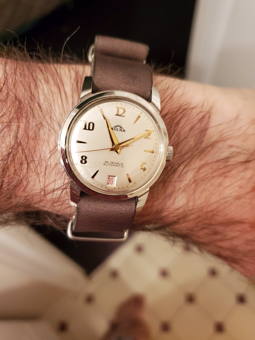 The second caution is the dial which may look better in real life, the same, or a bit worse. White, champagne, and sunburst dials tend to show every blemish and often look better in person, to the naked eye. Black dials are a bit more fickle and the waffle dial, even more so. I really like patina but again - not everyone does. Too bad you missed out on the black, textured Tissot that just sold on the private sales section as it was a bargain.