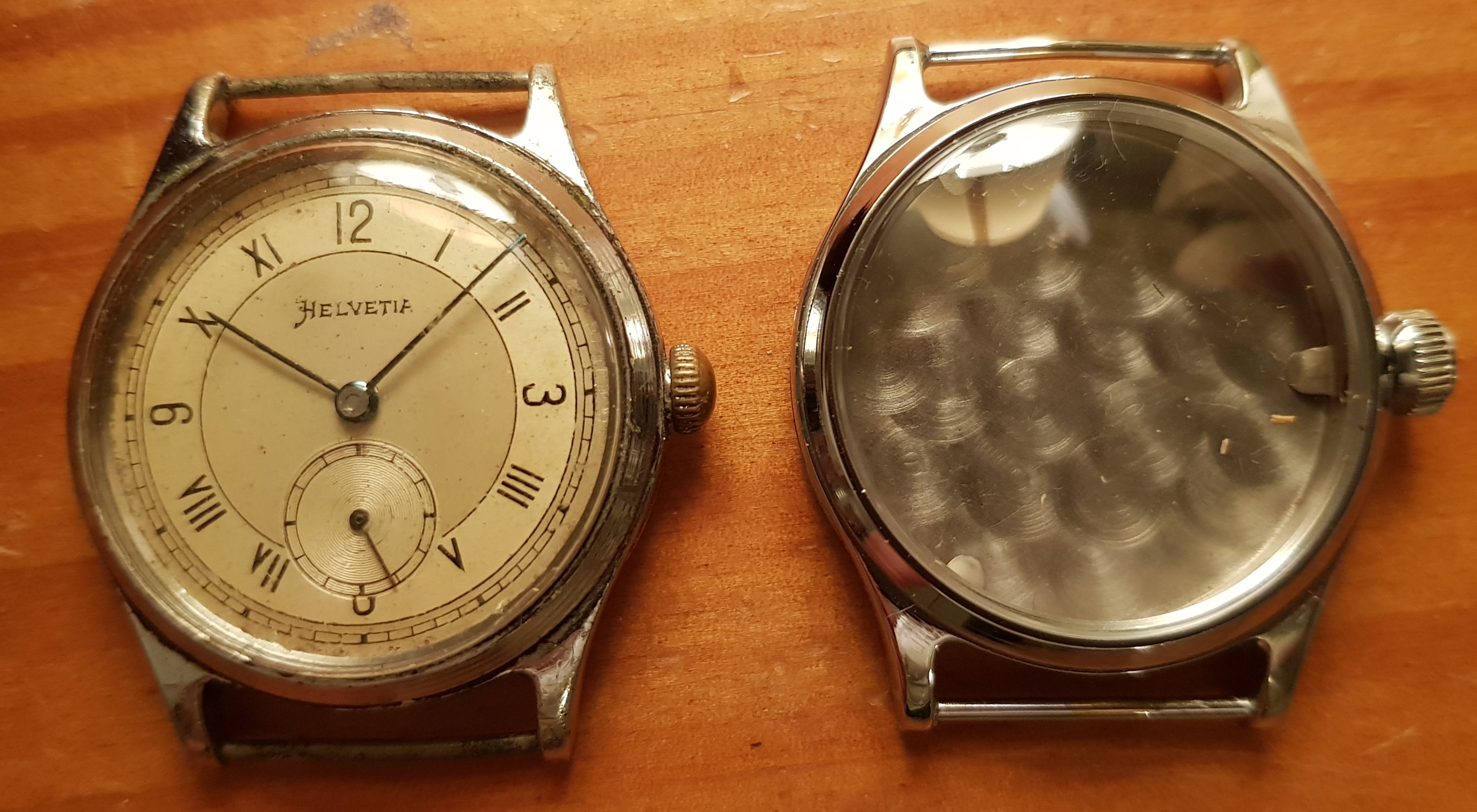 The new old stock cases also make people suspect these watches, they decide the NOS cases are fakes and think that all the watches in these cases are fake. Owning several of these cases and watches I can say that I am 99% sure the cases are original 75 year old NOS cases. There is quite a few NOS Helvetia parts around, I think when the factory closed they sold off a lot of old stock.