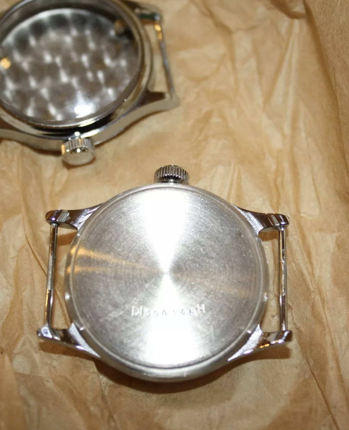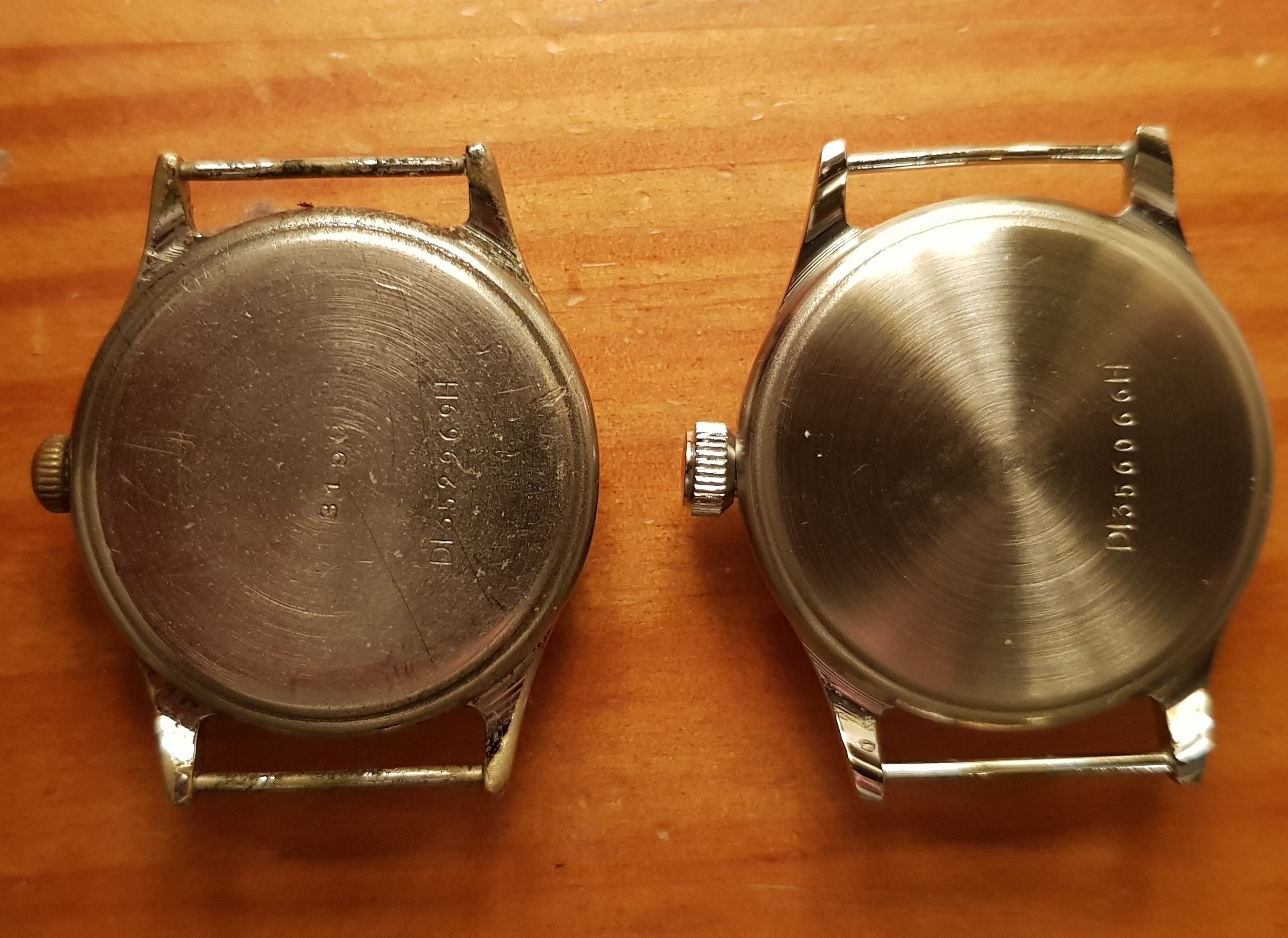 Sorry I don't have movements or dials. Are the cases you have all of the type with the smaller numbers beginning 35 or do you have some with the lower numbers and large DI H marking?