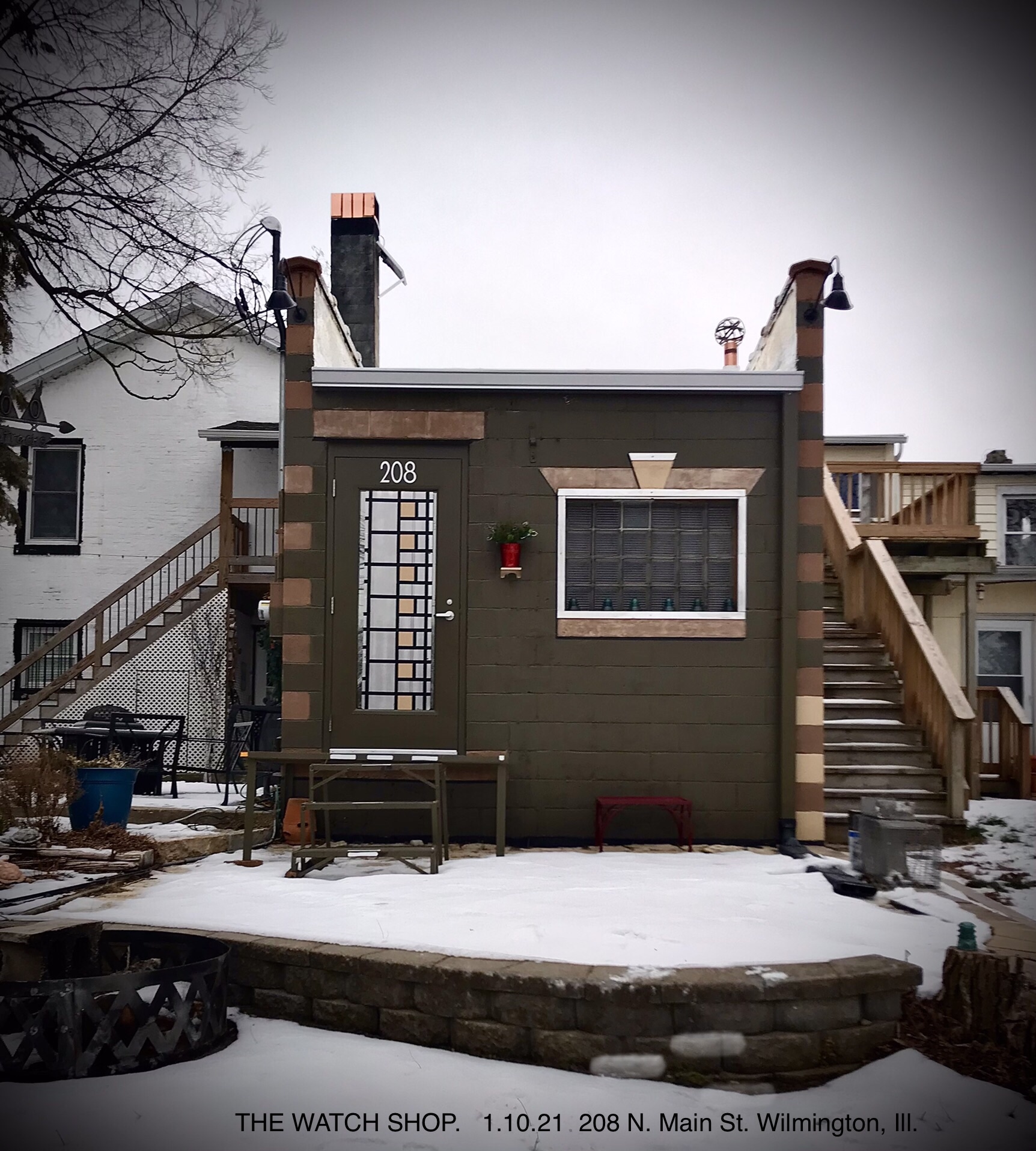 14 feet wide and 76 feet long. The original brick structure was done in 1867. The old watch maker lived in the adjoining house and entered the watch shop through a common interior door. I uncertain when he started his watch business however it was probably in the 1920’s.