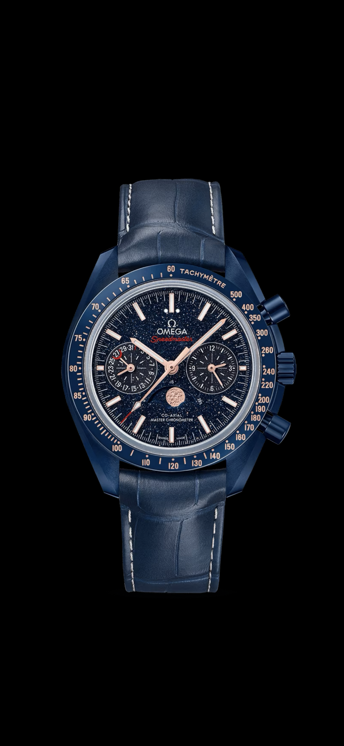 This is an enormous watch, in a conspicuously unusual, colorful case material, with a sparkly outer-space-like dial and a photorealistic moonphase on it. Again… it’s a lot.