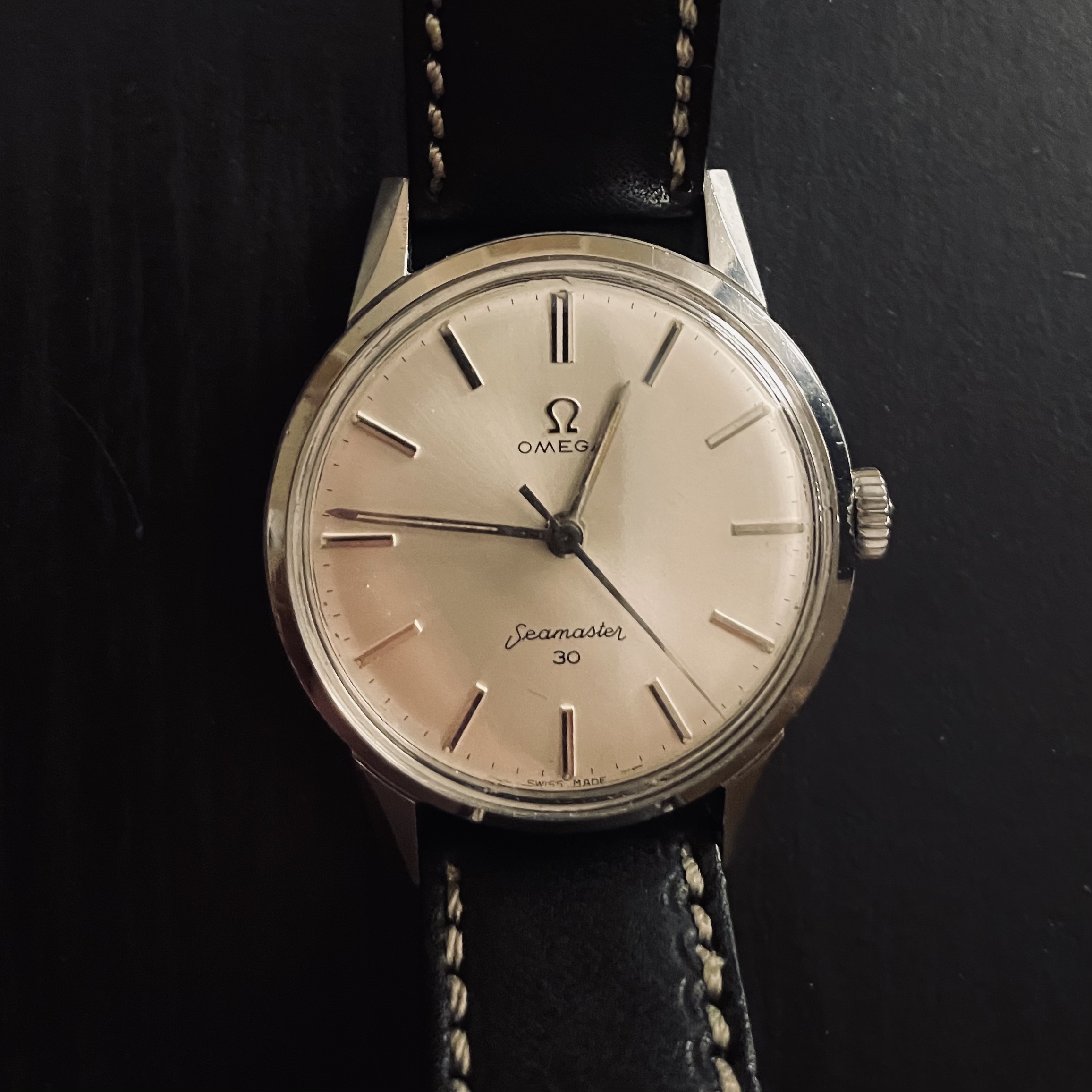 I’m very much new here and I’ve just bought my first vintage watch. It’s a 1962 Omega Seamaster 30. It’s in great condition overall, but the crown is a little tight to wind. I contacted the seller and he reassured me that the movement was cleaned, checked for worn parts and oiled before sale. He said he bought it off a guy who barely wore it and that the teeth on the gears could need using... The case still has its natural chamfered edges on the lugs, the dial is in wonderful condition due to a lack of heavy use and the only thing on the watch that was not original was the Crystal.