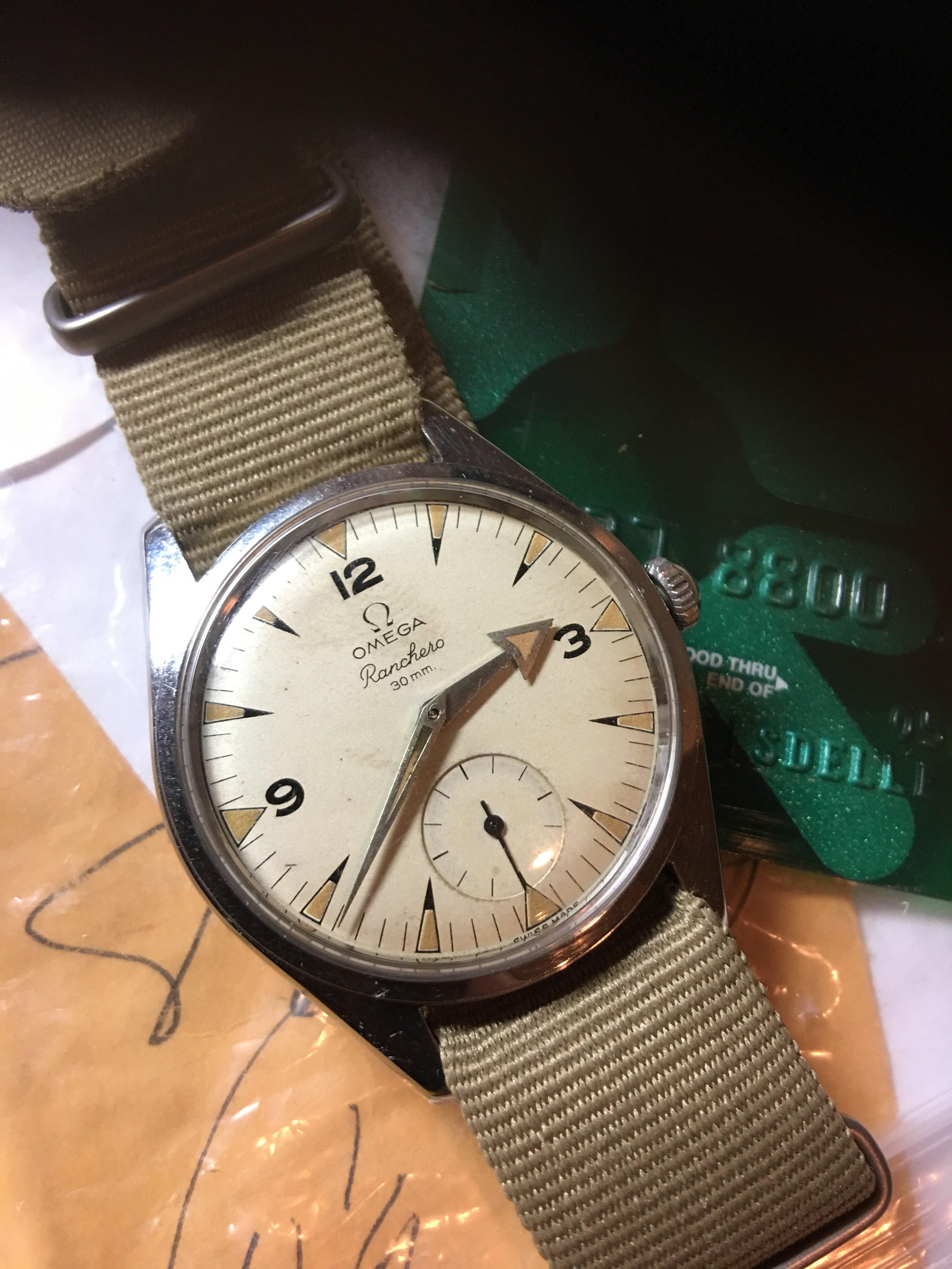 That one has a replacement crown, too, but a different one. The one in the OP is a typical replacement crown, available today. The correct type of crown is a bowlerhat style crown, as can be seen on the other examples provided by tdn-dk and others in this thread. It is common on fifties 30mm Omegas...