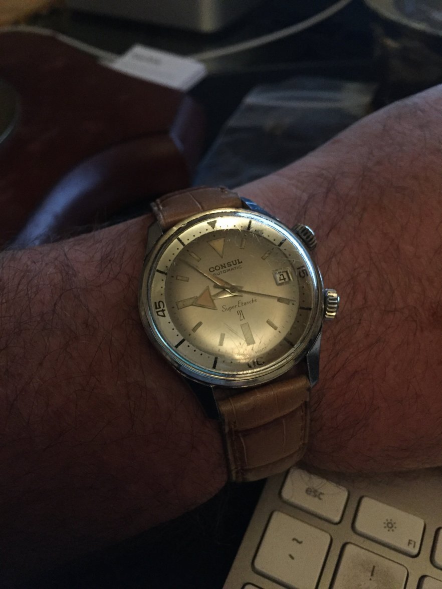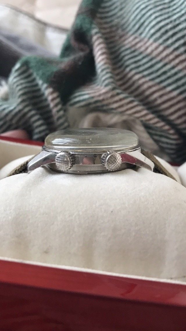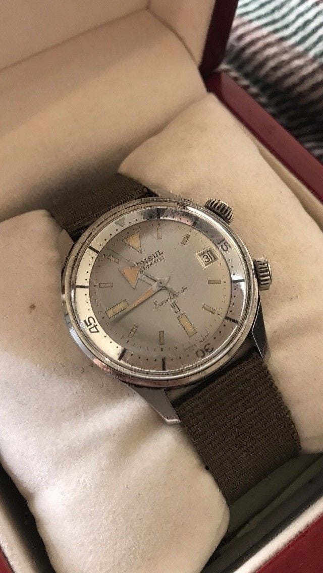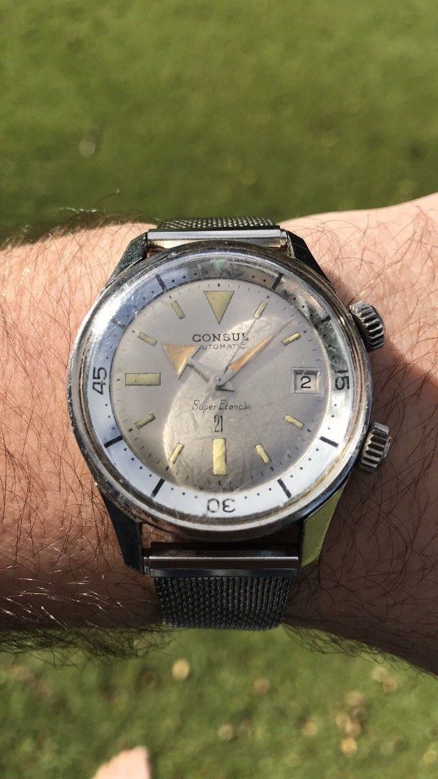 Oh yah, and it looks all original, unpolished (or minimally so), in a modern size and it’s a Super Compressor with silver dial and nicely aged lume....