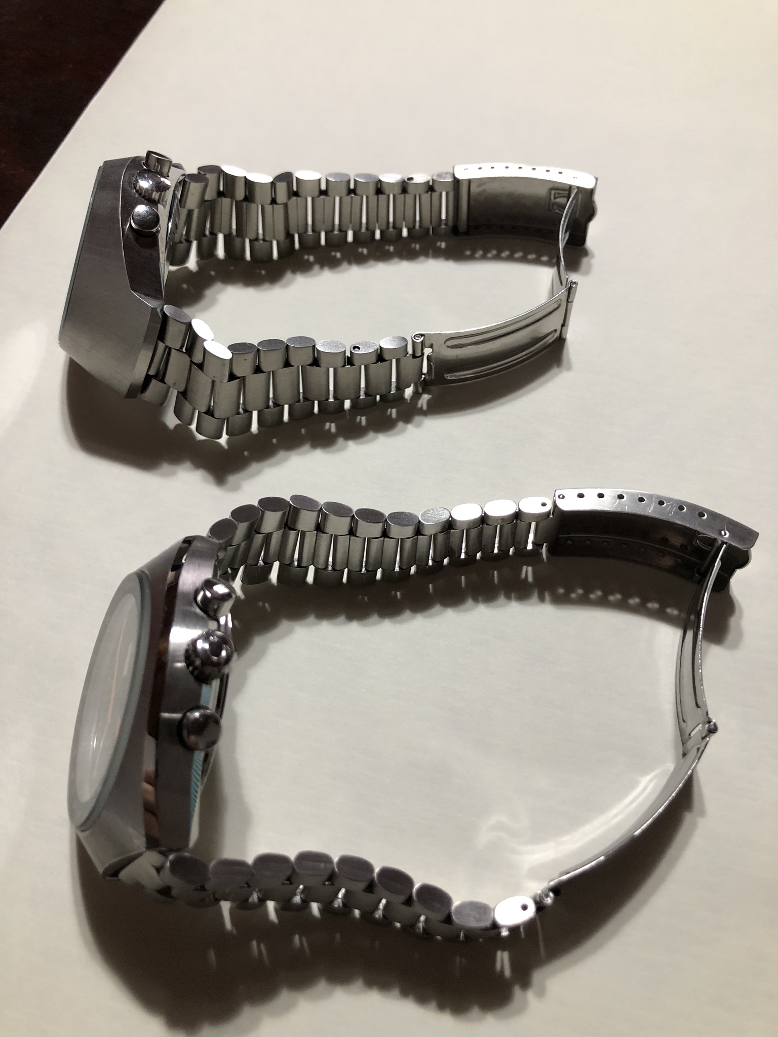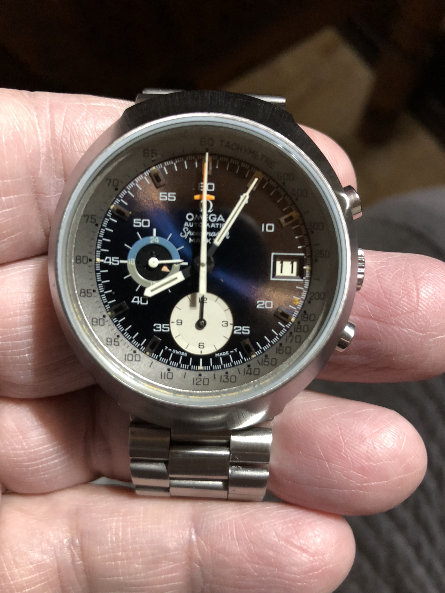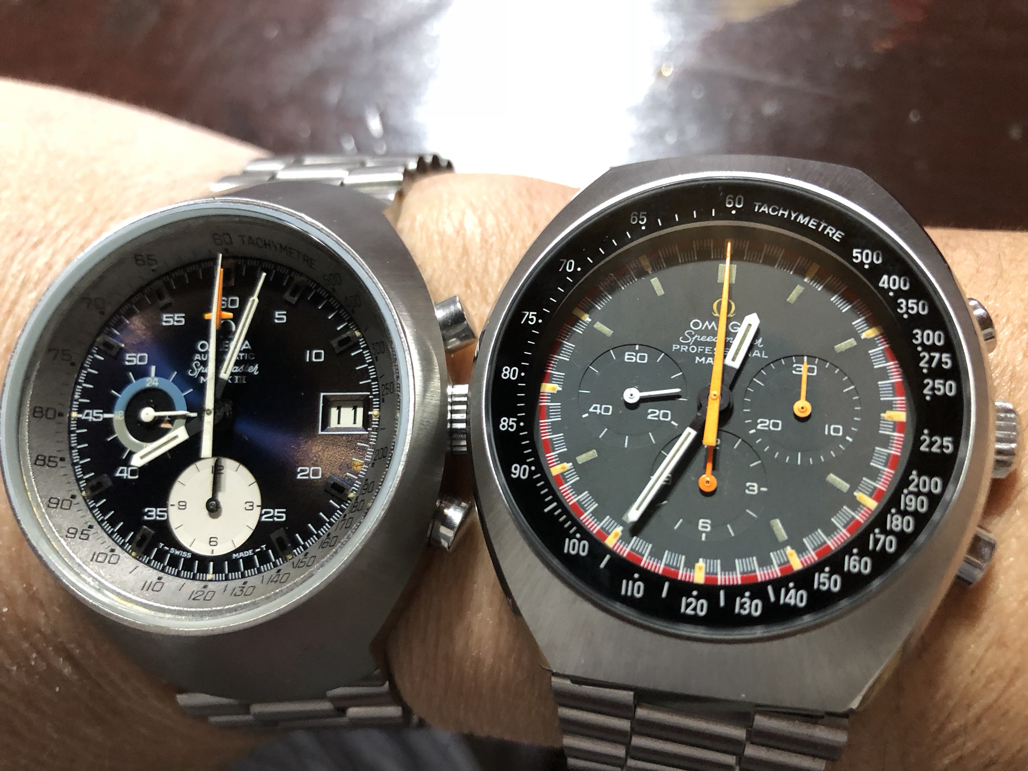 ·i decide in 2018 to make all the Mark suite watches after a Mark V TV, here is the new babies today, a Mark III with a nice blue faded to iridium in some parts of the Dial, inner bezel faded to grey instead of blue, and a 71 Mark II racing , both watches gone to Omega for glass and gasket change and a light refinish to have it perfect.
