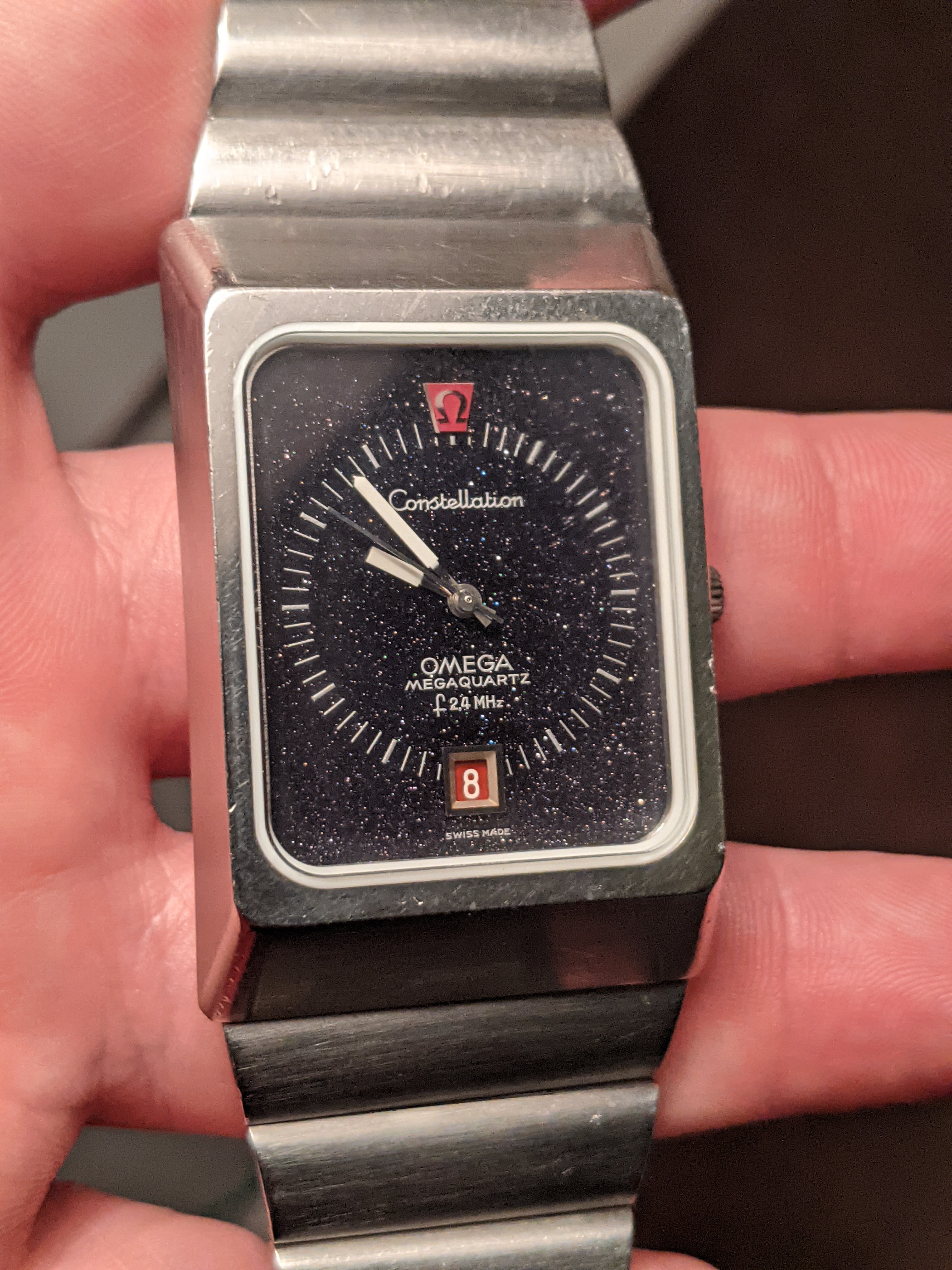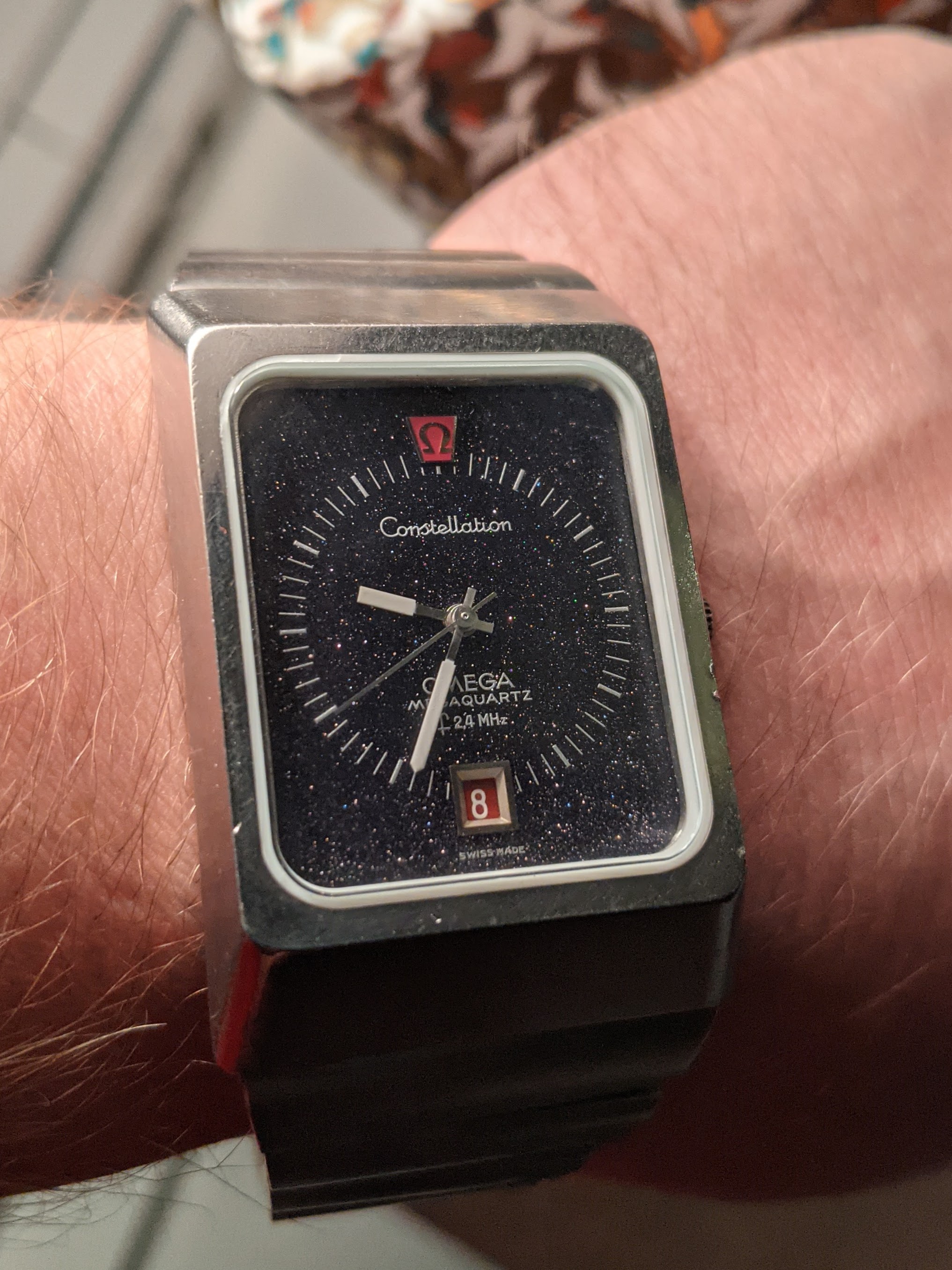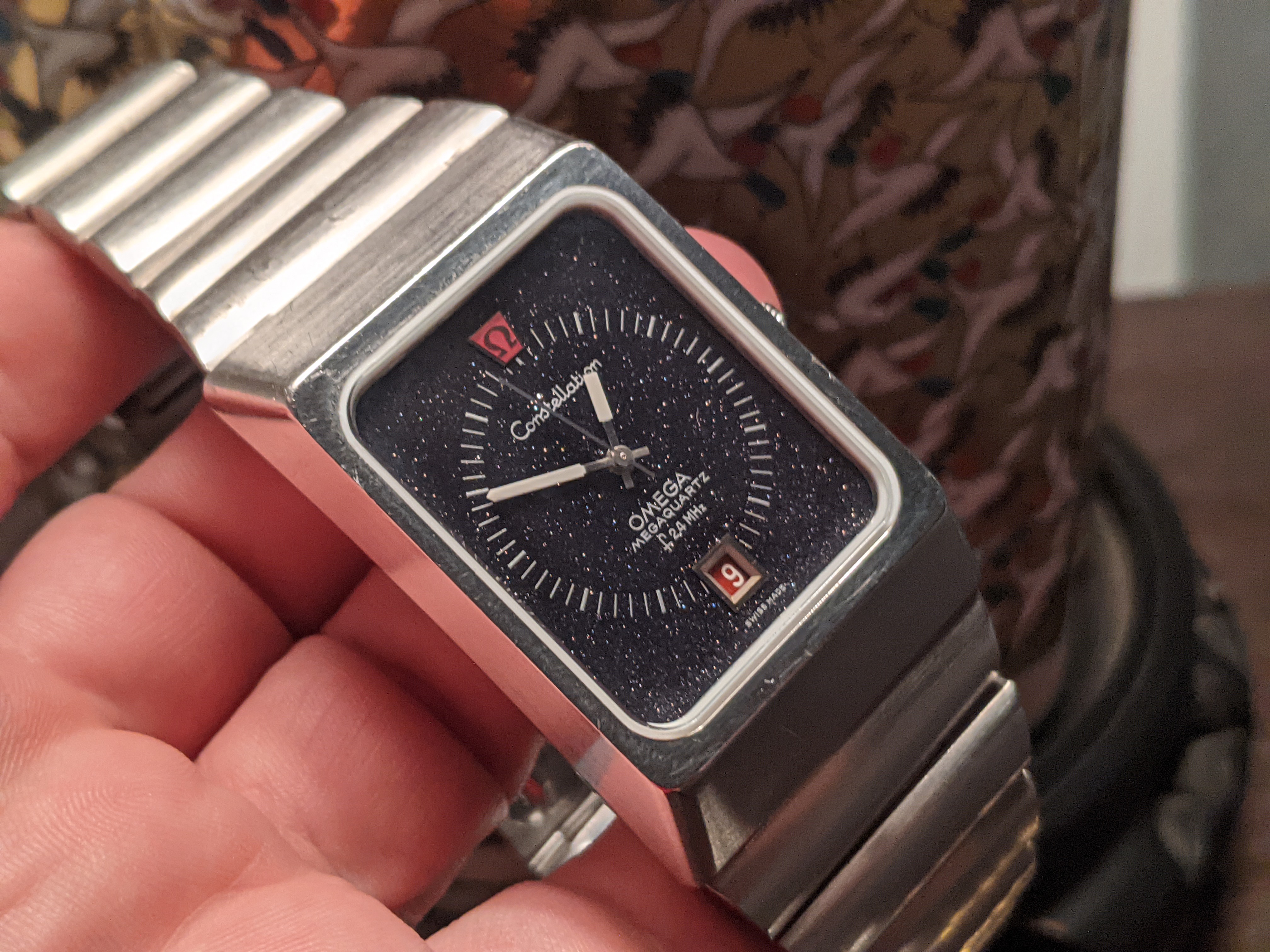 I'm thrilled to have finally acquired one of my long-sought-after dream watches - the Omega Megaquartz f2.4 Mhz Aventurine Stardust. It's a beautiful thing to behold, with a glittering adventure dial that looks like sky full of stars. One surprising thing, it's loud! I can hear it ticking from 10 feet away. Is that normal?
