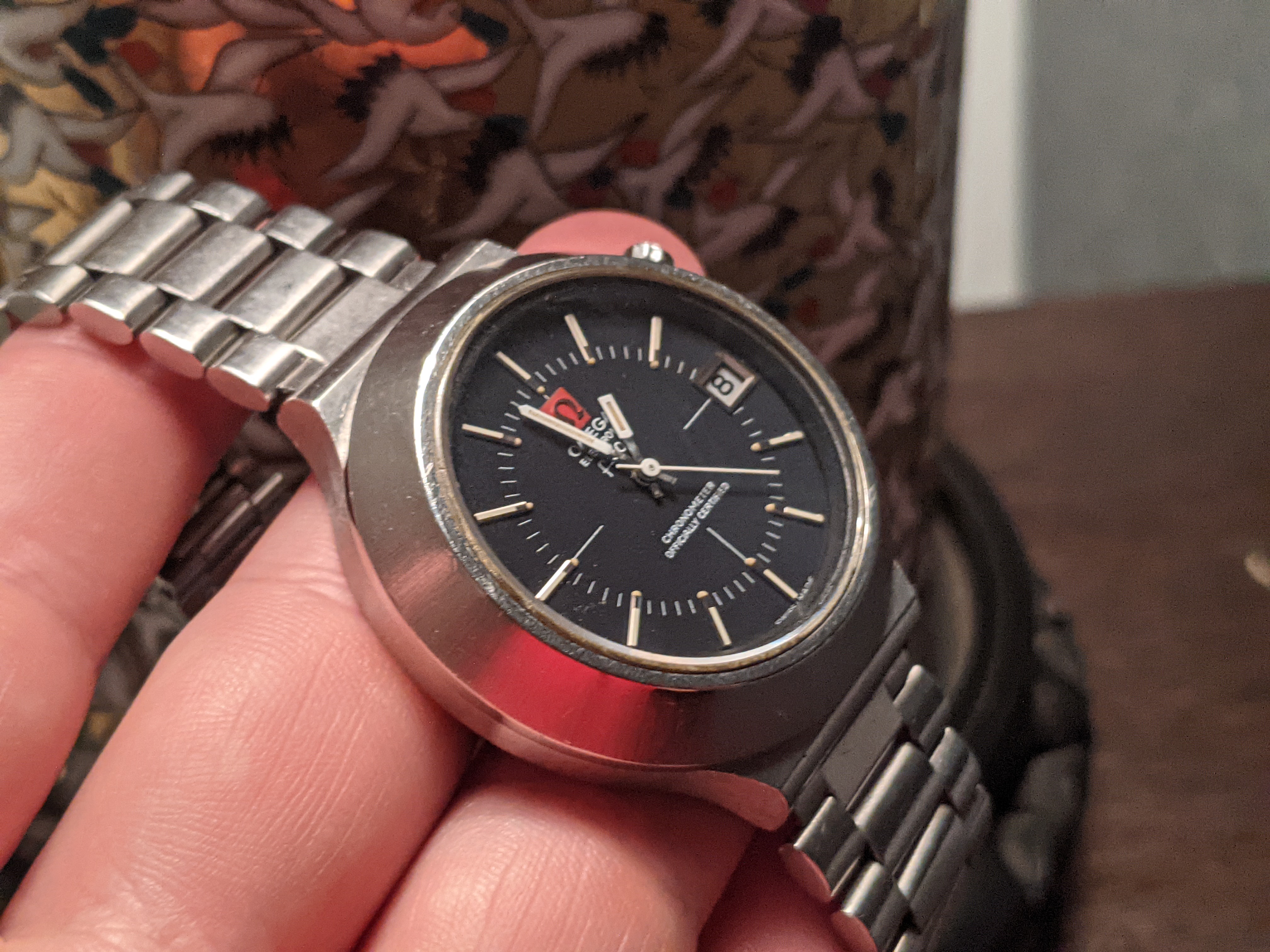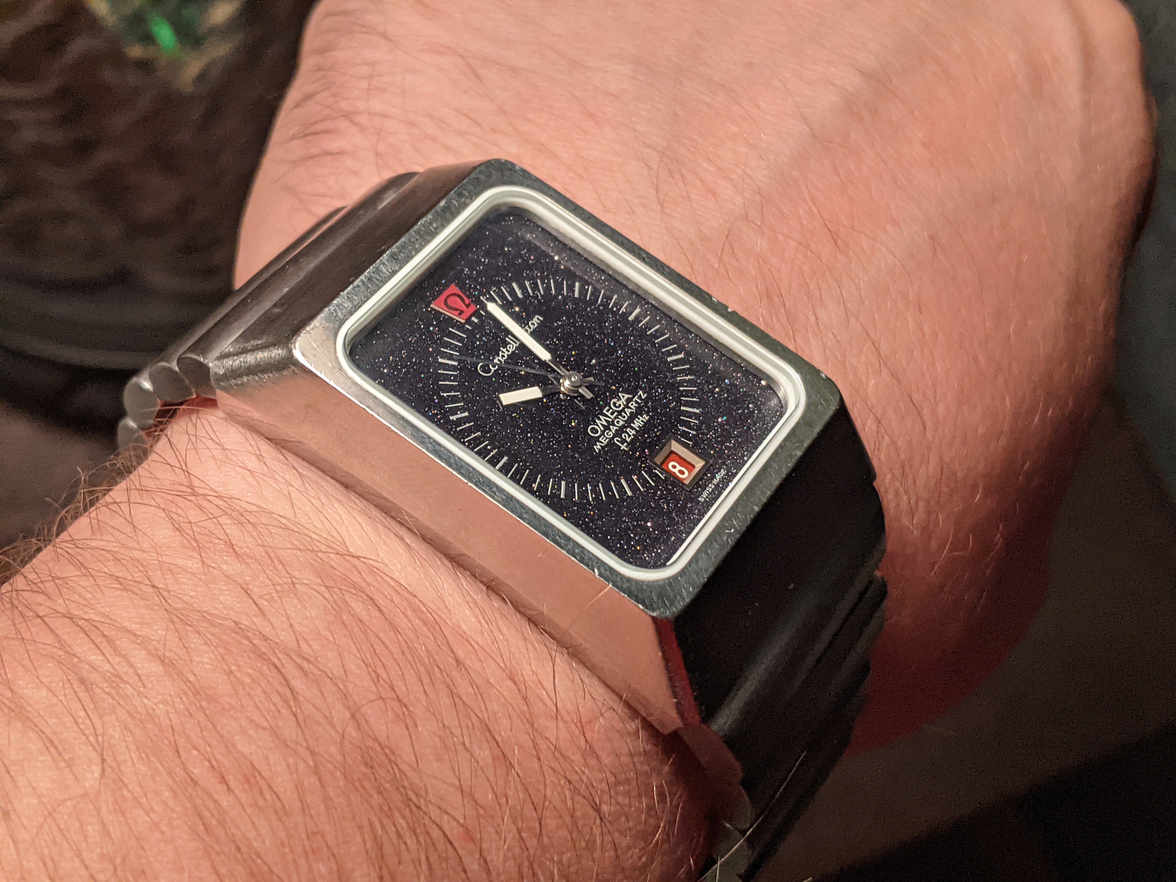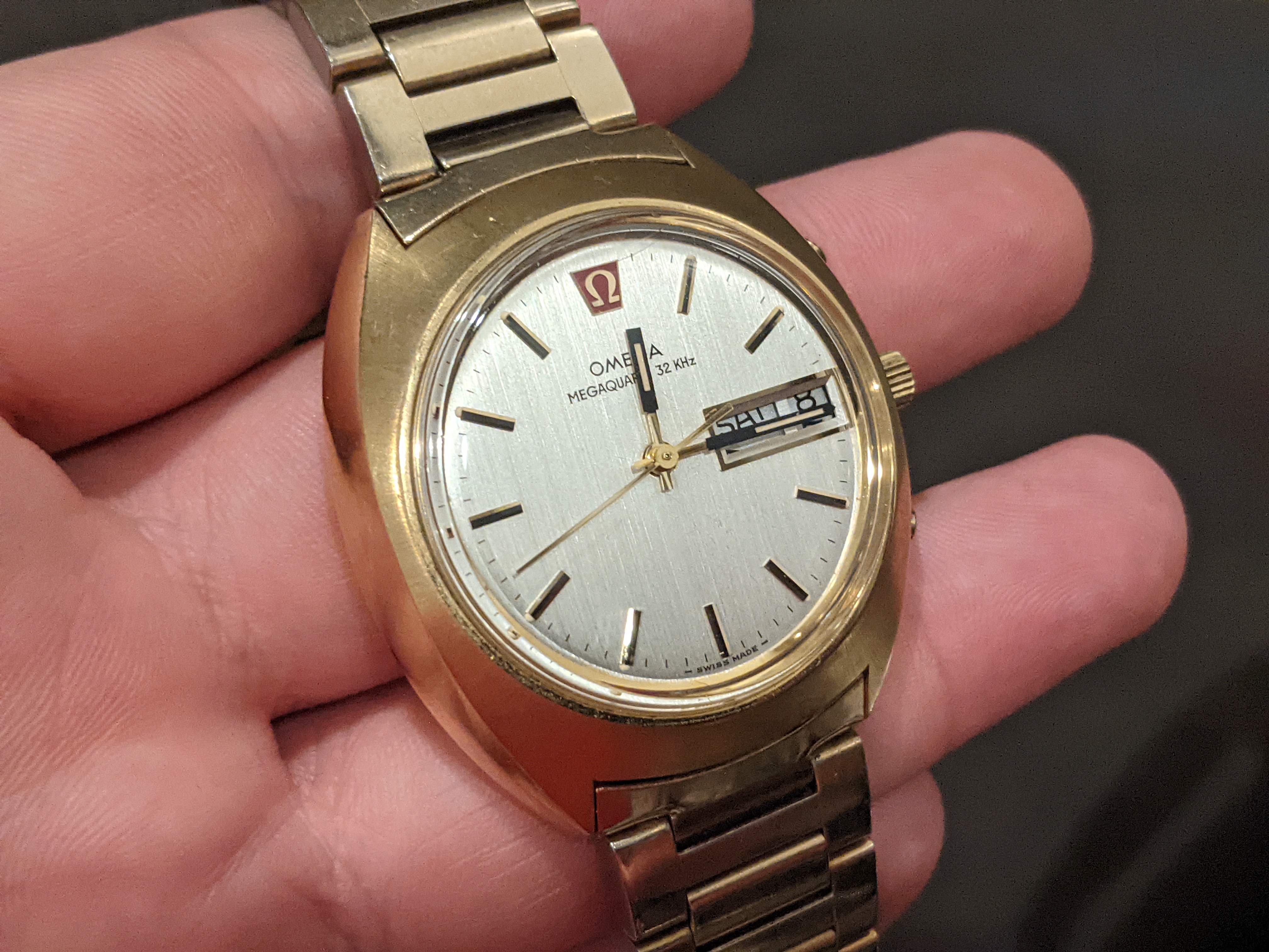 I also own its competitor for the title of world's most accurate watch, the Seiko 3823 from 1972, which I'll post about when I get it back from service. The Megaquartz brings my Omega collection to four watches. I feel like I've got a respectable collection now.