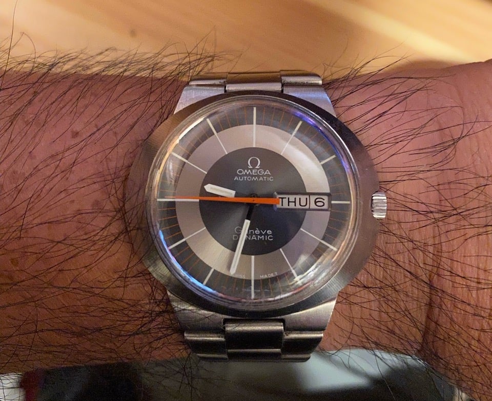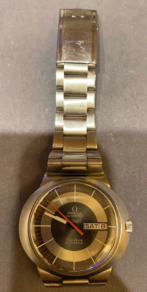 Turns out when he and my mom were getting together back in the late 60's, my mom's father bought him an Omega Dynamic I as a gift in 1969. He said he wore it for a few years and then just held onto it for the sentimental value. I don't remember seeing this watch at all when I was growing up, so as far as I can tell it's been knocking around loose in a box with a bunch of other watches of his and my mom's forever. He says that he got it serviced around 6 years ago, but he has no recollection of what was actually done to the thing at that time, and again after that service it just went back in the box.