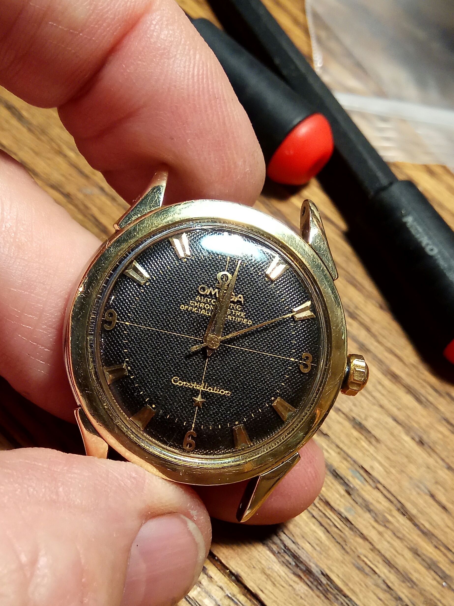 ·Greetings, thanks for accepting my application for membership. I was recently given a box of stuff that was my Dad's. He was a pilot for PanAm in the fifties and sixties. Attached is a photo of a watch he wore as he traveled the world. I'd like some information about it's age, collectability, etc. Obviously it was well "loved". I'm in Pasadena CA and would like to have it cleaned up and get a new strap... recommendations? Thanks in advance. Ken