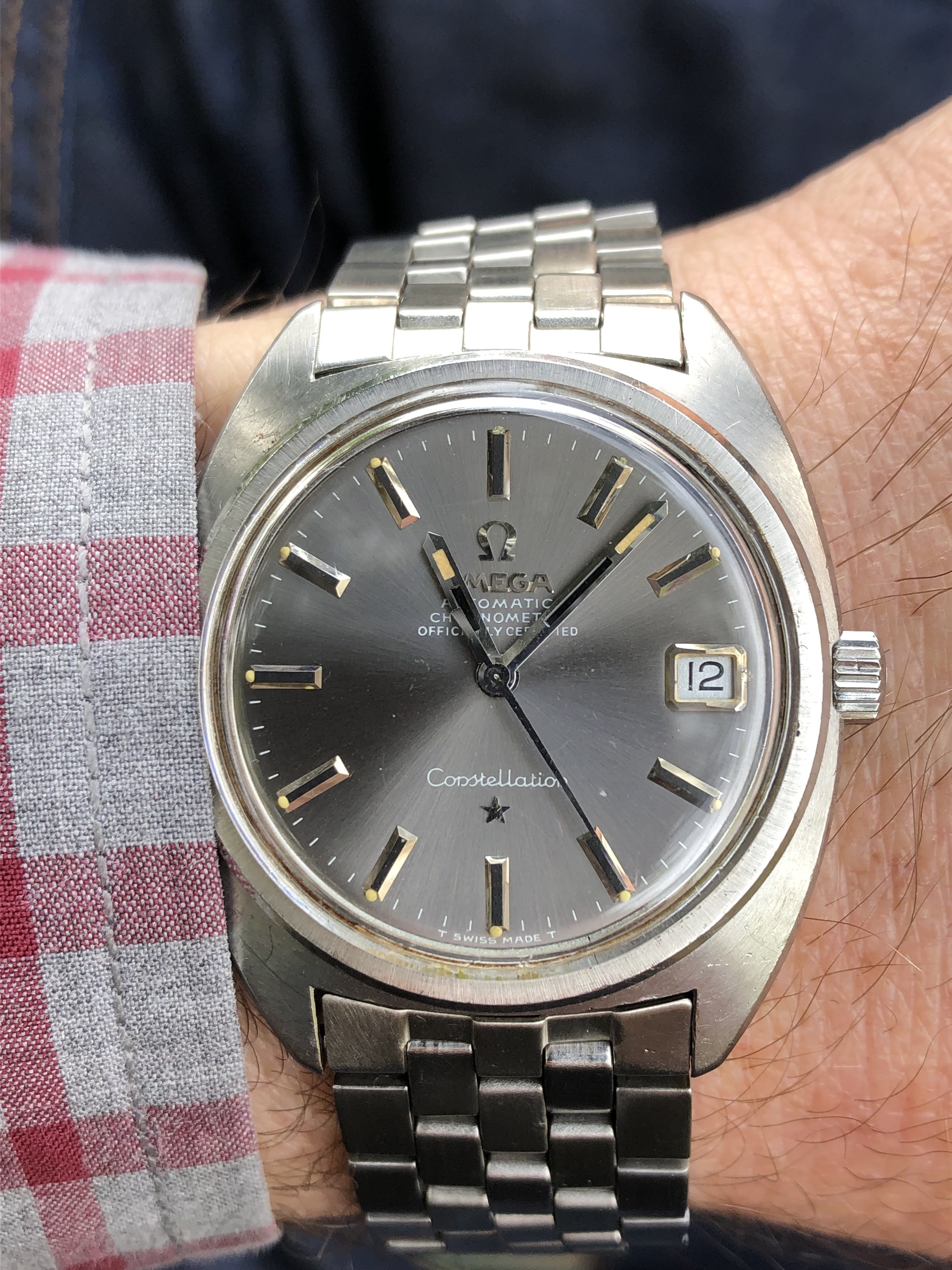 I have always wanted an Omega watch and decided after living for 50 years it was now the time to treat myself. Being unable to afford anything new or modern I took the step to decide on a vintage watch as old as me. Maybe crazy but here it is, my Constellation. It actually looks better than the photos I feel. Not overly polished, crisp case lines, some patina on the dial but not too bad, logo on crystal and crown all looks original. 564 movement and case model all add up to being genuine. Anyway I like it and it has started my collection and being this old kinda feels special to me.