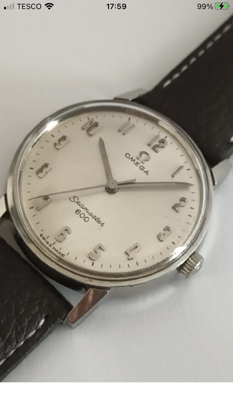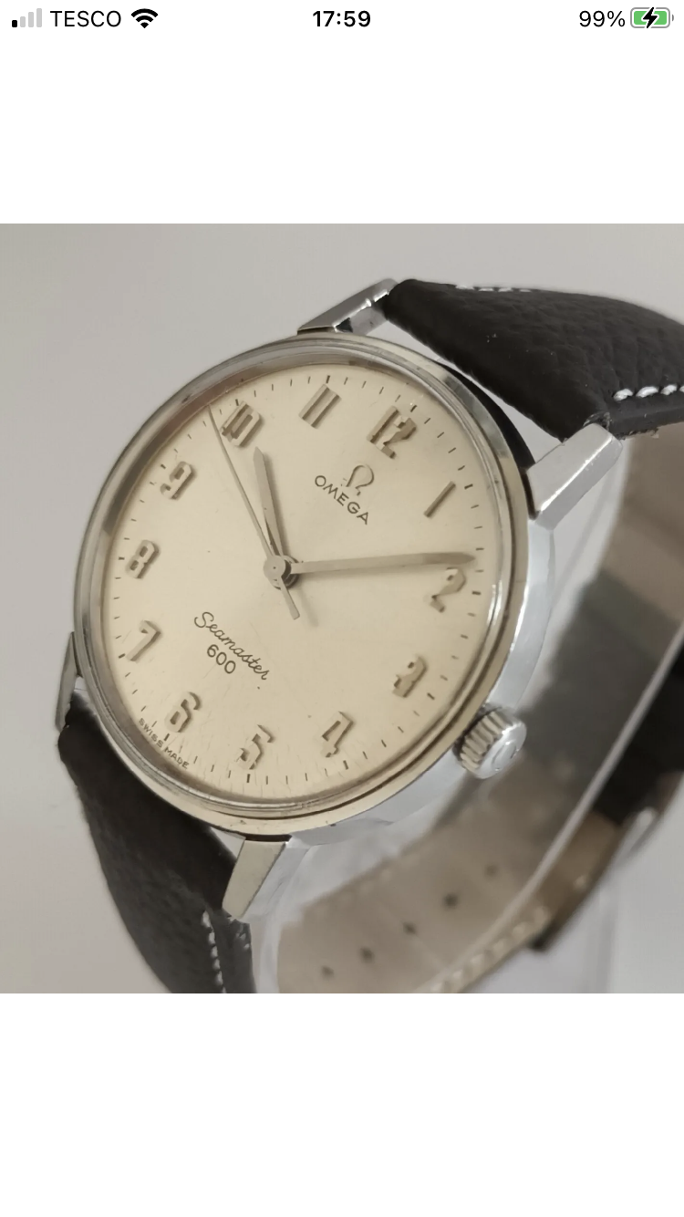 And finally my 3rd and latest purchase. I felt I finally started getting an eye for a nicer watch and recognising condition better. I started looking specifically for a seamaster as I wanted one in my collection, a nice dress seamaster, I kept coming back to the 600. I was watching eBay like a hawk for weeks, getting acquainted with dials and styles when I saw this one for auction. The dial and applied Arabic numbers spoke to me. I had to have it. In my eyes, maybe not yours, I have not seen a more beautiful watch ( probably until next month). I stayed with that auction until the last 5 seconds, placed my bid … and it was mine. It’s home now, I can’t stop staring at it. I’ve 3 leathers straps and yet to decide what I prefer it on. The process has started to ship it to a watchmaker for a clean and movement service. I know already I will never sell this watch. I logged back in here after I bought it for a browse and while catching up on some threads i noticed the very watch I purchased being highlighted in the vintage omega eBay recommendation thread. I felt the purchase was then vindicated and felt lucky to get the watch without even more of a fight.
