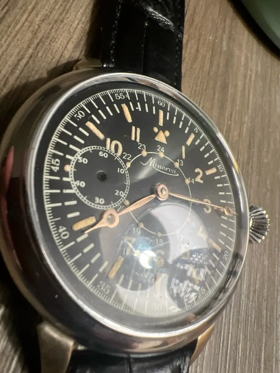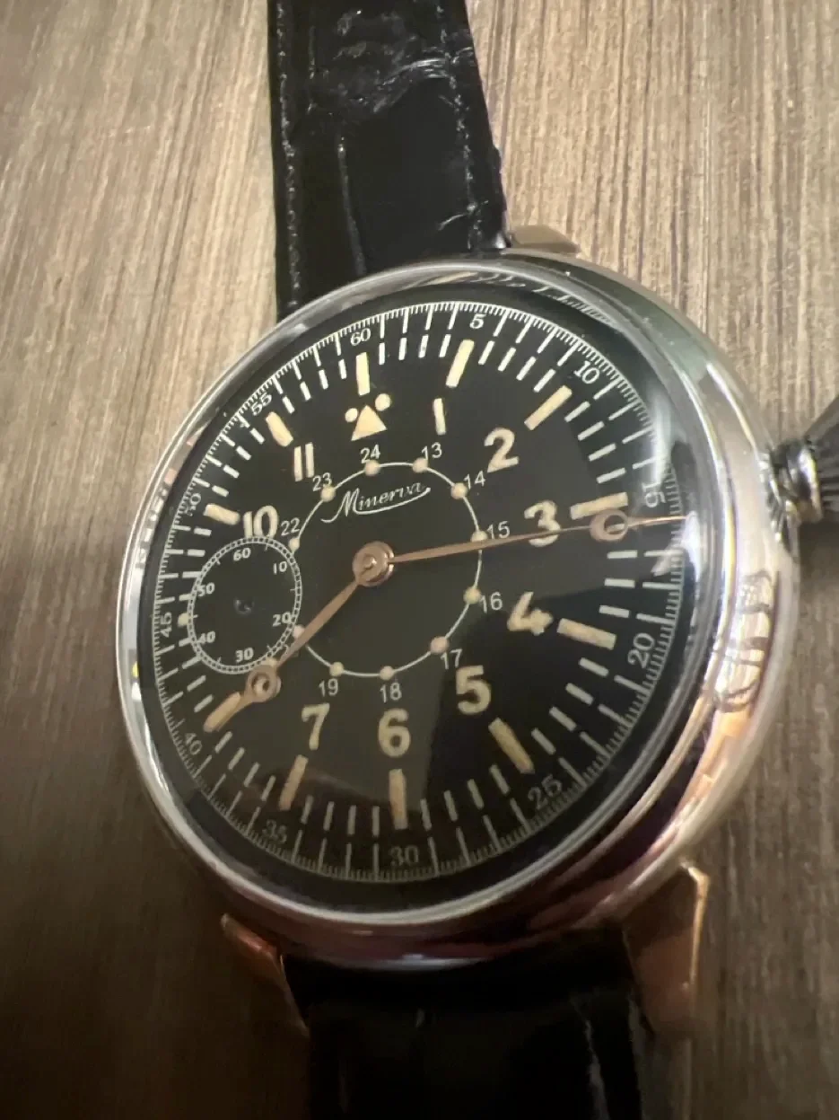 ·Hullo! I recently bought an old Minerva, I presumed a DH with a radium dial. When I got it home, the dial looks suspiciously new, so at least a redial I thought. But got thrown off by the lume (usually fake patina looks a bit different to me.) Also I couldn't find any other Minervas with the seconds on the 9 (not sure if that is a good or bad thing).