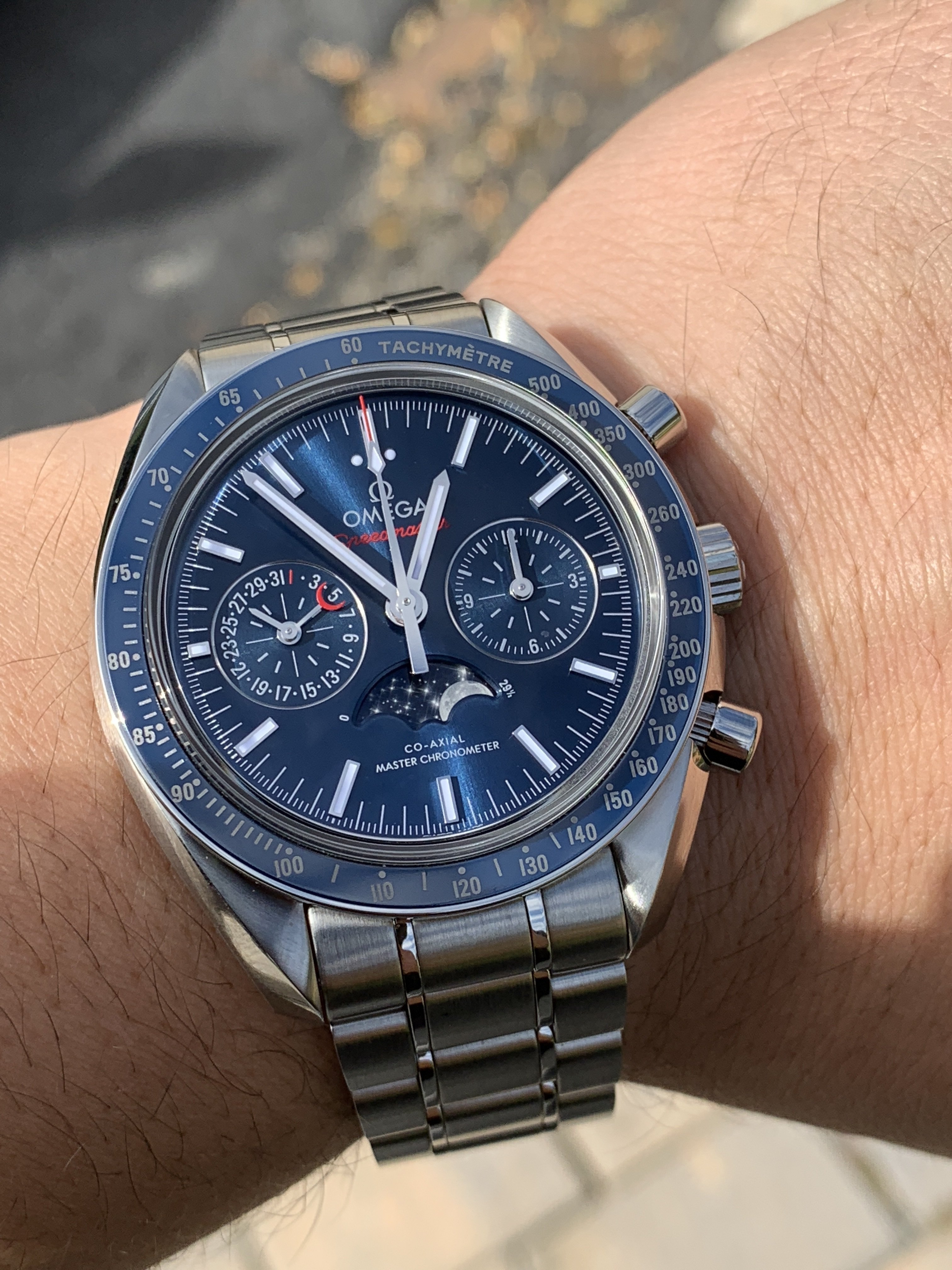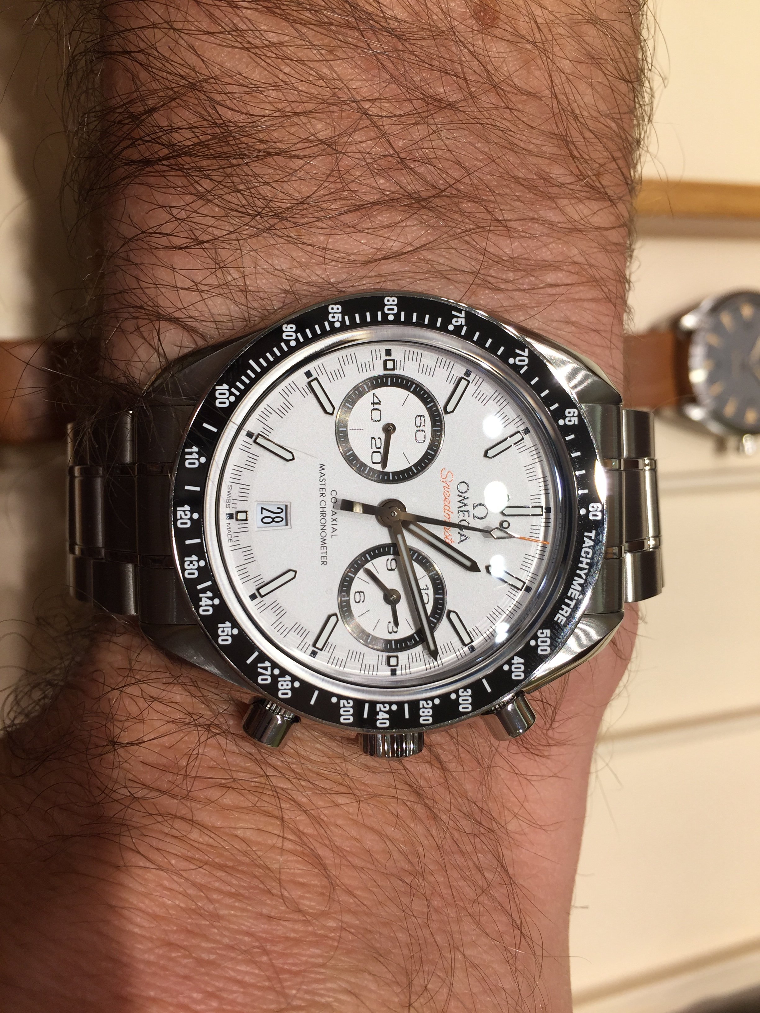 I actually though the Daytona was tiny when I tried it one. Still love it but in my ‘dissapointment I oicked up a couple if 44mm Speedmasters since. Oreder the size overall. Though a very sifferent watch in the flesh of course. It does look huge in the sode ny side photo granted, but on the wrist it does not dominate too much. Fits just about under a dress shirt too with right links. Not as slender as the Daytona granted. That’s a special watch but I came away underwhelmed by the wrist presence. So parked that one for now. Feels more of a dreas watch than sports watch (to me). Couldn't fault the quality though. Superb. But Rolex sales chappie being a condescending pratt disnnot help. 😜