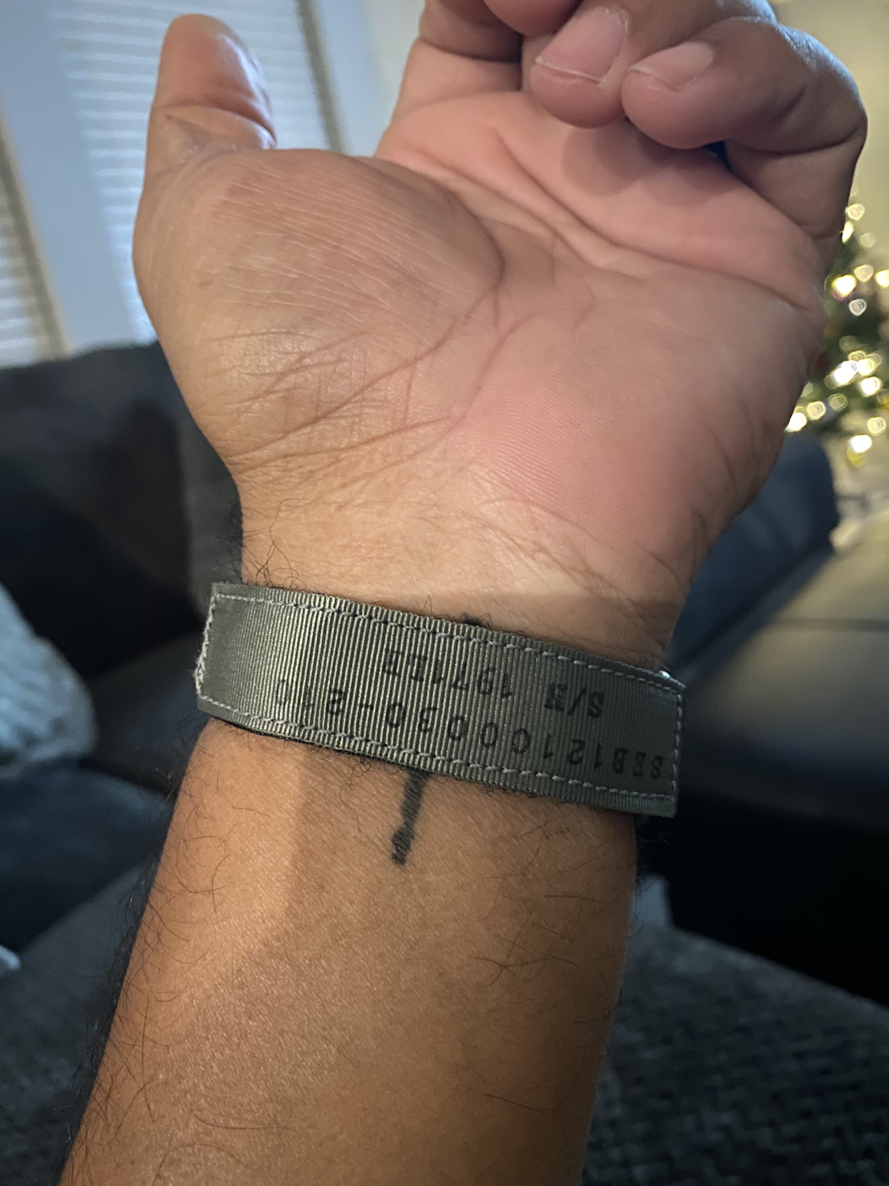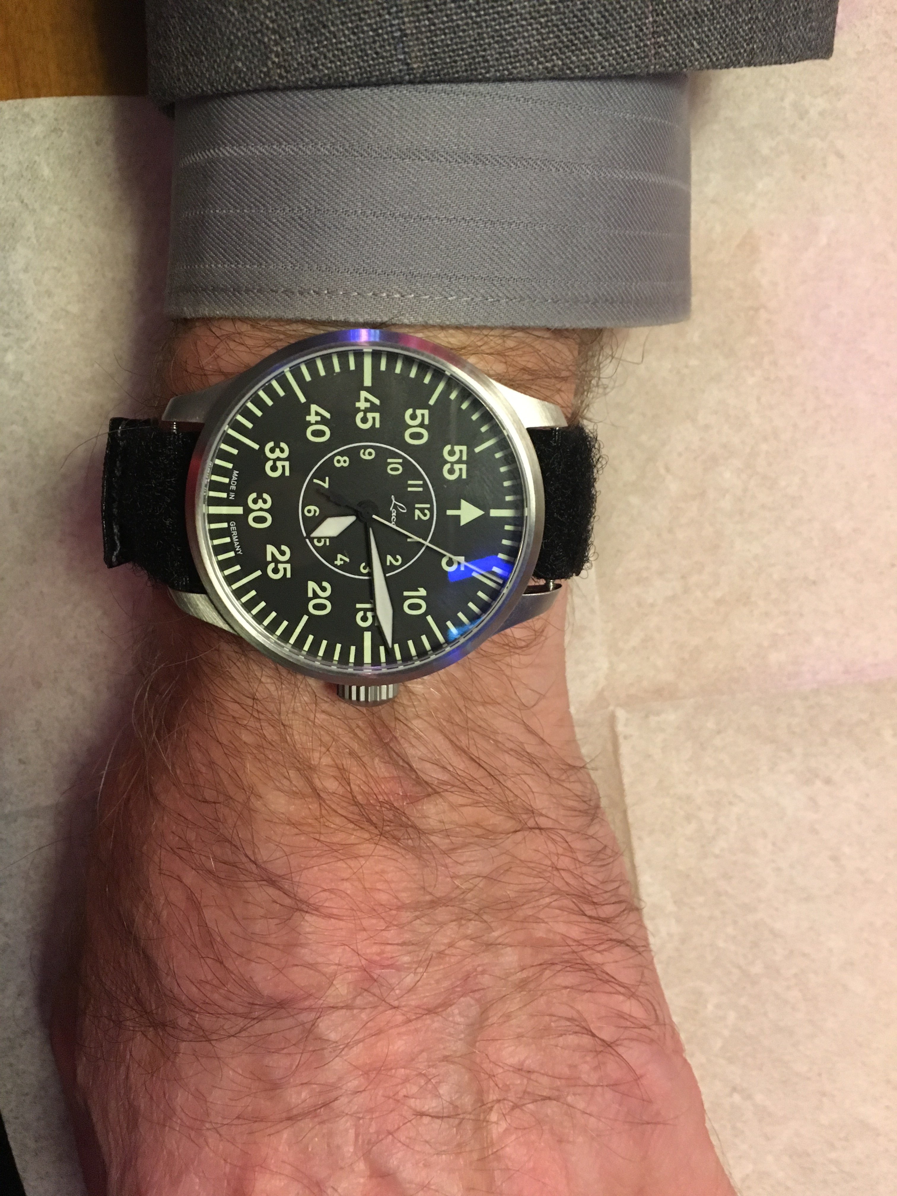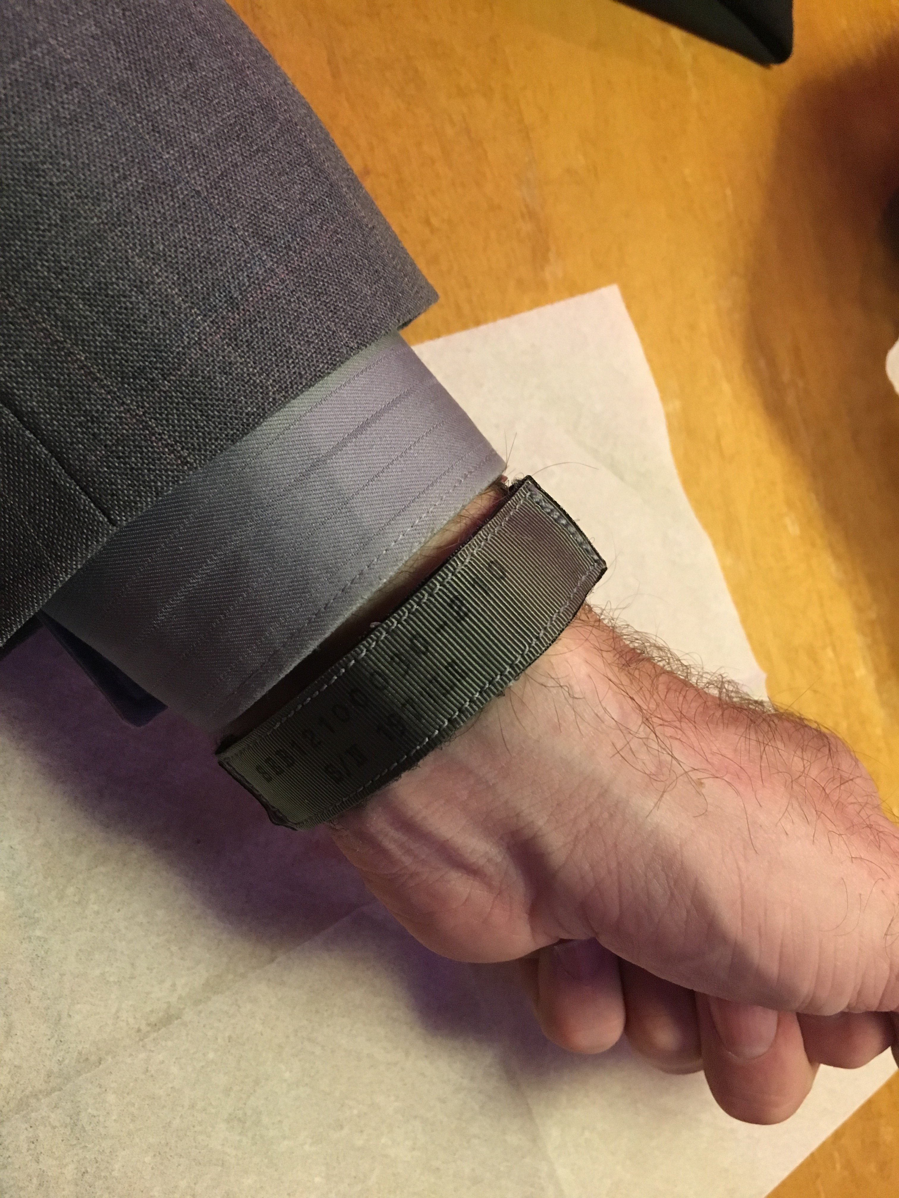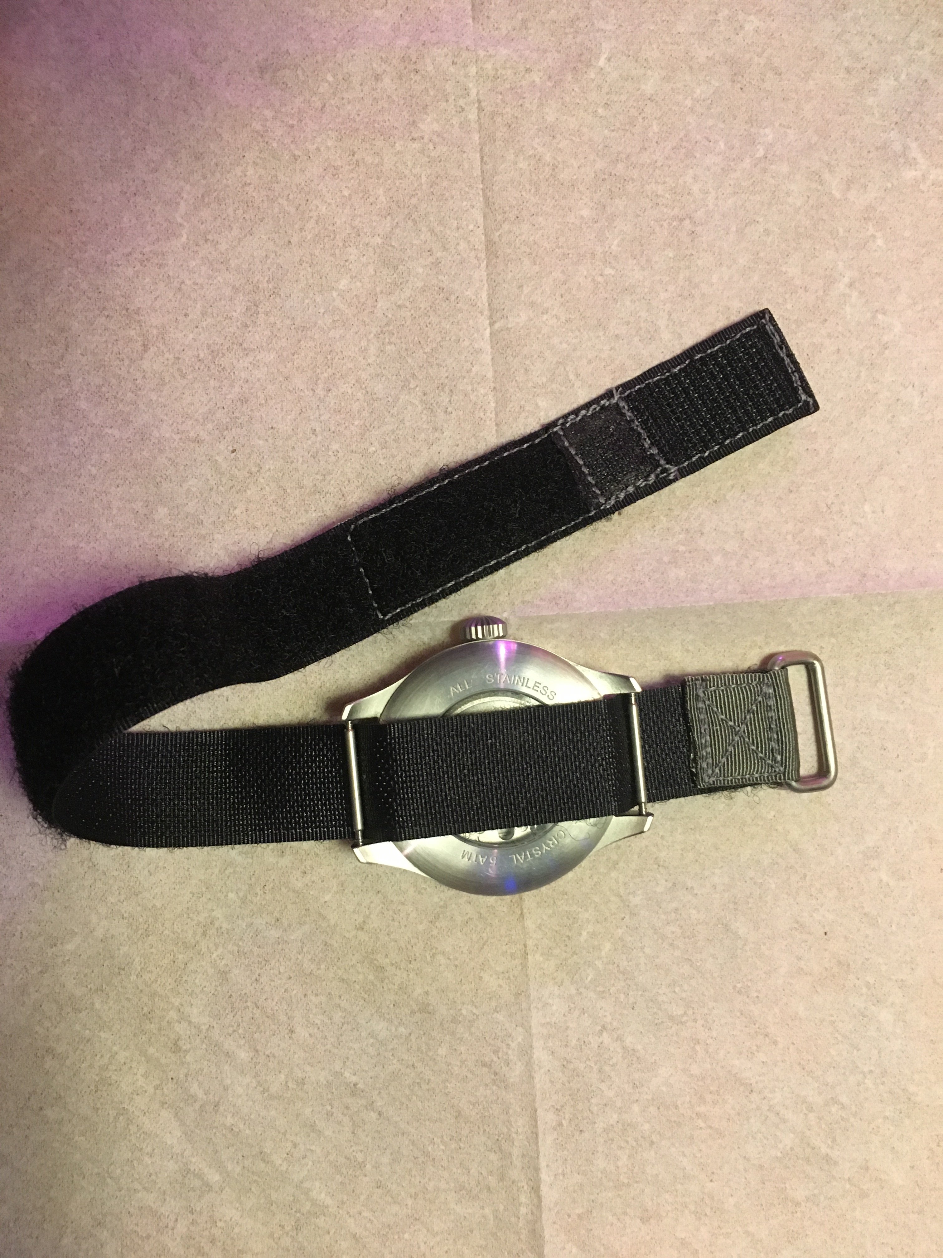 路Hate to say it but I'm not a huge fan. Like @Cenzo said the hook material could be longer but then I think it would reduce the size range of wrists it would fit. It still feels plenty secure so its fine. My gripes however would be the material that contacts the skin is super scratchy. I had to blow the dust off my speedy suitcase just to compare it to the included astronaut strap and this one is clearly more "rough" than the long one that omega includes. The grey color comes off as a light green in natural and artificial light. I thought as soon as I opened the package that I was shipped the wrong color but comparing it to the green online it's clearly the grey. Regardless, it still looks green to me and I was turned off from the green one posted basically for that reason...... I didn't want a green strap Haha. Next on the list of my complaints, the gap that is left from this not being a full 20mm (see red circles in pic) Being a replica to something nasa would use, you'd assume the first watch that comes to mind would be a speedmaster with 20mm lug width. Lastly, and maybe this is my OCD, it annoys me that the p/n-s/n arent facing me when worn. (See picture) In the example shown the wearer has his writing facing him and thats what I would have preferred. Maybe that last one is me being picky.