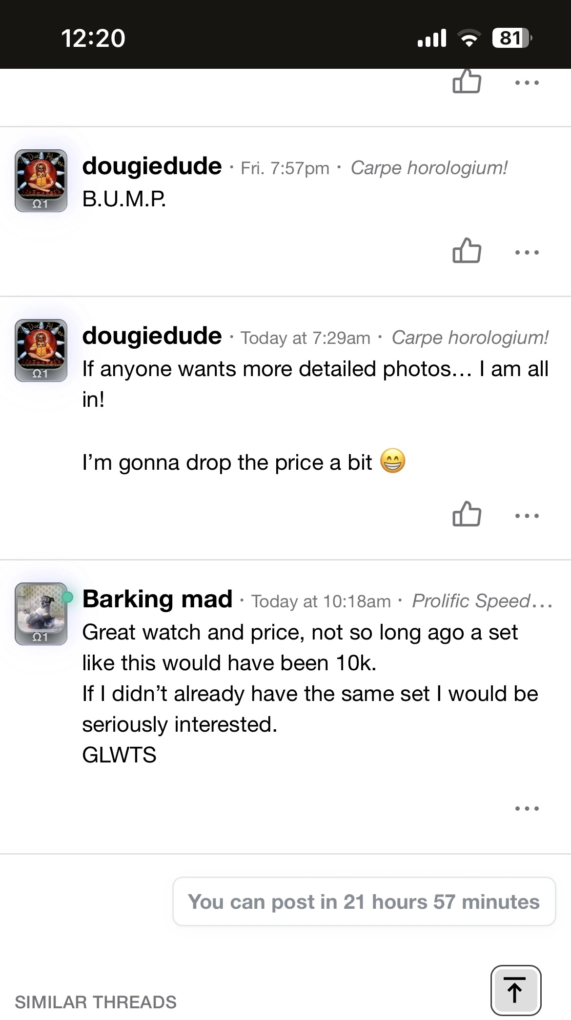 - Automatic limits for posts and bumps in Private Watch Sales forum with an indicator showing how long until a new bump/post can be made.