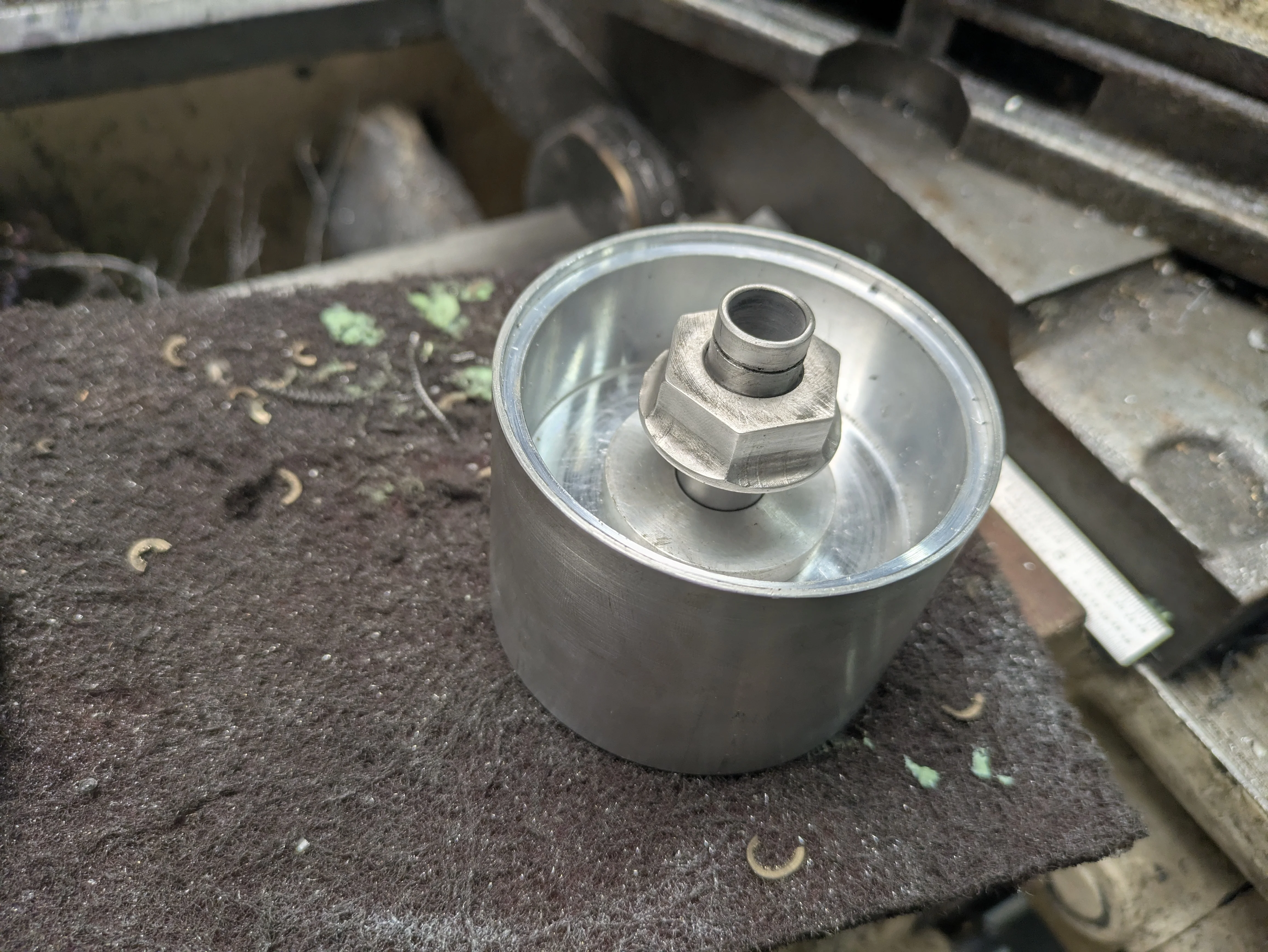 However, I'm not really getting anything like that at a reasonable frequency (my measurement was 182khz!), and shortening it didn't seem to change much. So the 'horn'/'can' isn't really working as a resonating horn, and I'm not sure why. I tried shortening it a bunch (down to ~25.75mm horn, compared to 25mm-25.5mm of the commerical ones I picked up during this), and don't really get the behavior I'm expecting.