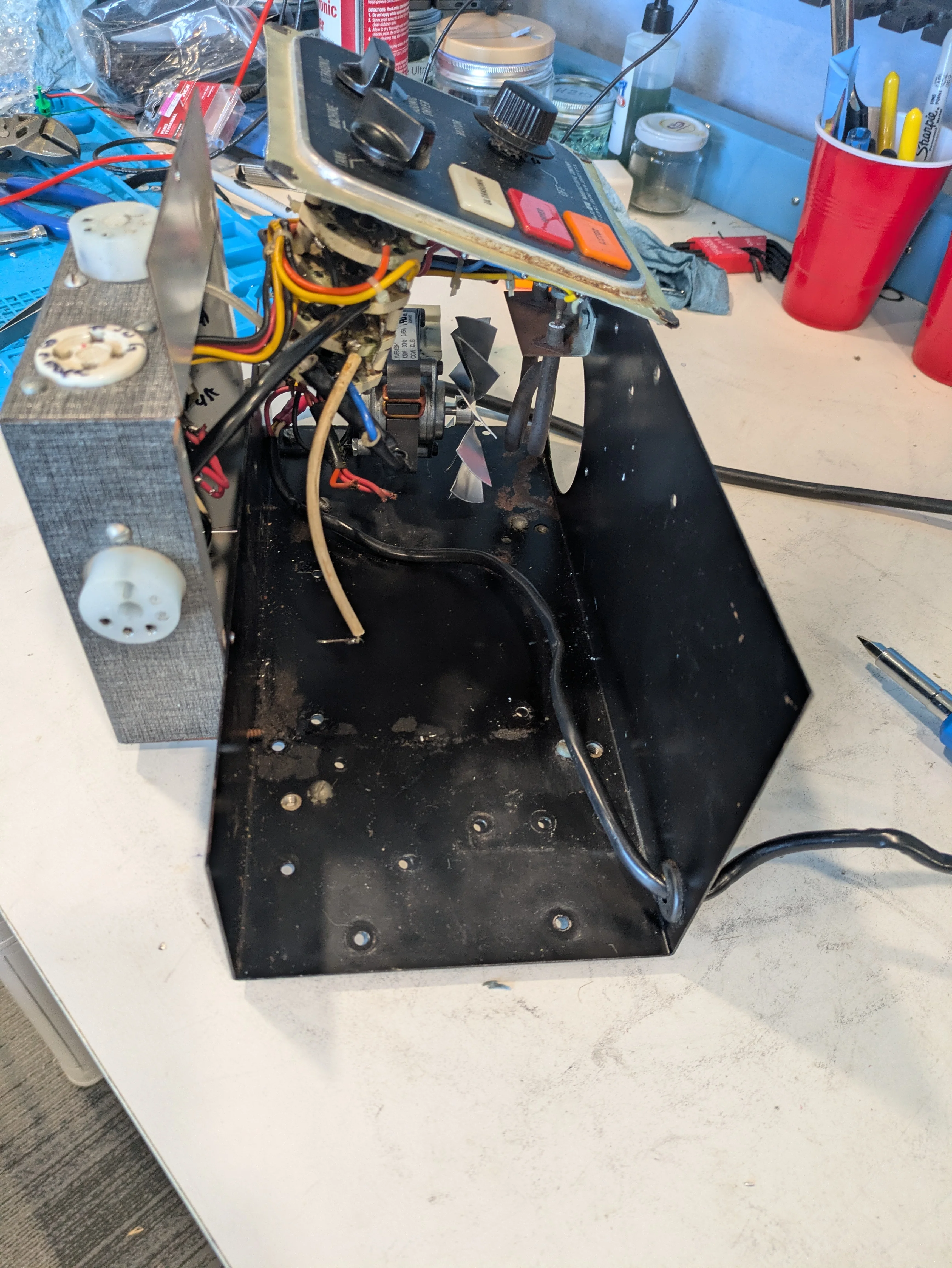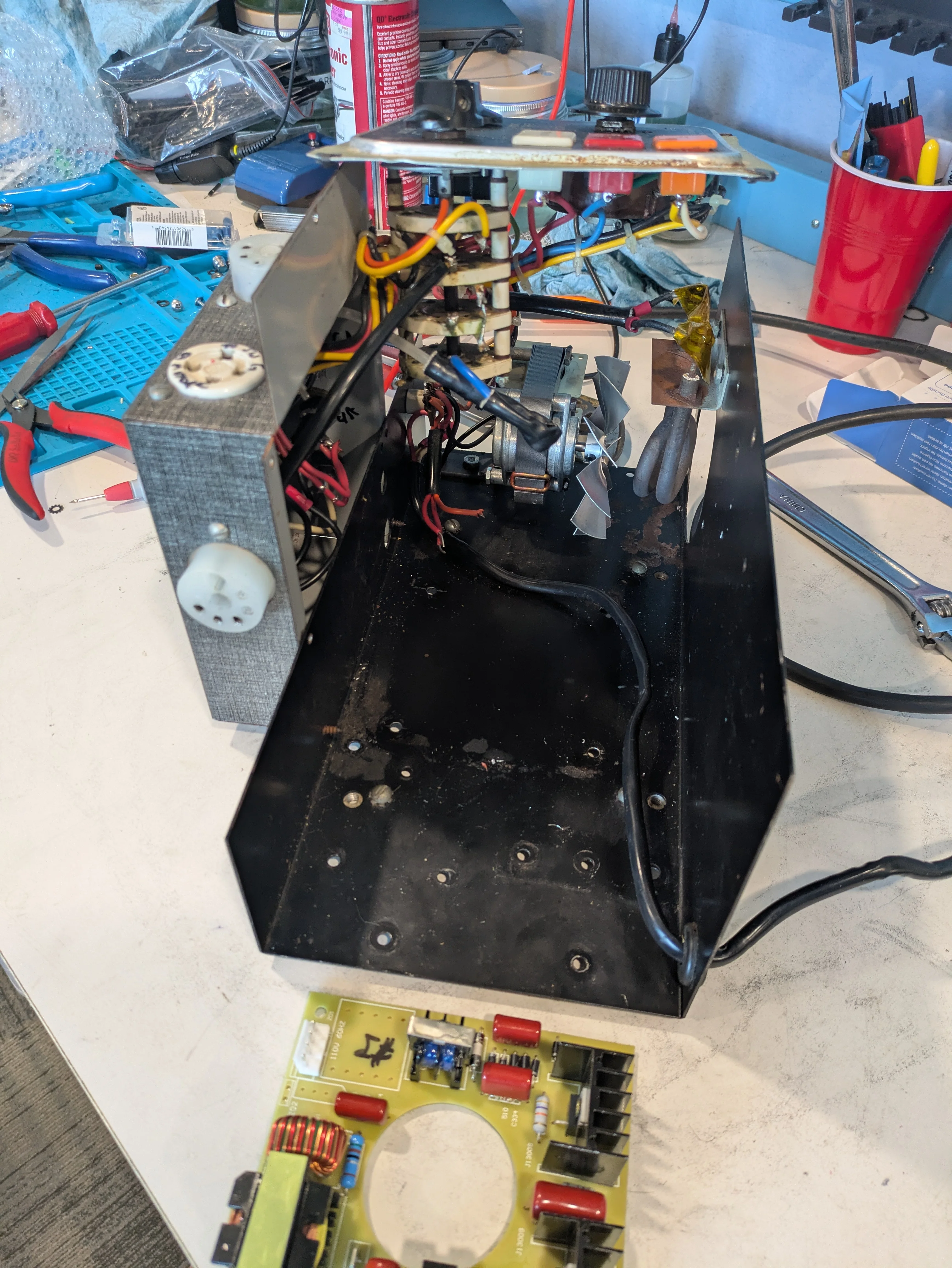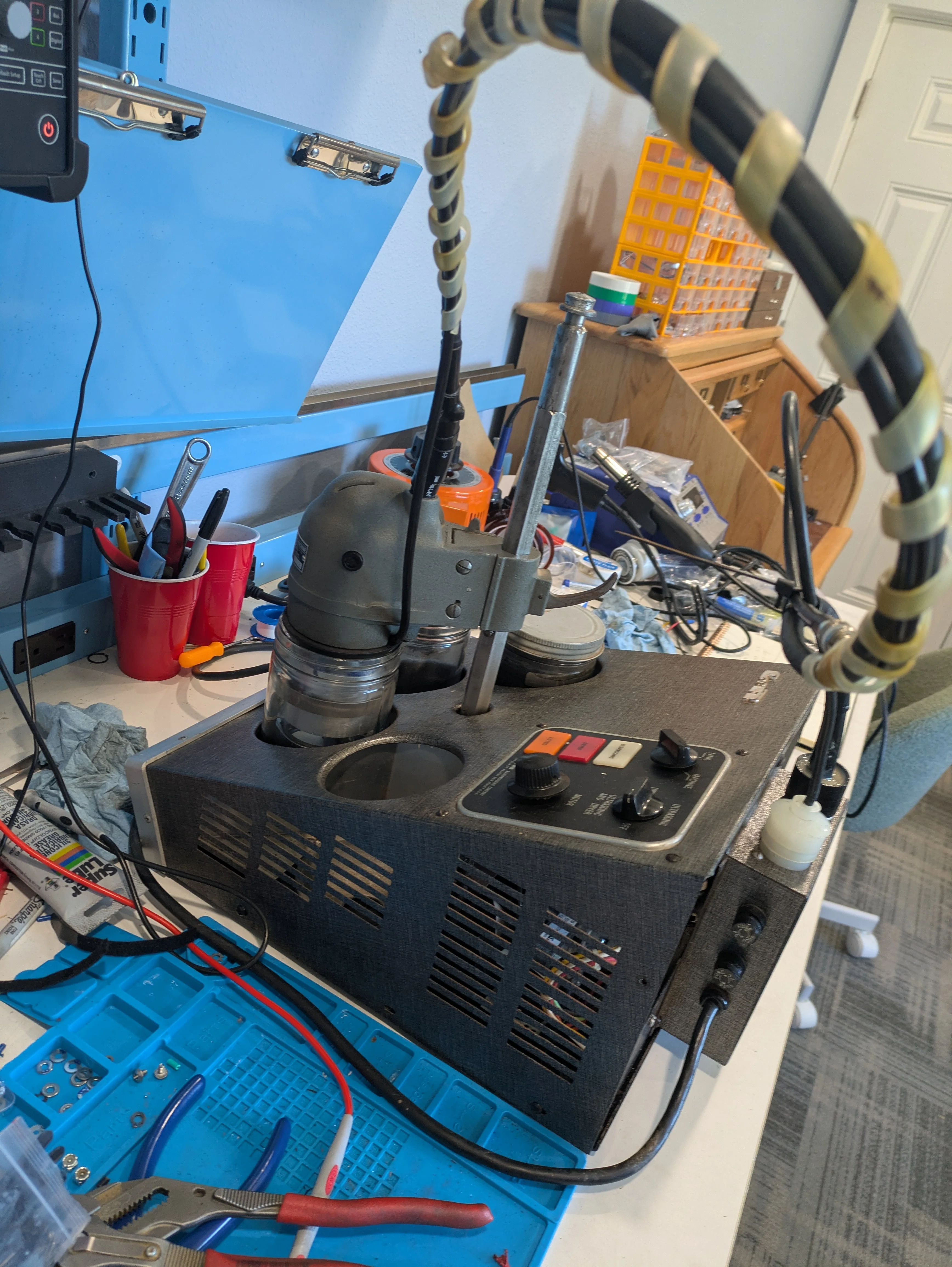 路No good pictures today, but I got the whole transducer assembled and tried to test it. What you do do is have a signal generator run a sine wave through it and a resistor, then use the oscilloscope to measure the frequency input and the current-only (via the resistor) and see when the two line up/maximize the current use, which should be your point of resonation.