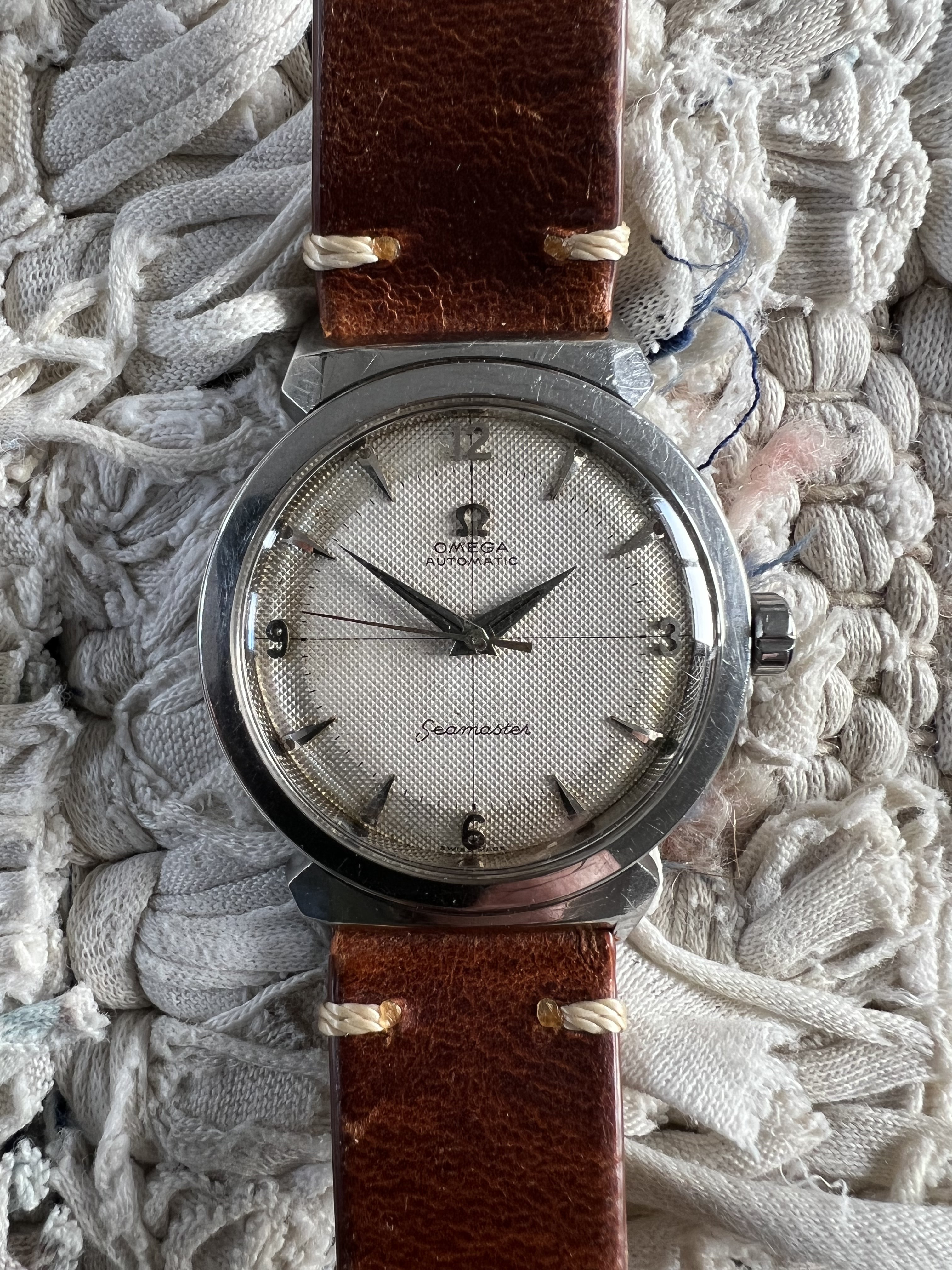 ·I just picked this up from the original owners son. The watch was purchased in 1956 by his mother to her husband as a wedding gift. It was passed on to the son who sold it to me. He said the watch was serviced by Shane Ede in recent past. I’m going to be looking for a new strap which should be fun. I’ve included photos. Hopefully I can get honest opinions on this piece. Also, how much are these going for nowadays with the waffle crosshair dial? Thanks