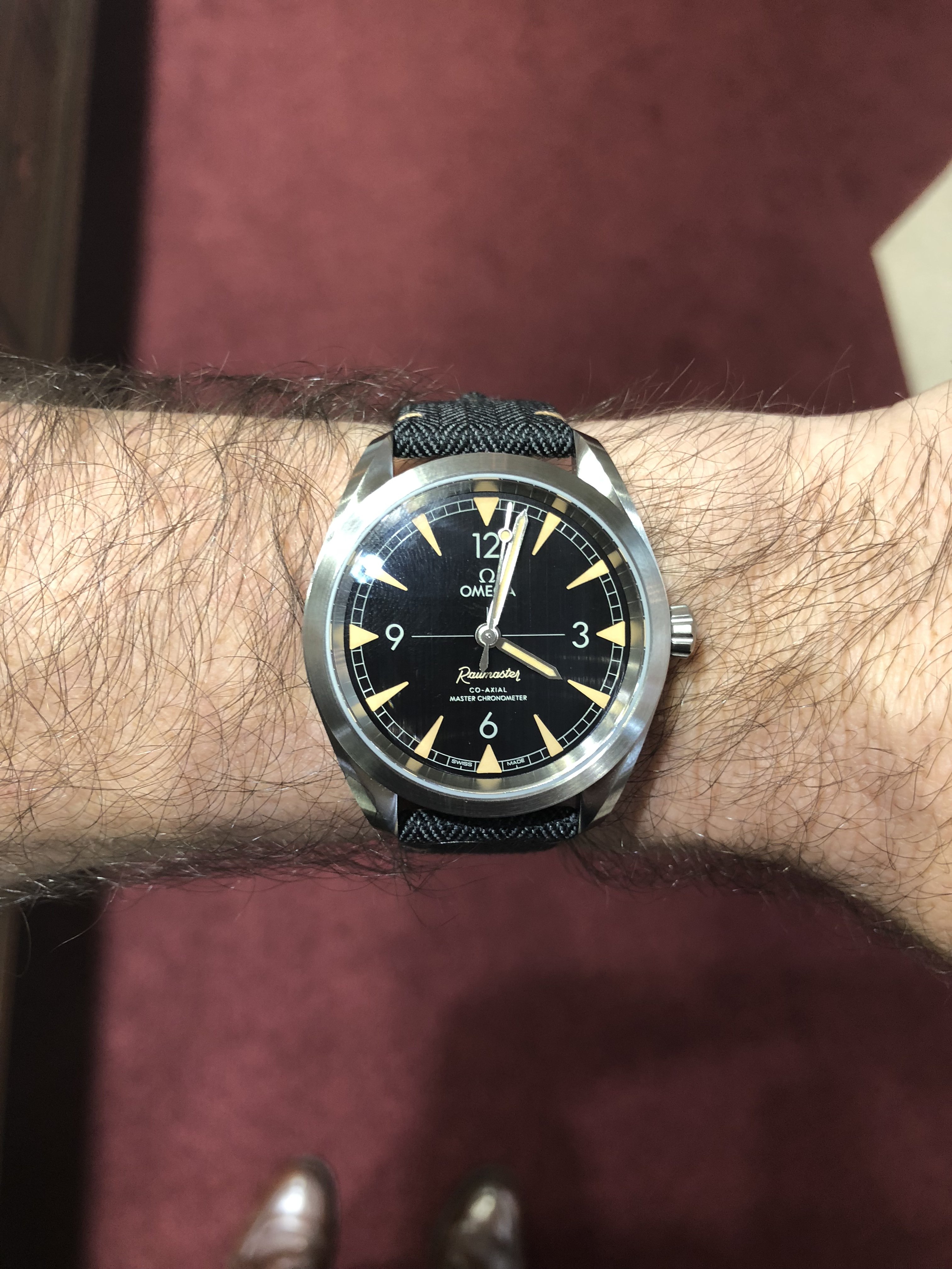 Was at the boutique earlier today, dropping off my bracelet to be polished up. Saw the railmaster case, with a giant poster of the Crawford boy next to it.