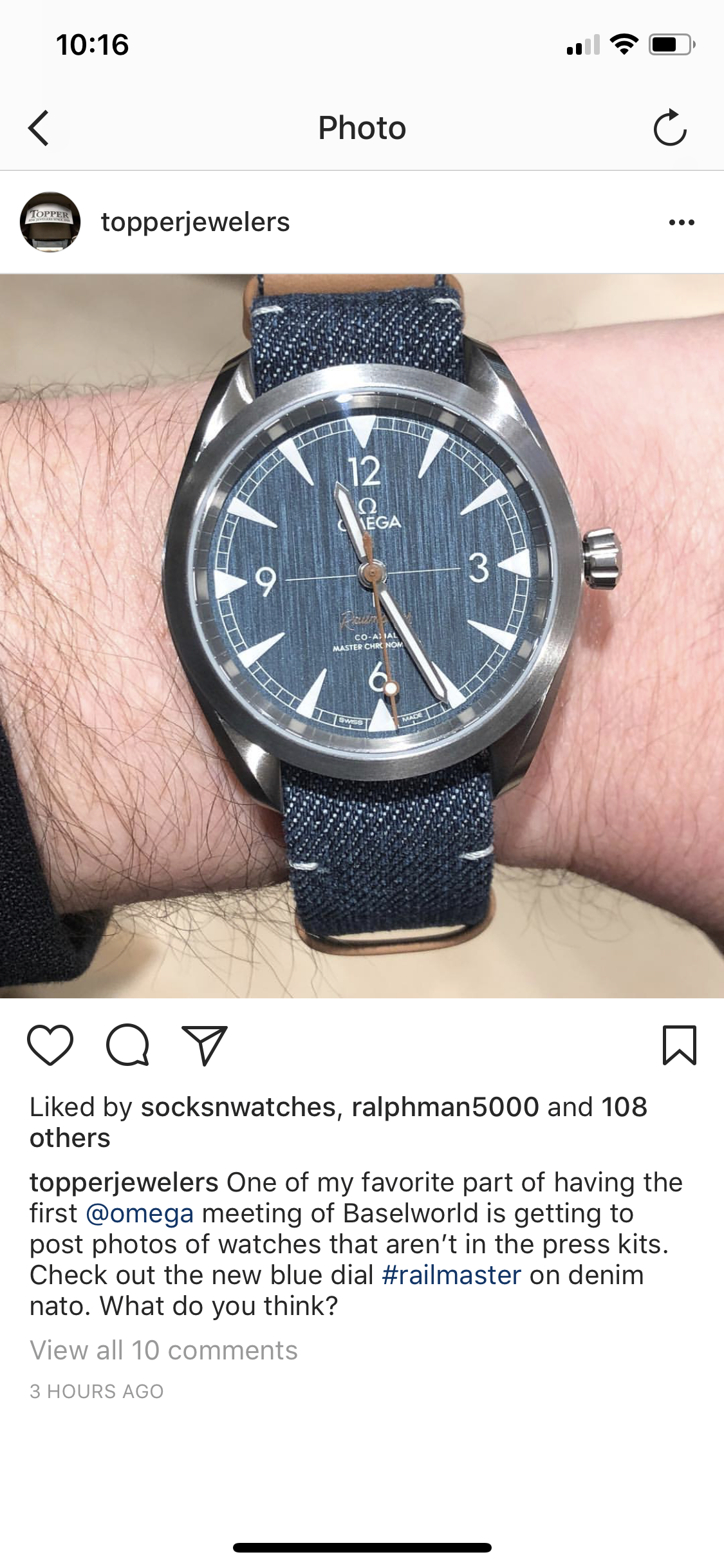 More pictures of the Blue Dial variant from Timeless Luxury, including a rendering with the steel bracelet option. I think a good option would be to get it with the steel bracelet and then buy a leather tan strap (aftermarket or Omega OEM).