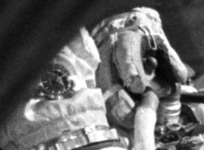 Astronauts Story Musgrave and Donald Peterson performed the first space shuttle era EVA (spacewalk) aboard Challenger during the STS-6 mission. Omega Speedmasters were attached to the sewn-in pockets in the outer garment layer of their right hand gloves, covered by a Velcro flap. This was in marked contrast to Russian cosmonauts who continued to strap their Speedmaster chronographs directly to the forearms of their Orlan space suits.