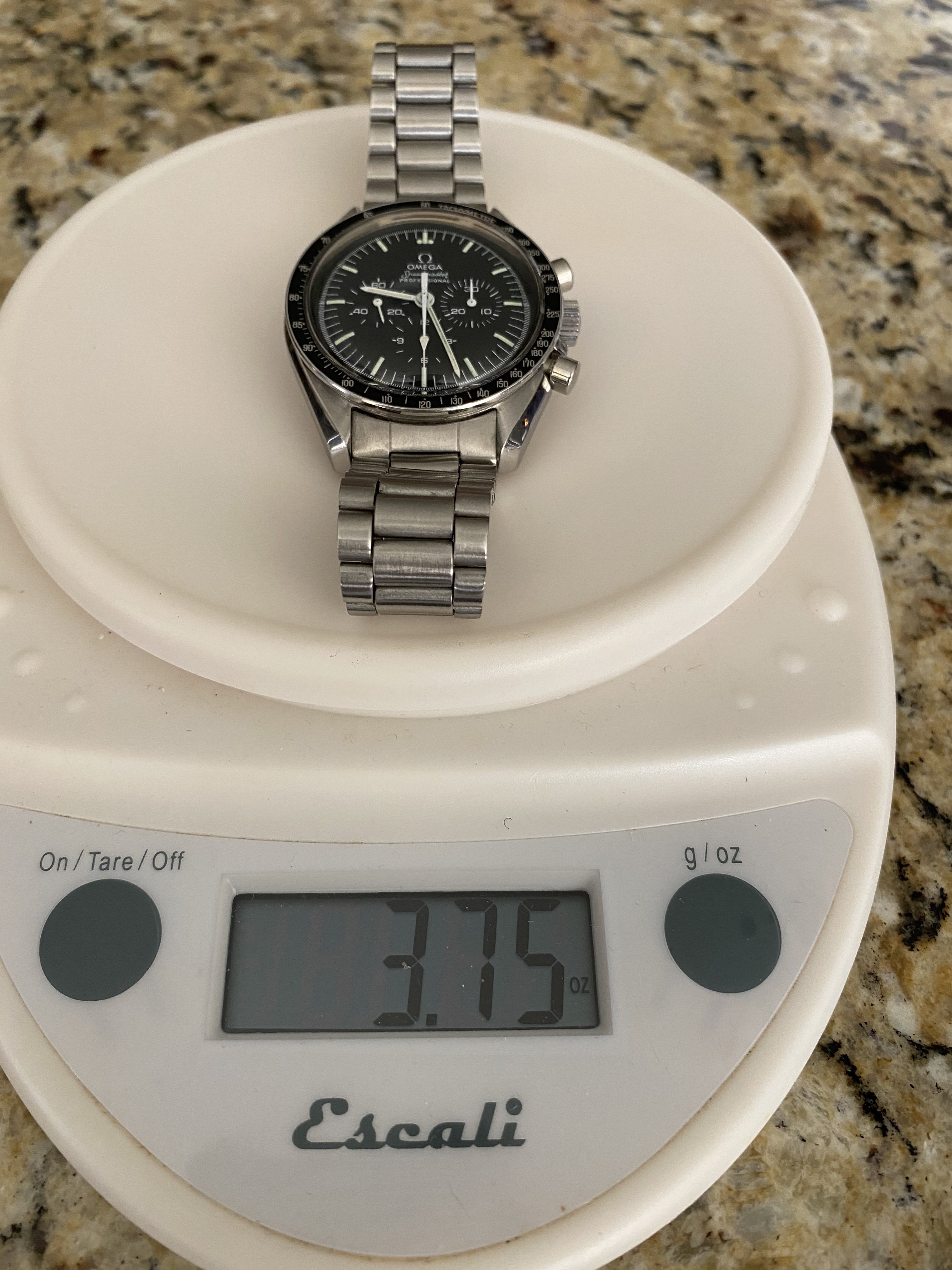 It comes with strap only so not much of an issue... I saw this detailed video and they say that it doesn't weight that much, nothing like a gold watch anyway