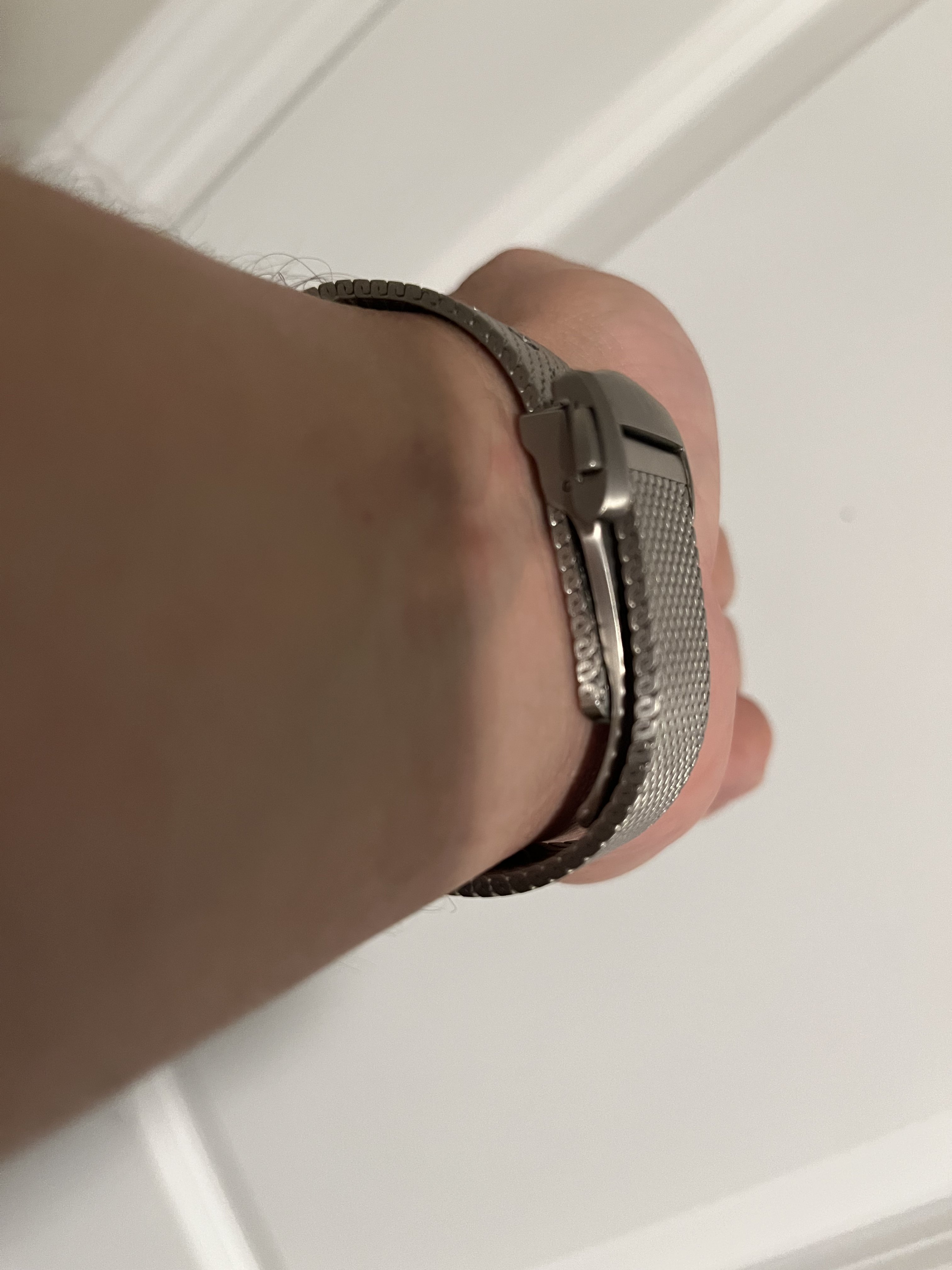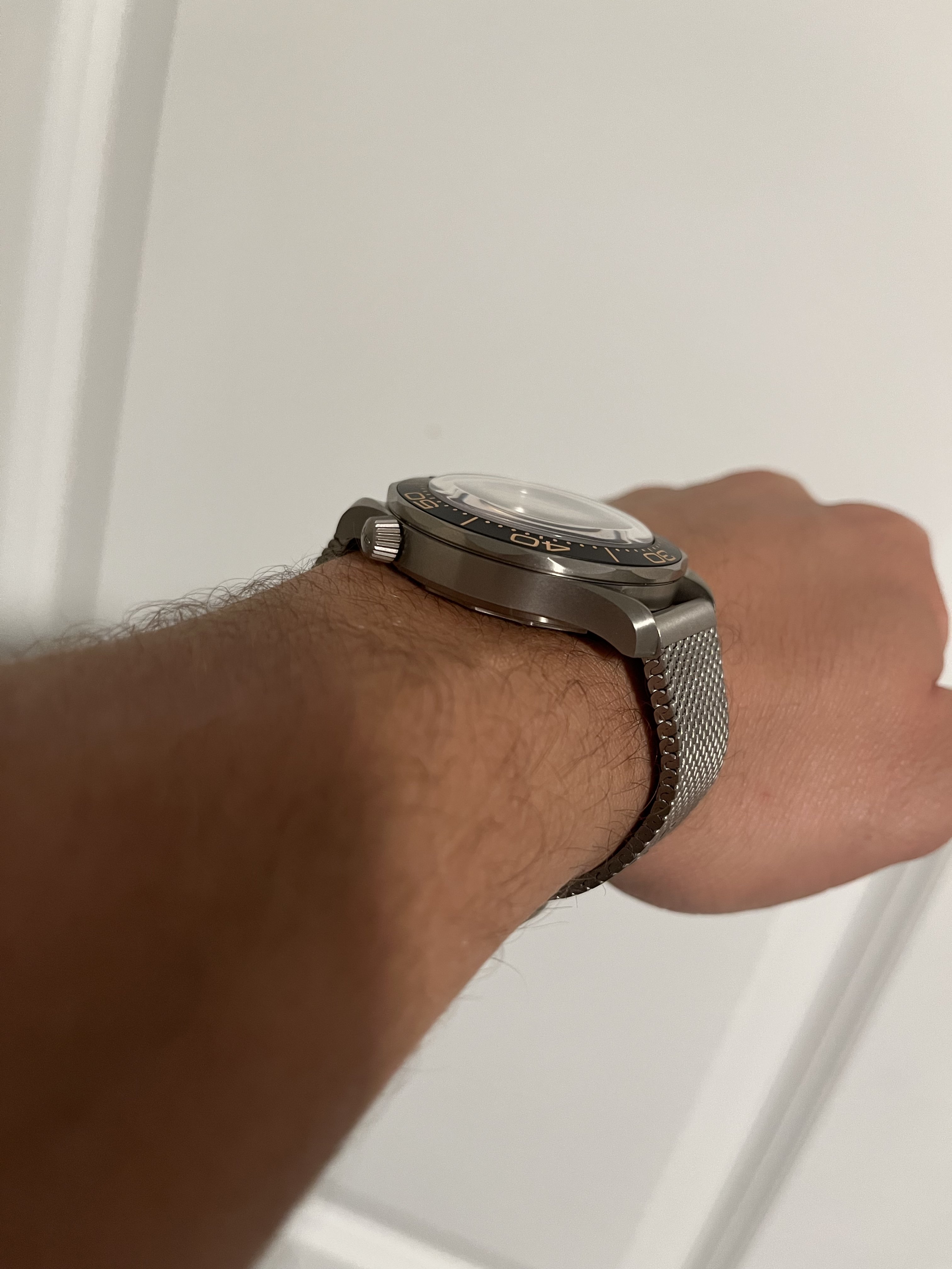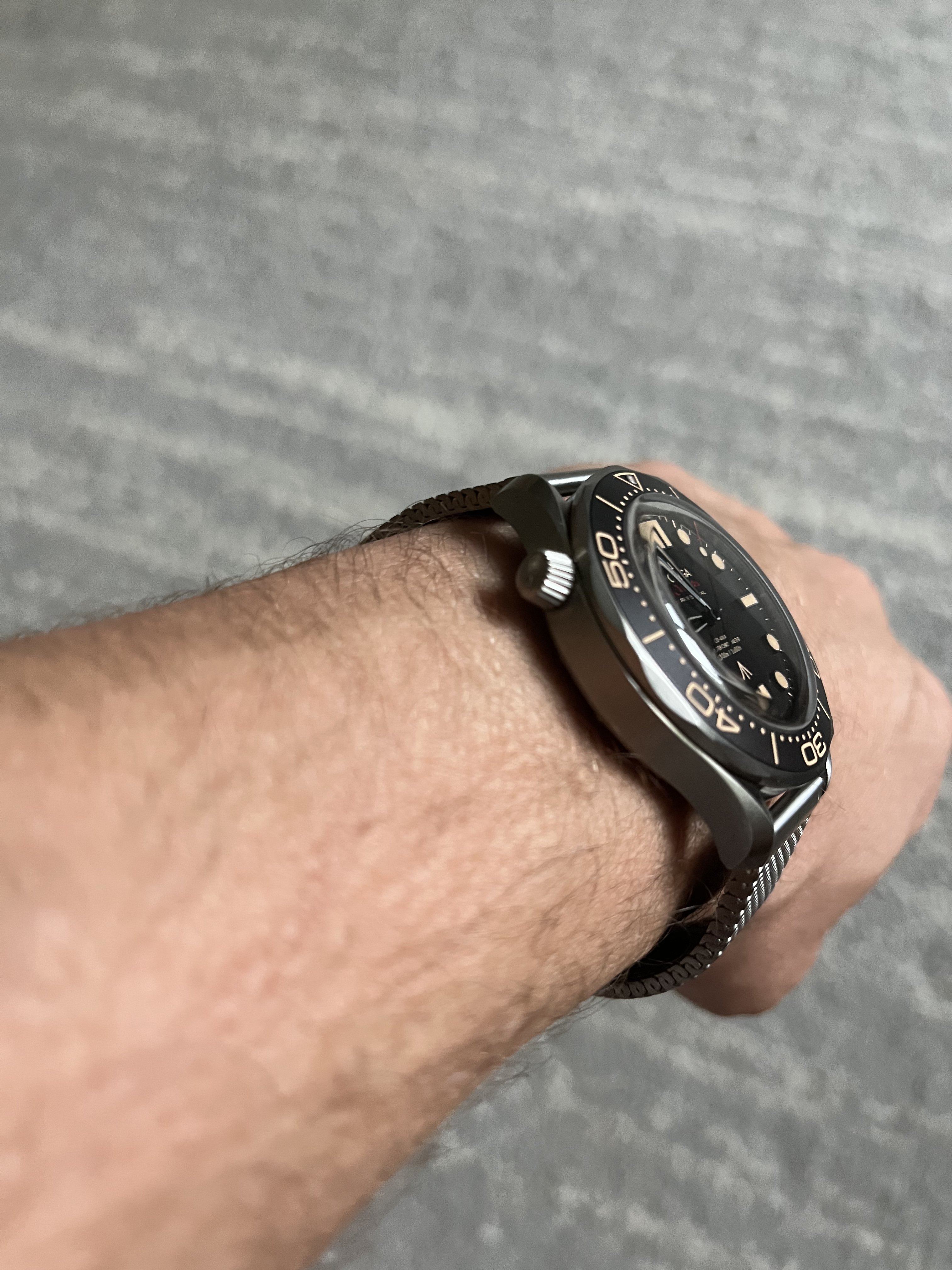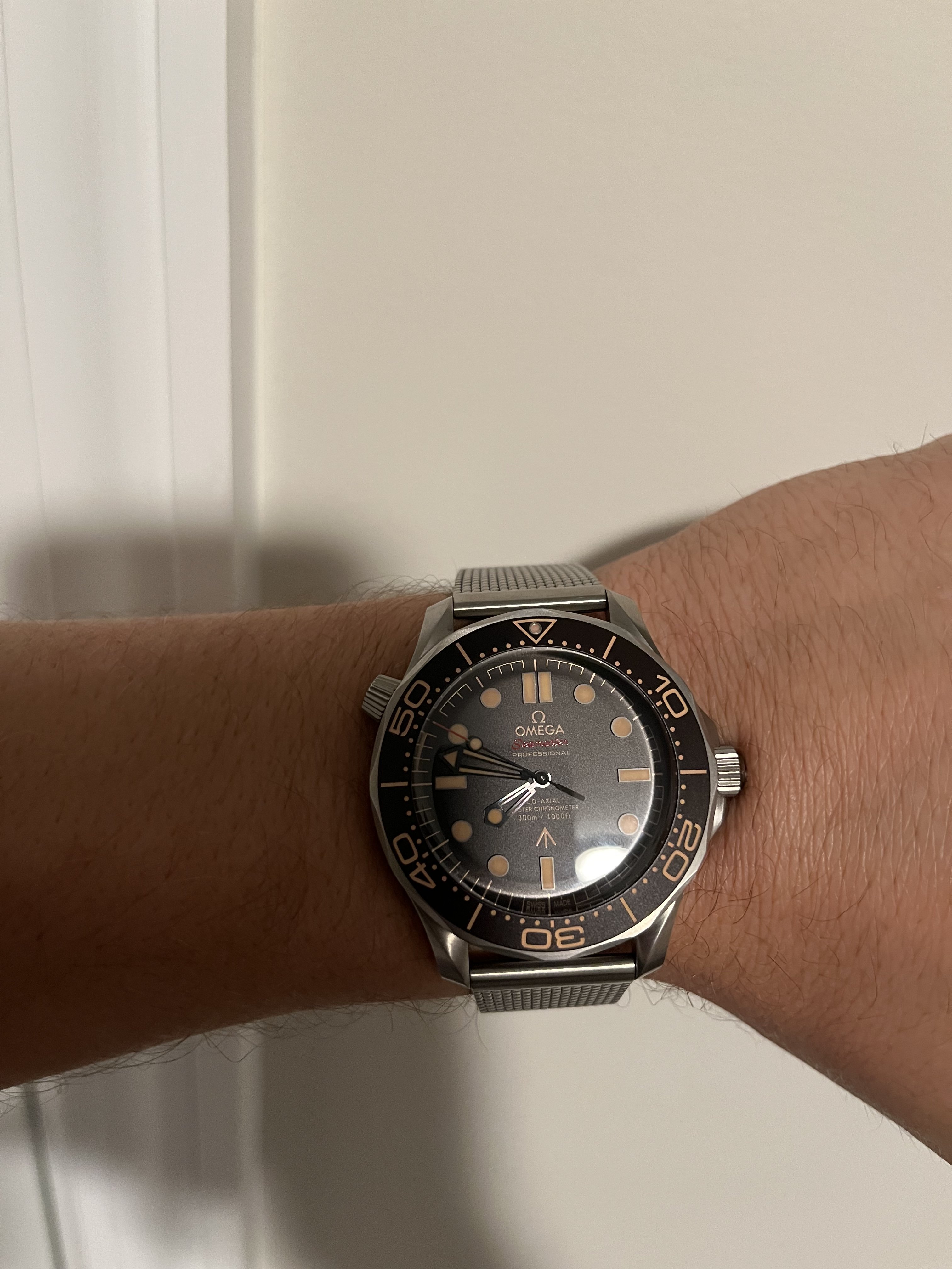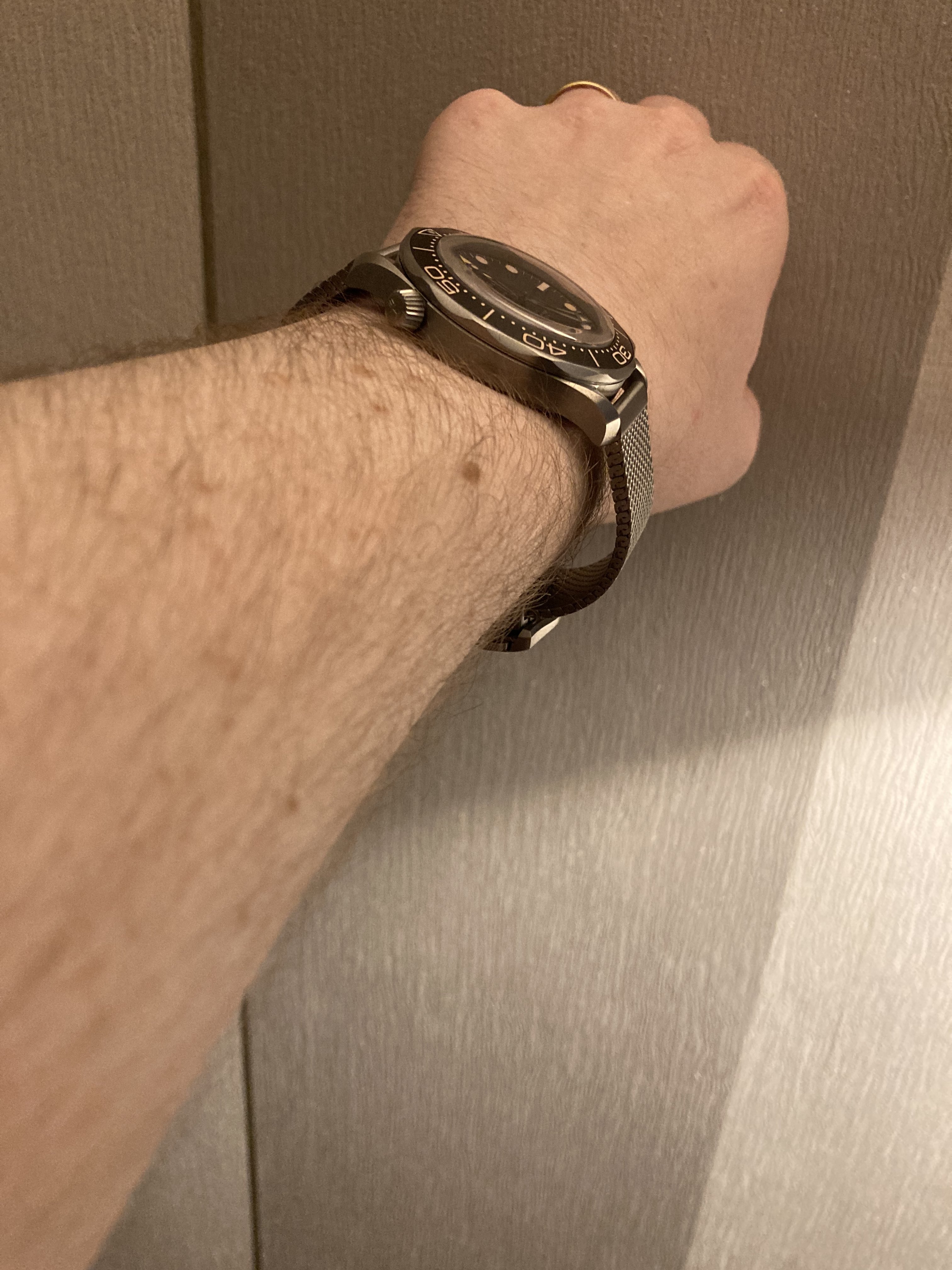 Anyway, during Christmas 2021 I got COVID really bad and lost a fair bit of weight. Although I purchased the 007 Edition in February 2022, my authorised dealer kept it to one side for me until the NTTD NATO strap came back in stock, which I purchased at the same time. Finally received my watch in June 2022 and to my disappointment the normal sized milanese bracelet had become far too big for my wrist. This image was taken on the first hole…