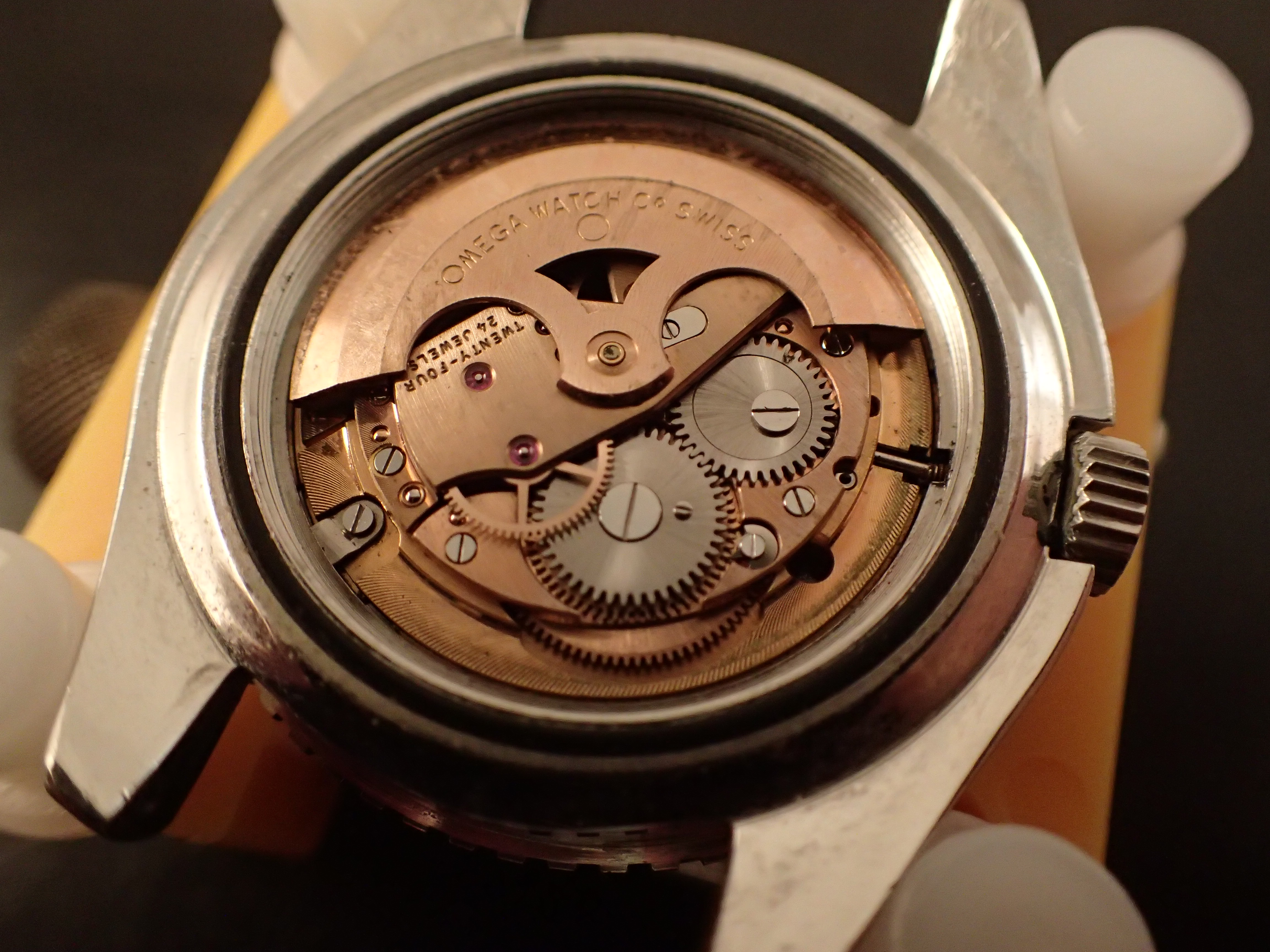 One question for an expert: Should the crystal have the microscopic Ω in the center? Mine does not, which presumably means it is a replacement. Everything else looks really great, and quite original.