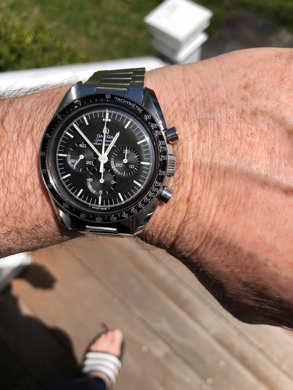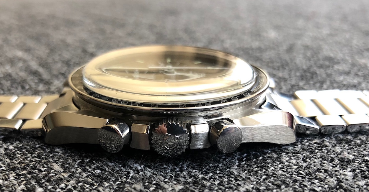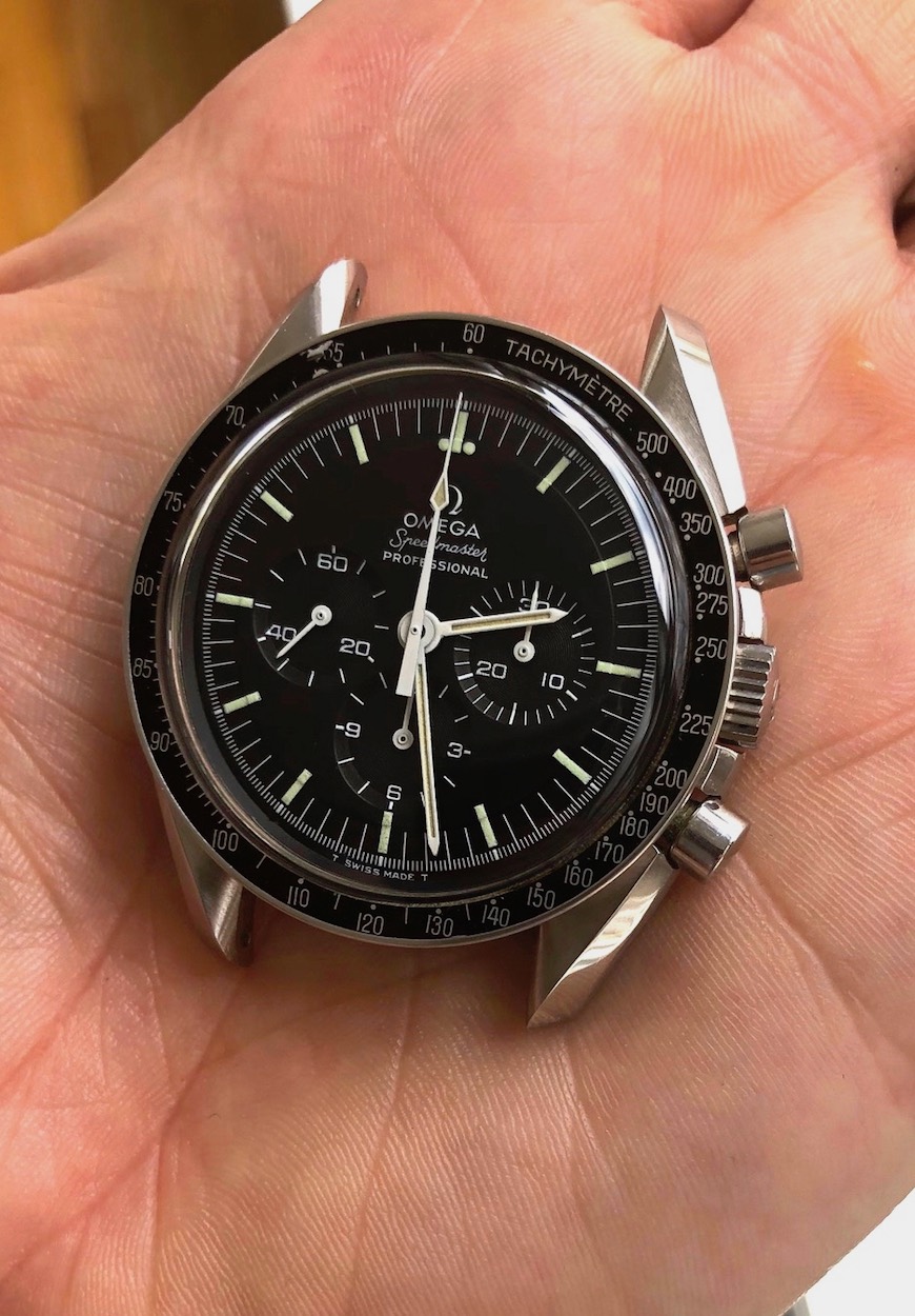 ·Sharing my “new” Speedy 145.022-69, which I believe is 100 percent original and virtually untouched. (Happy to be corrected if there are other opinions.) Never been serviced nor polished, and still has the red dot on the case back. The gasket was a gooey mess, and it’ll be going off for a movement service, although everything is working perfectly and it’s keeping great time. Fully linked 1039/516 bracelet with zero stretch. Original Omega crystal (type A2), but I’ll change it for safety and keep the original. Only wart is slight flaking of the black paint on the DON bezel near the “65.”