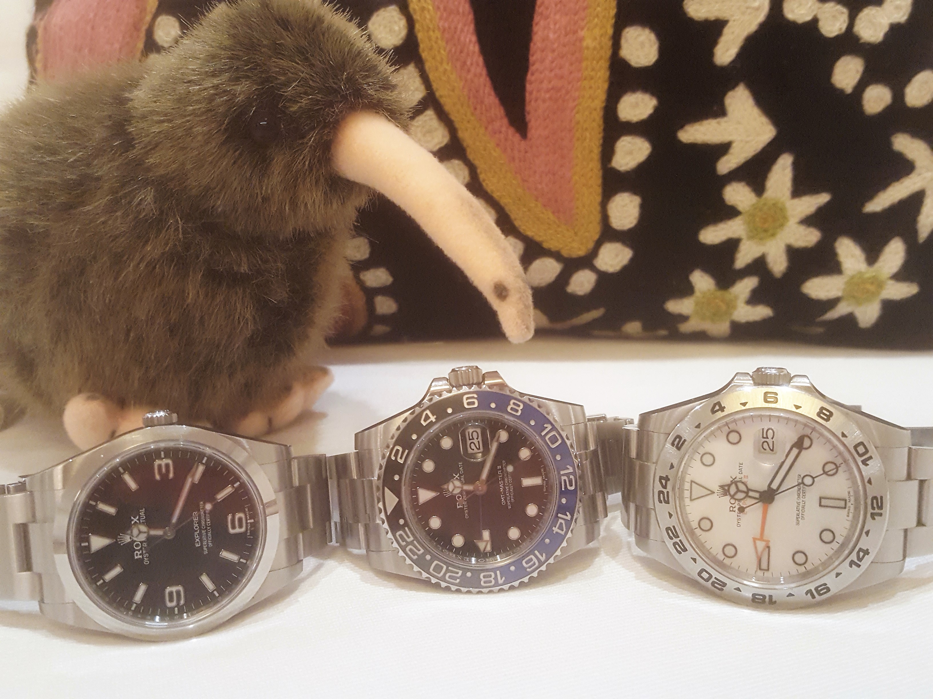 😲, I certainly don't think the rather slim Kiwi below can pull off my trio of Rollies, and if you look at the three watches together I personally see little visual difference between the modern Explorer and the BLNR dials, but on the wrist the BLNR certainly feels more substantial.