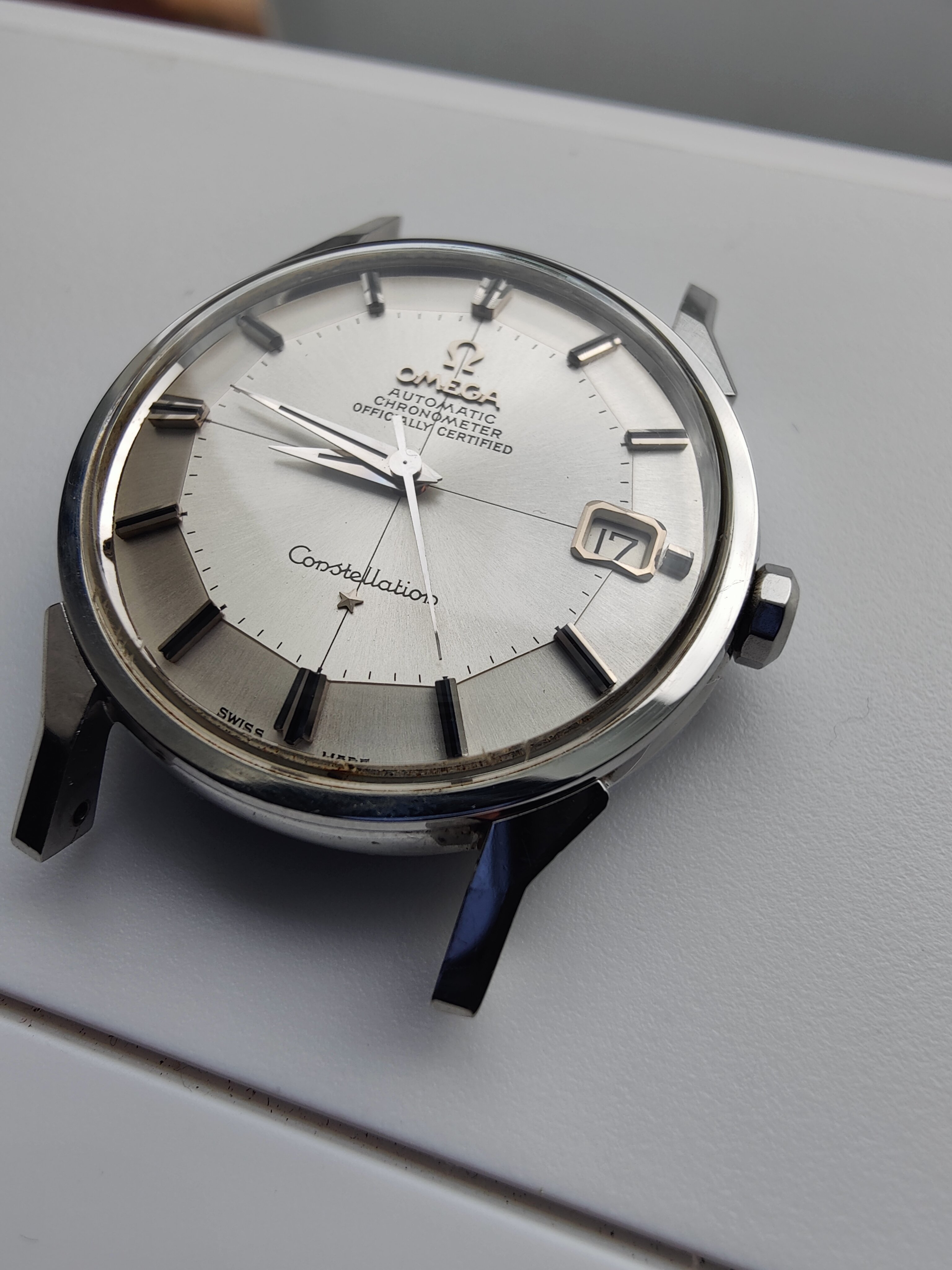 路I want to share a new acquisition that arrived by FedEx this afternoon. I've been searching for a nice stainless steel example for a while. I have a nice dome dial Constellation and a 14k gold 168.005 already so this will round out the collection nicely. This popped up on eBay last week. Bought it for $1,650 plus shipping and tax ($1,865 total).