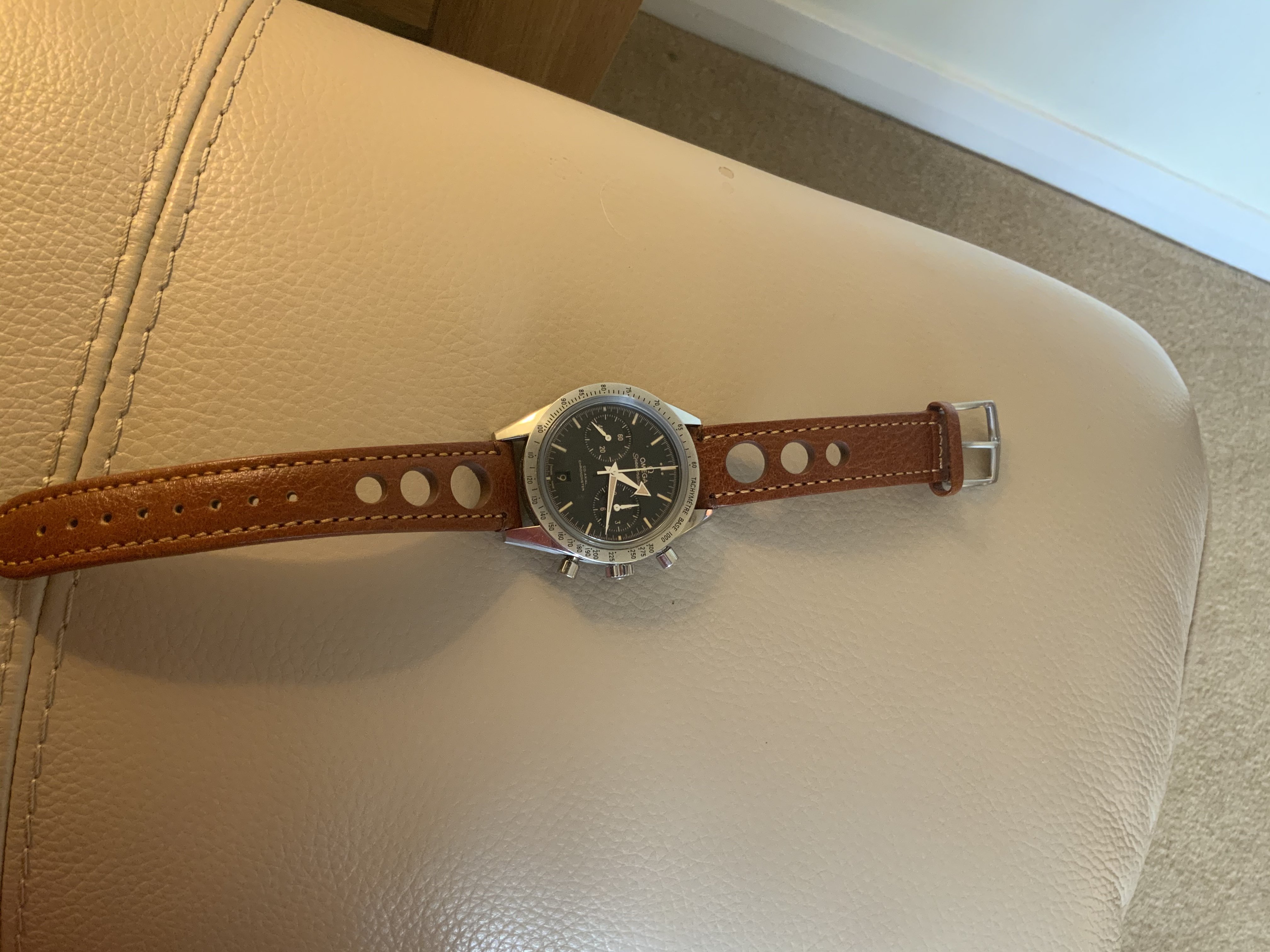 Posts 252 Likes 749 Steve Essex ·Jul 9, 2020 Arrived today, a Hirsch golden brown rally strap for my Speedmaster ‘57. I think it suits it very well. 😀