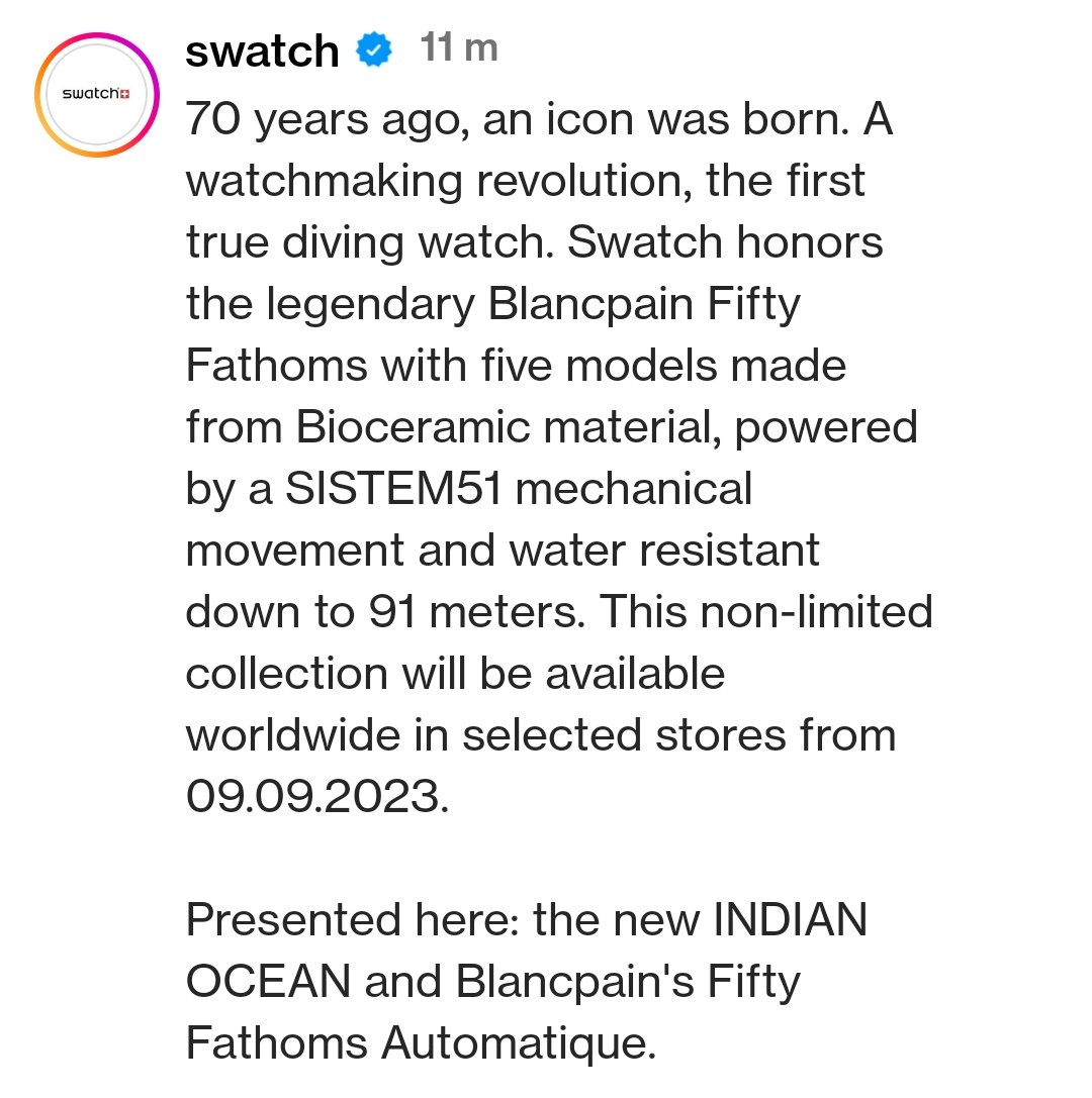 ·If I was a betting man, my money would be on them releasing a Swatch Bathyscaphe version. It would be the easiest version to orchestrate...