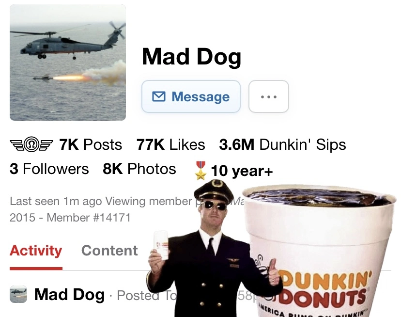 Posts 6,570 Likes 77,969 Mad Dog ·May 19, 2025 That Dunkin’ pop-up really surprised me…saw it pop up from the bottom when I checked the member profile…and for the record, that pop-up was originally taken at BOS [Boston Logan].