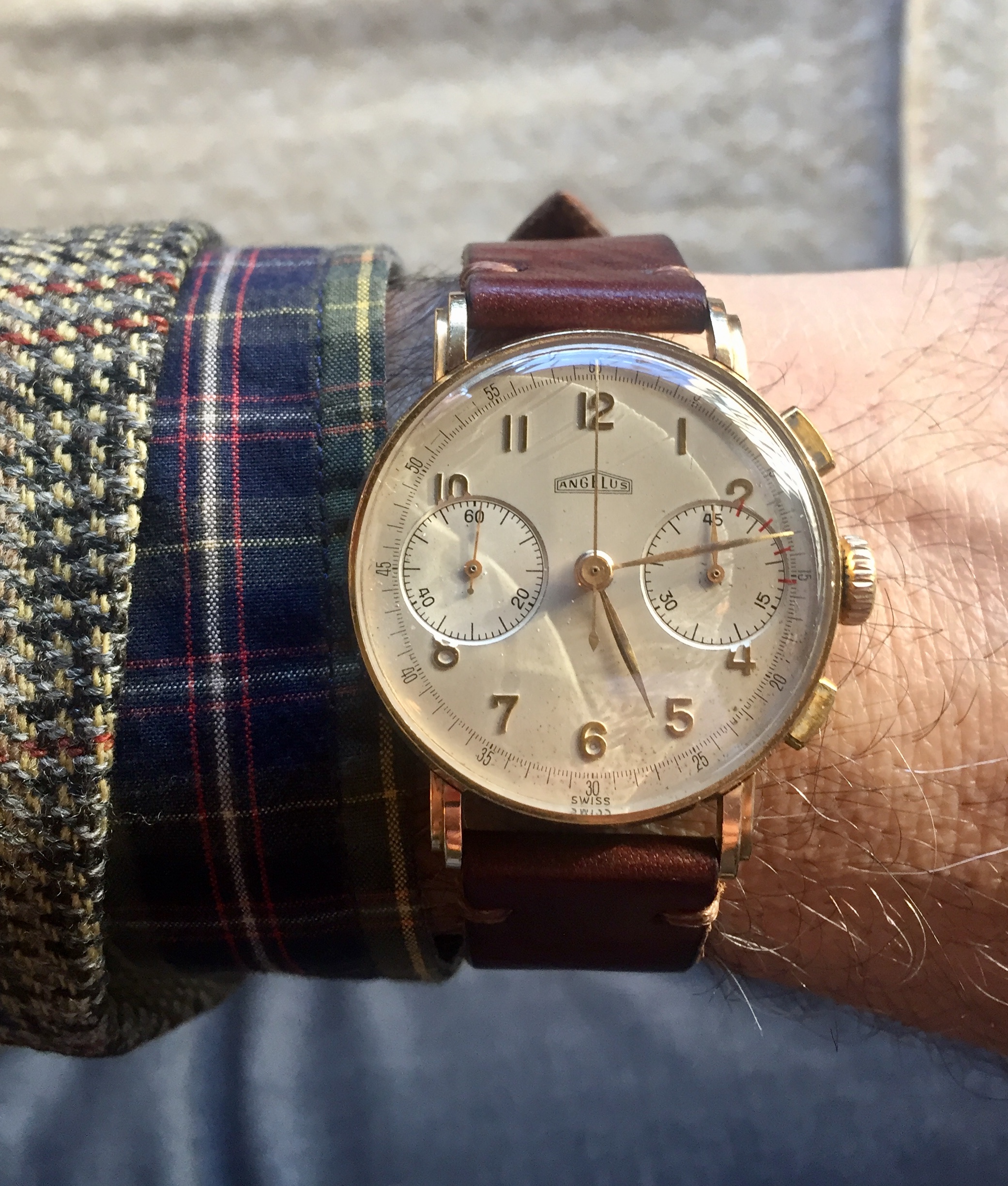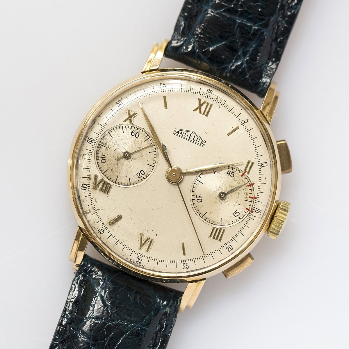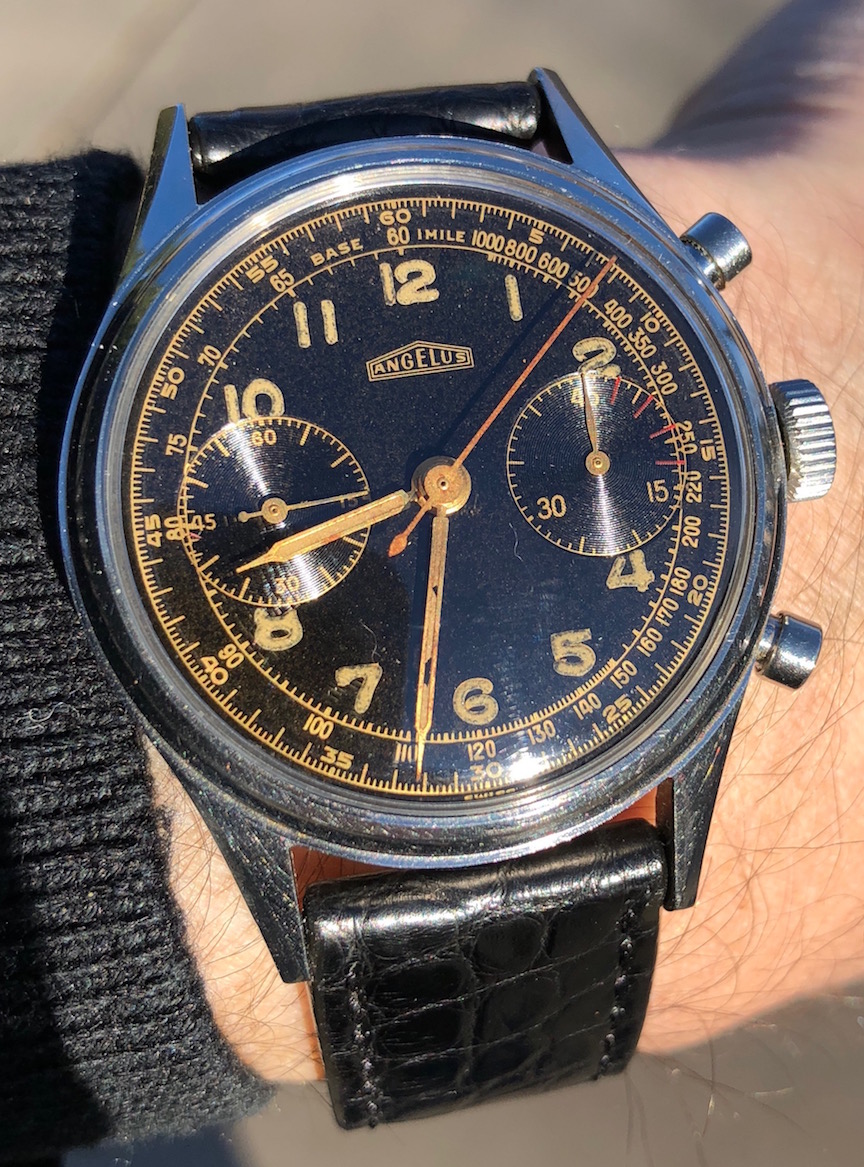 ·It's a nice piece, but I'm not entirely convinced that the red lines are original. Such marks are common in general, but the way they are drawn is not convincing to me. They aren't centered on the actual minute markers, and they spill out of the sub-dial in an sloppy way, even onto the applied metal marker.