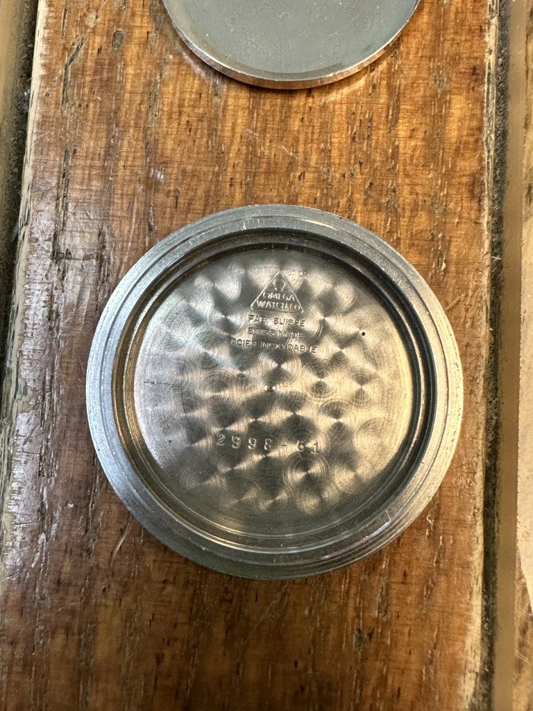 The chrono hand is lacking the bent-down tip which could suggest it is a later service part rather than original period OEM.