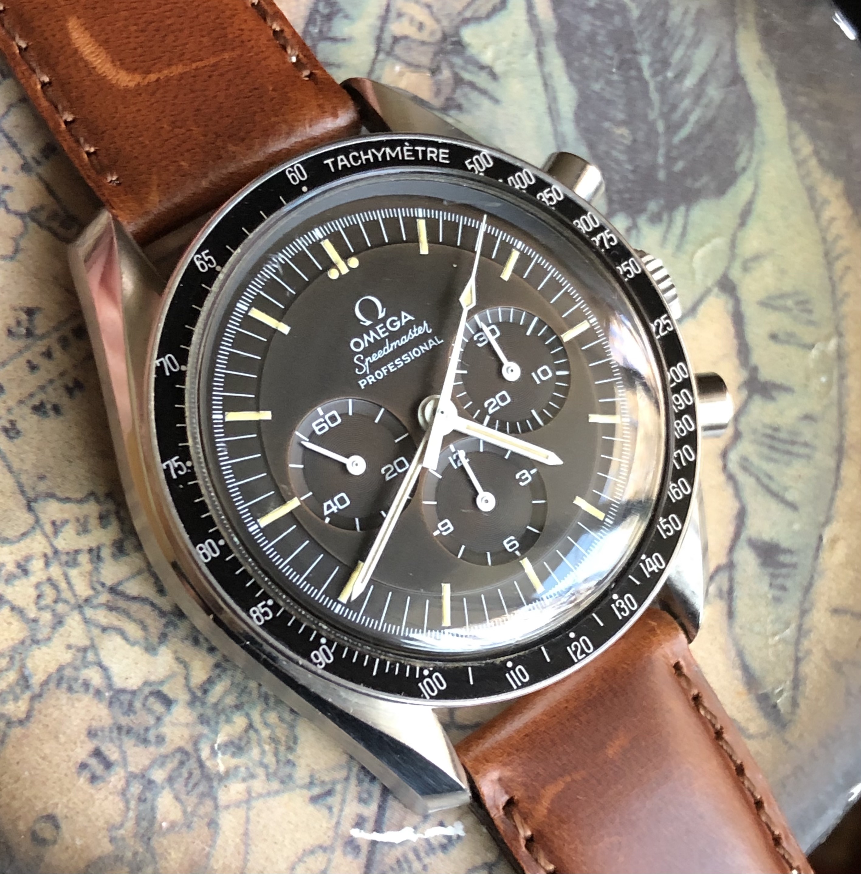 路This is a new arrival that I picked up at auction over the weekend. Not sure if this is new to OF or perhaps previously owned by another member. Happily, the dial has an attractive and noticeably brown color in person even in normal lighting, and it is dramatically brown outdoors. I was pleased to see this, as it's very hard for me to judge from photos how these brown dials will appear in hand. The movement is in the 2911xxxx brown-dial batch. I'm finding it quite appealing overall, which is a relief, since I had to bid against two other serious bidders based on pictures that weren't the greatest. 馃