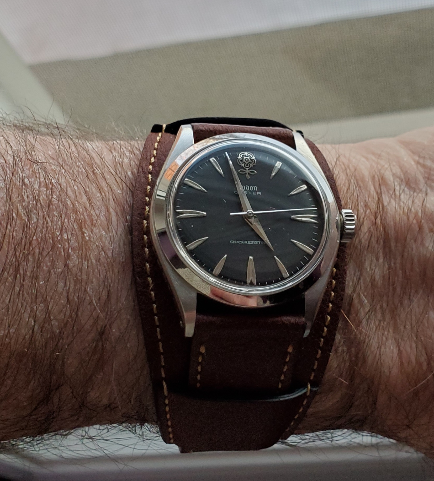 Now yer talkin! A nice riveted oyster would really complete that watch. They are plentiful online and perhaps post a WTB here in this site as so far every time I post a needed bracelet on this marketplace I have found one π