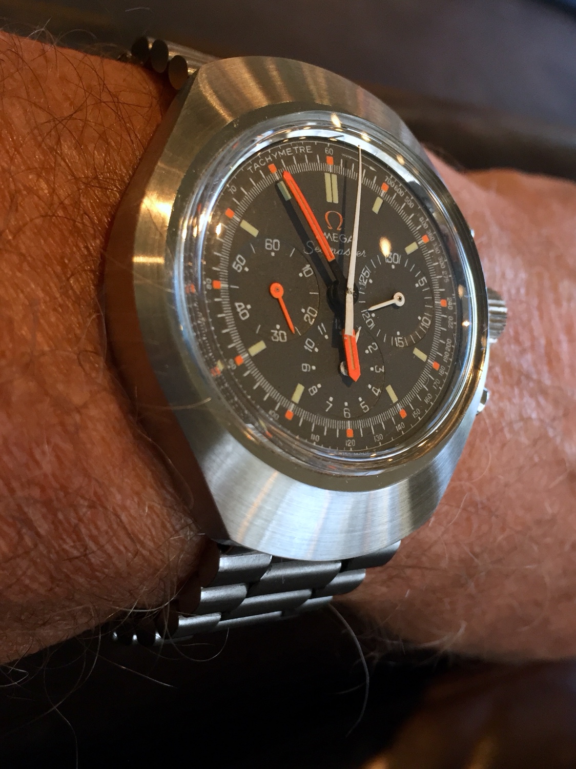 One pleasant surprise was the thickness of the piece - my Speedmaster MkII and MkIV, and Mk4.5 are all considerably thicker. This wears rather well.