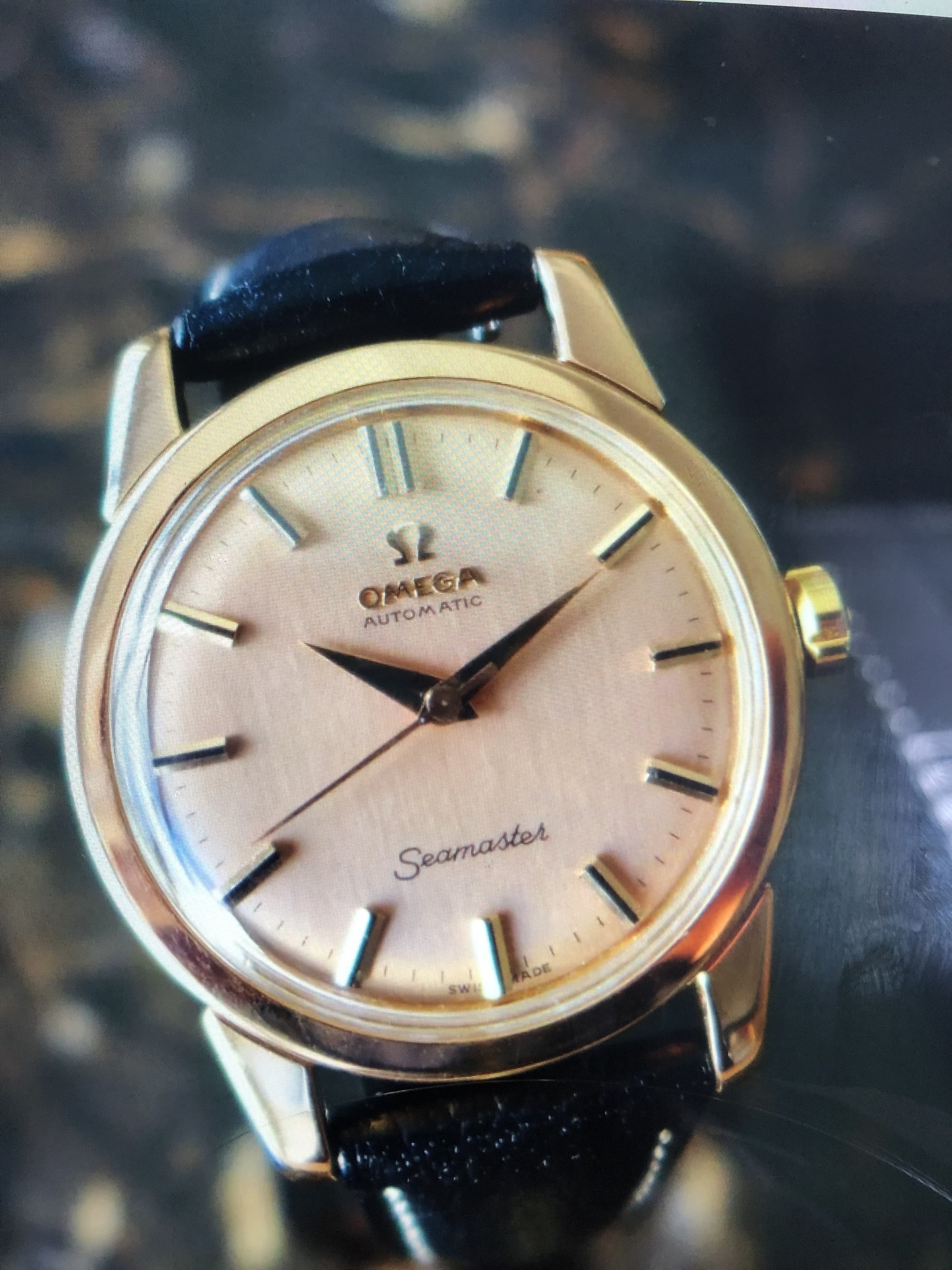 It’s a 1956 seamaster in 18k pink gold think that’s what they call it .don’t really no much about the watch to be honest the only thing I was wondering is the crown a replacement as it is not the same pink gold as the case it is a normal gold colour it is marked with the omega logo. Well leave it at that for now thank you here are some pictures .any info on it would be great or what you think of it .