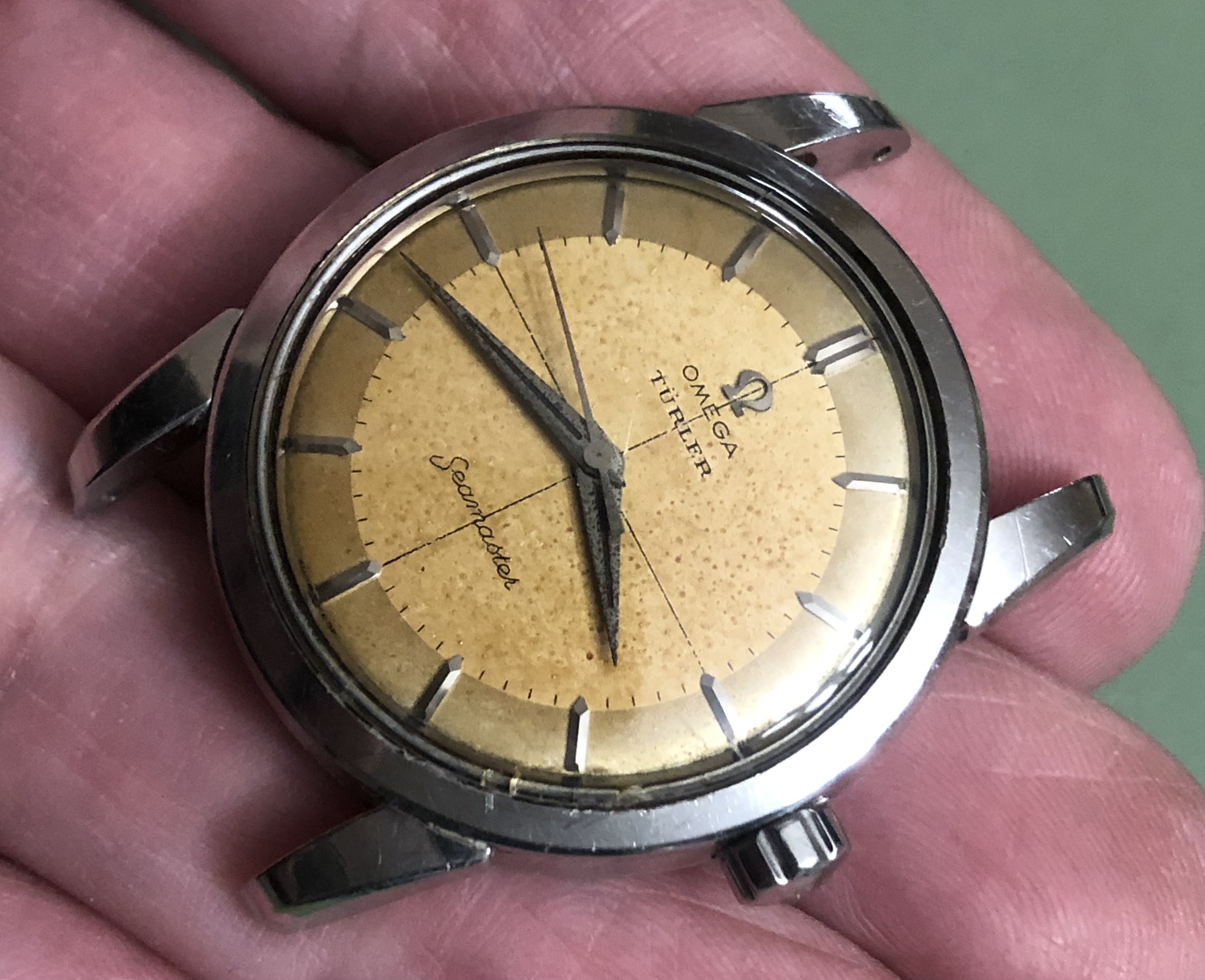 After much rumination, it is the Omega brand that I am most interested in for Swiss watches. Like any beginner, fakes are one of my main concerns. I have a question on hands for Omega watches: It seems like the vast majority of Omega watches I have seen include rather long minute and hour hands, both extending at least to the numerals on the watch face. Is this pretty much the rule with authentic, vintage Omega watches?, the hour hand will extend at least to the numerals? I ask because I have seen a few rather enticing examples that feature hour hands that are much shorter than normally seen.
