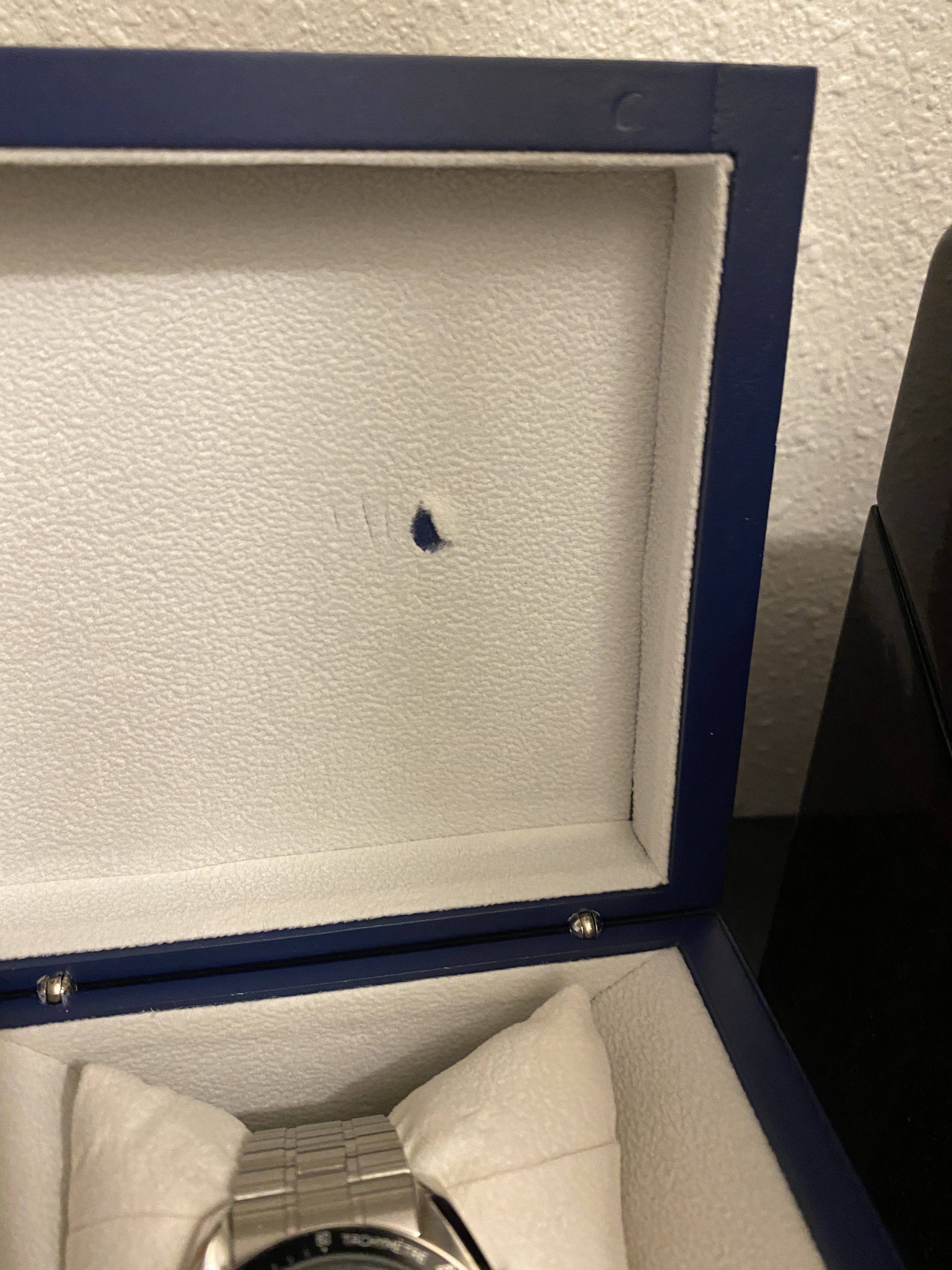 The Speedy transaction started off ok---then I was completely surprised. I went with a certified pre-owned Speedy from Tourneau. They shipped the watch but it wasn't secured well inside the blue Tourneau box (see pic).